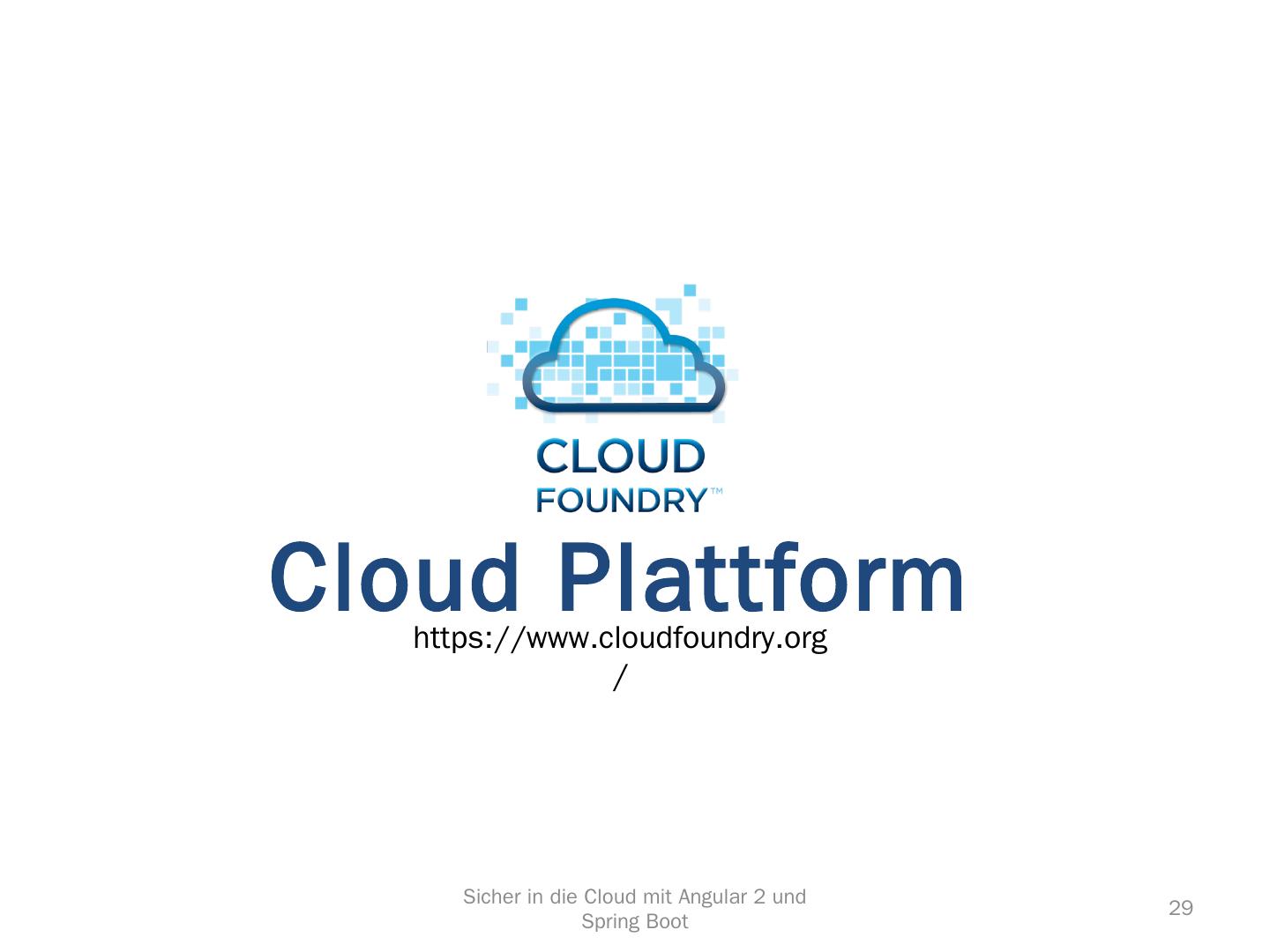 Serverseitige Tests (mit Security). Sicher in die Cloud mit Angular 2 und Spring Boot. 29. Cloud Plattform. https://www.cloudfoundry.org/.