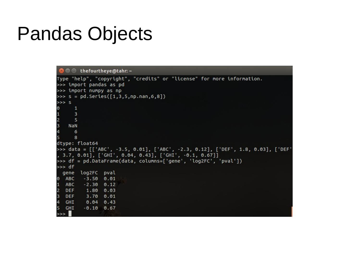 Pandas: Python Programming. for Spreadsheets. Pamela Wu. Sept. 17th 2015. Getting Started. Excel is easy to use, but scientists need more powerful tools ...