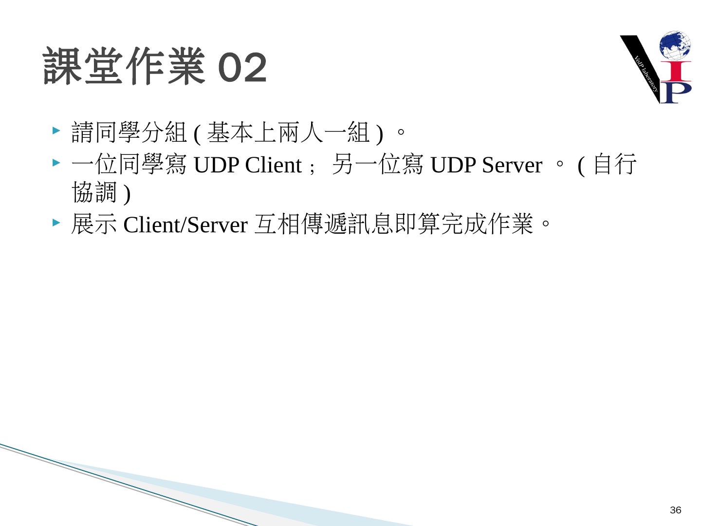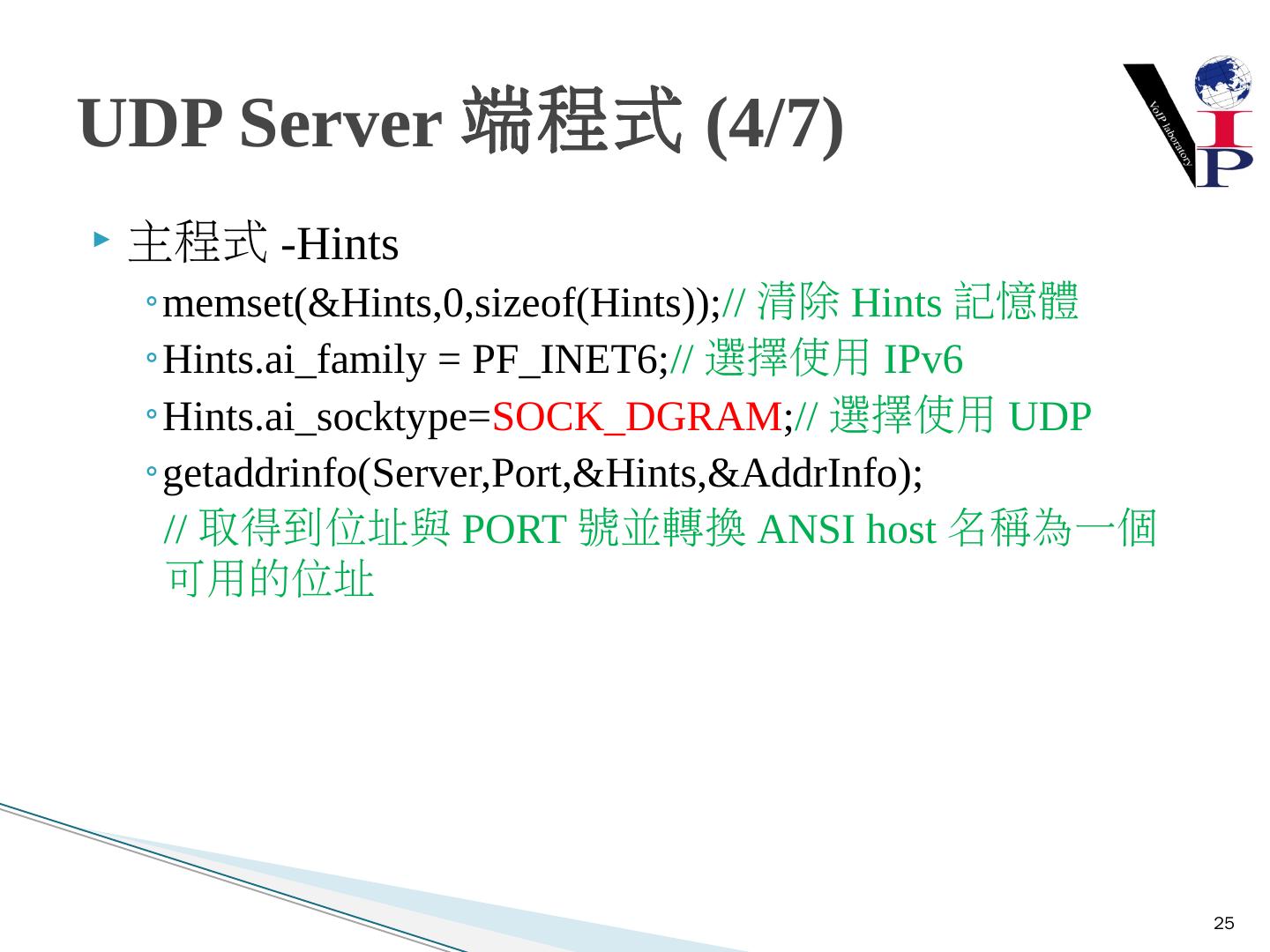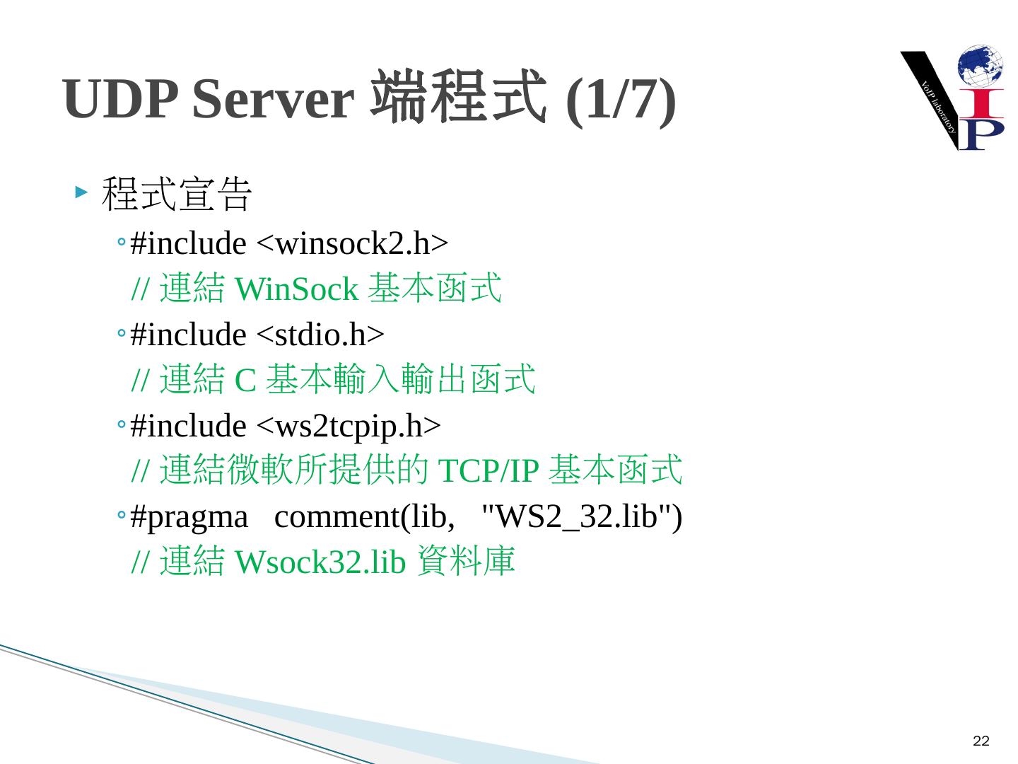 教同學們使用Microsoft Visual Studio 2008以及C語言寫出IPv6 TCP的Server端與Client 端 ... 建立Server端Socket使用IPv6與TCP .... UDP Client-Server建構流程圖.