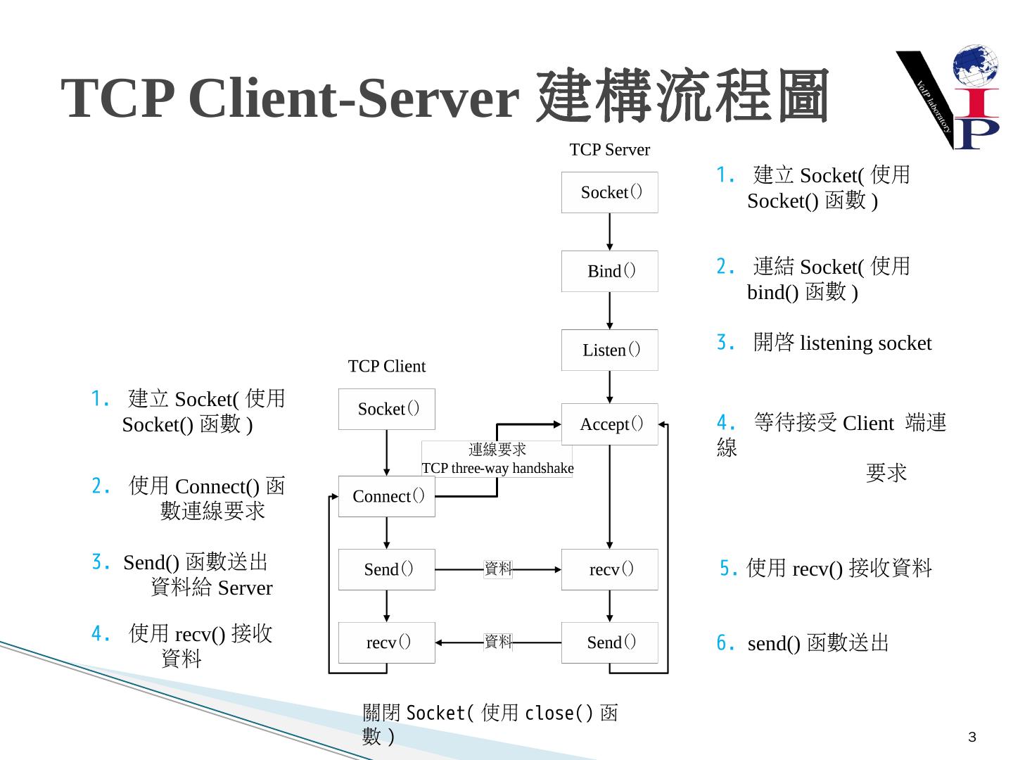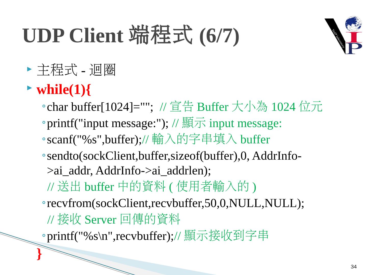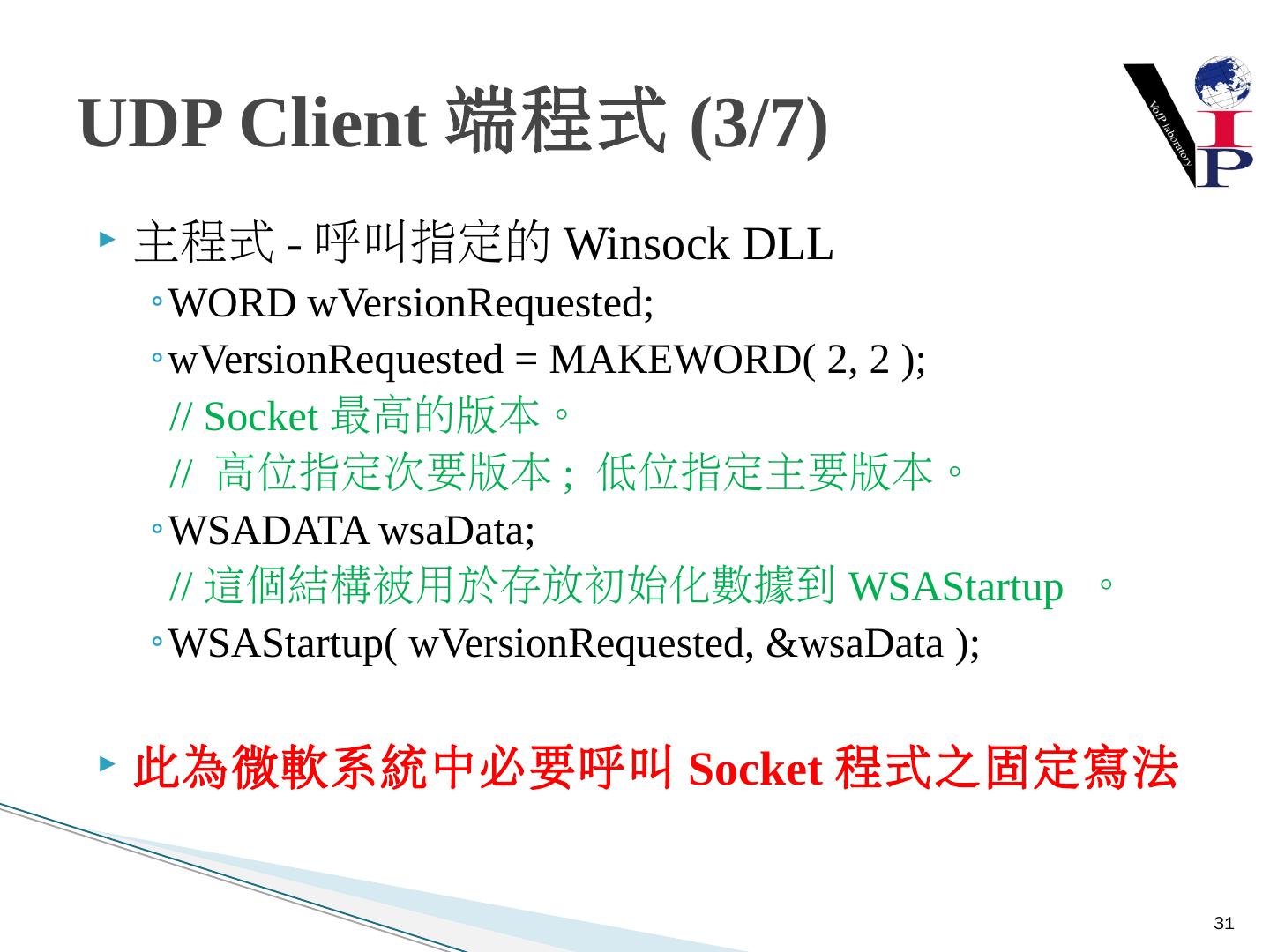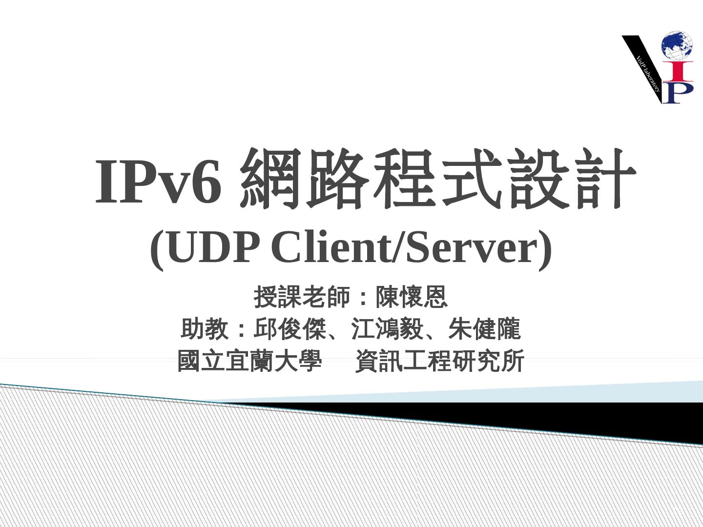 教同學們使用Microsoft Visual Studio 2008以及C語言寫出IPv6 TCP的Server端與Client 端 ... 建立Server端Socket使用IPv6與TCP .... UDP Client-Server建構流程圖.