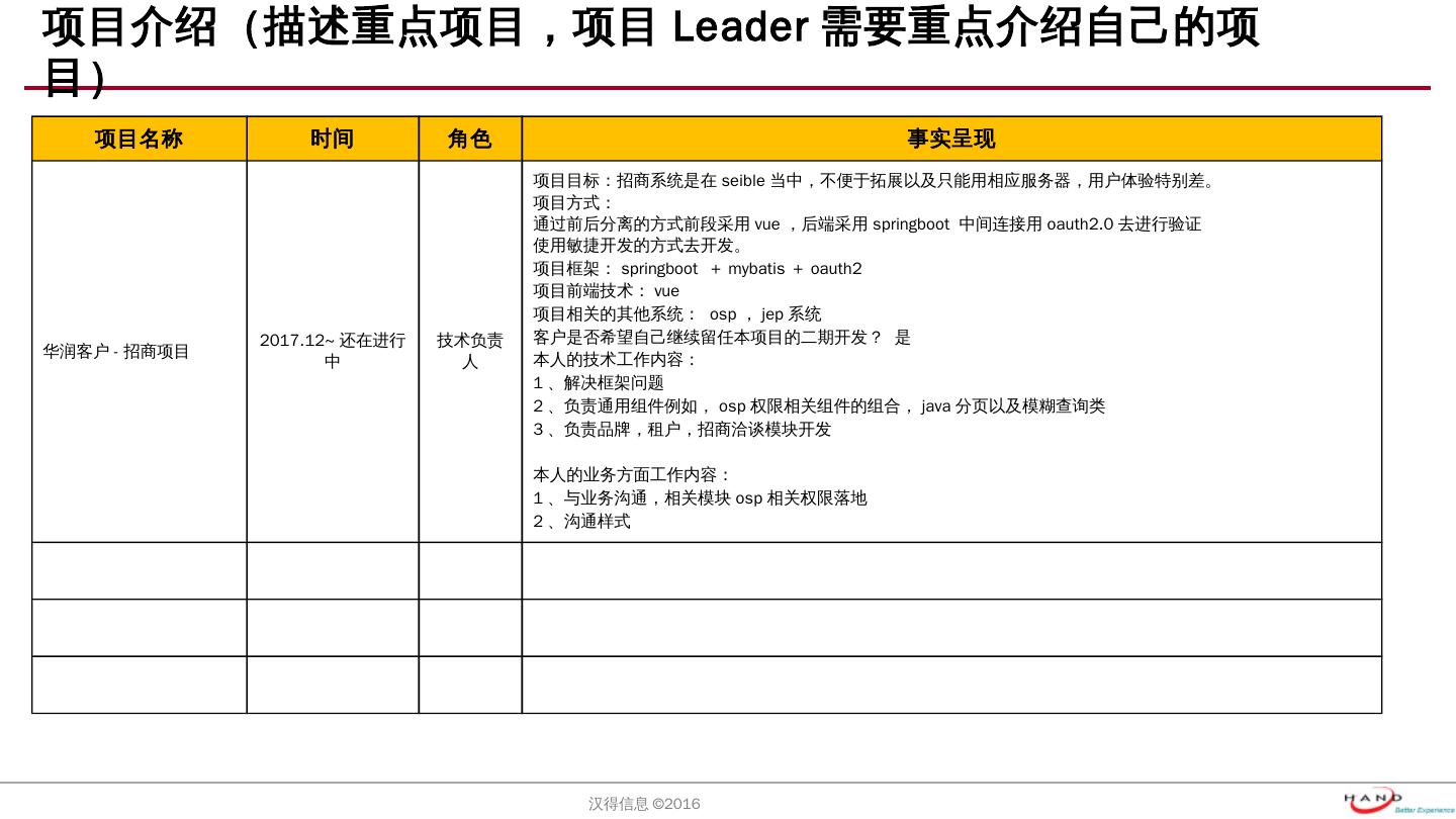 使用敏捷开发的方式去开发。 项目框架:springboot +mybatis+oauth2. 项目前端技术:vue. 项目相关的其他系统: osp,jep系统. 客户是否希望自己继续留任本项目的 ...