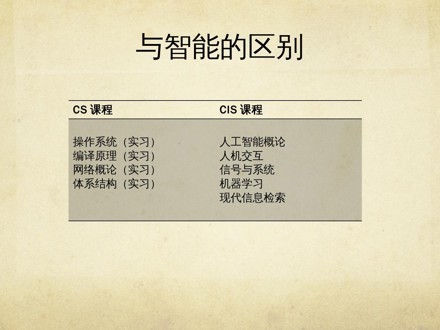 CS课程, CIS课程. 操作系统(实习). 编译原理(实习). 网络概论(实习). 体系结构(实习). 人工智能概论. 人机交互. 信号与系统. 机器学习. 现代信息检索 ...