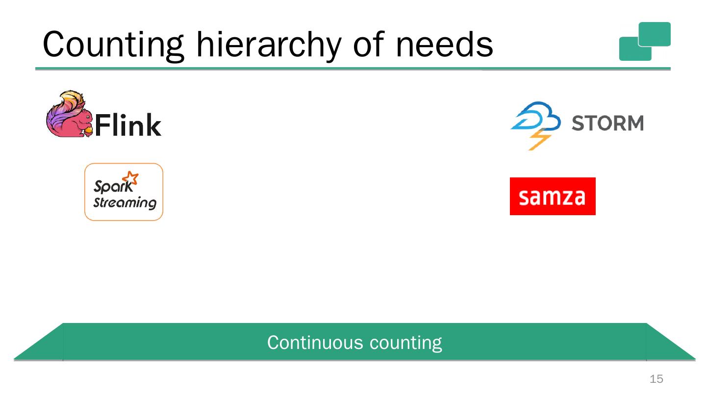 16 .Counting hierarchy of needs 16 Continuous counting ... with low latency,