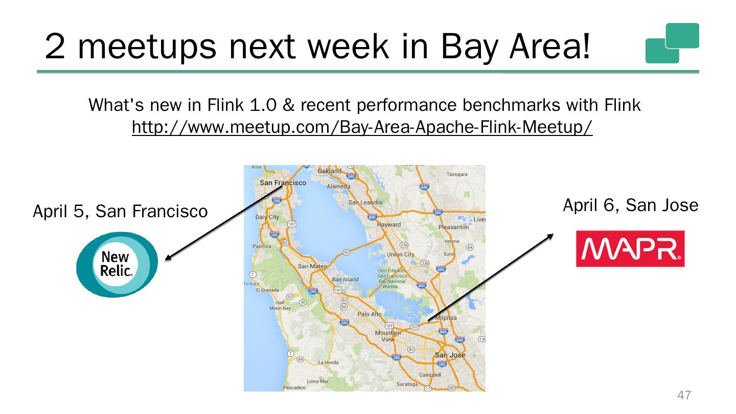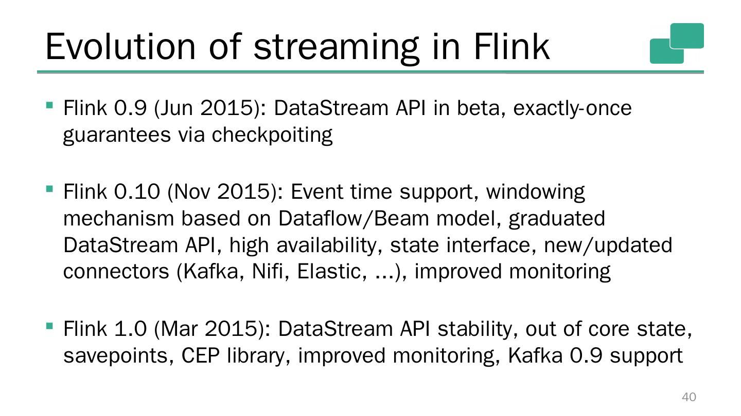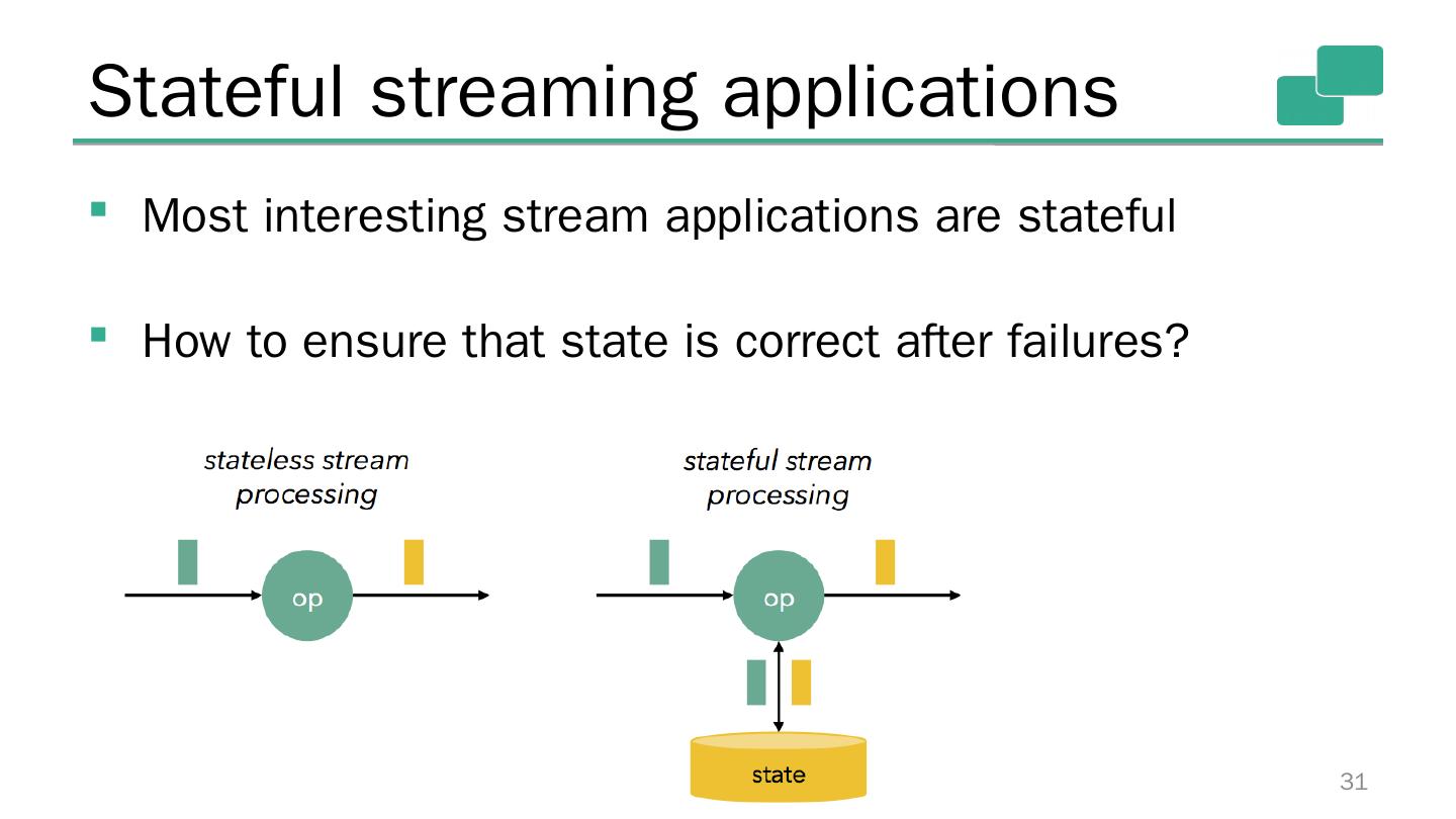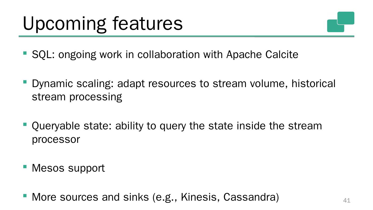 29 .Results (higher is better) 29 Also: Flink jobs are correct under failures (exactly once), Storm jobs are not 500k events/sec 3mi events/sec 15mi events/sec
