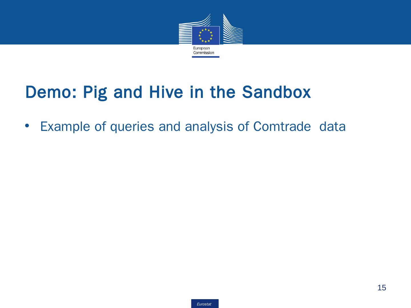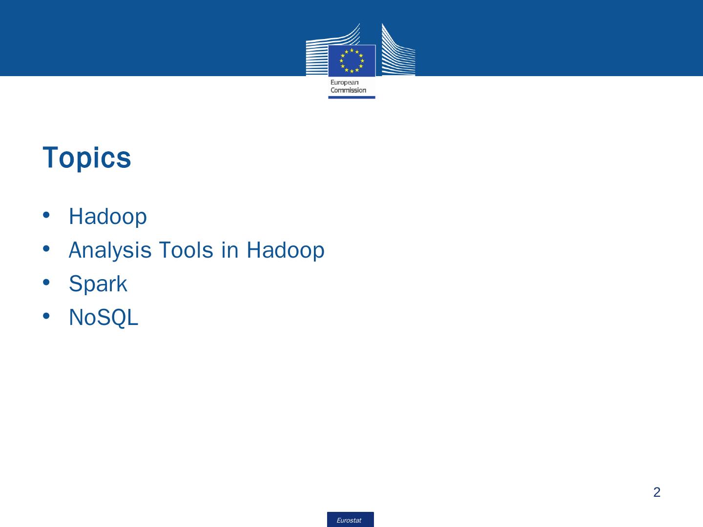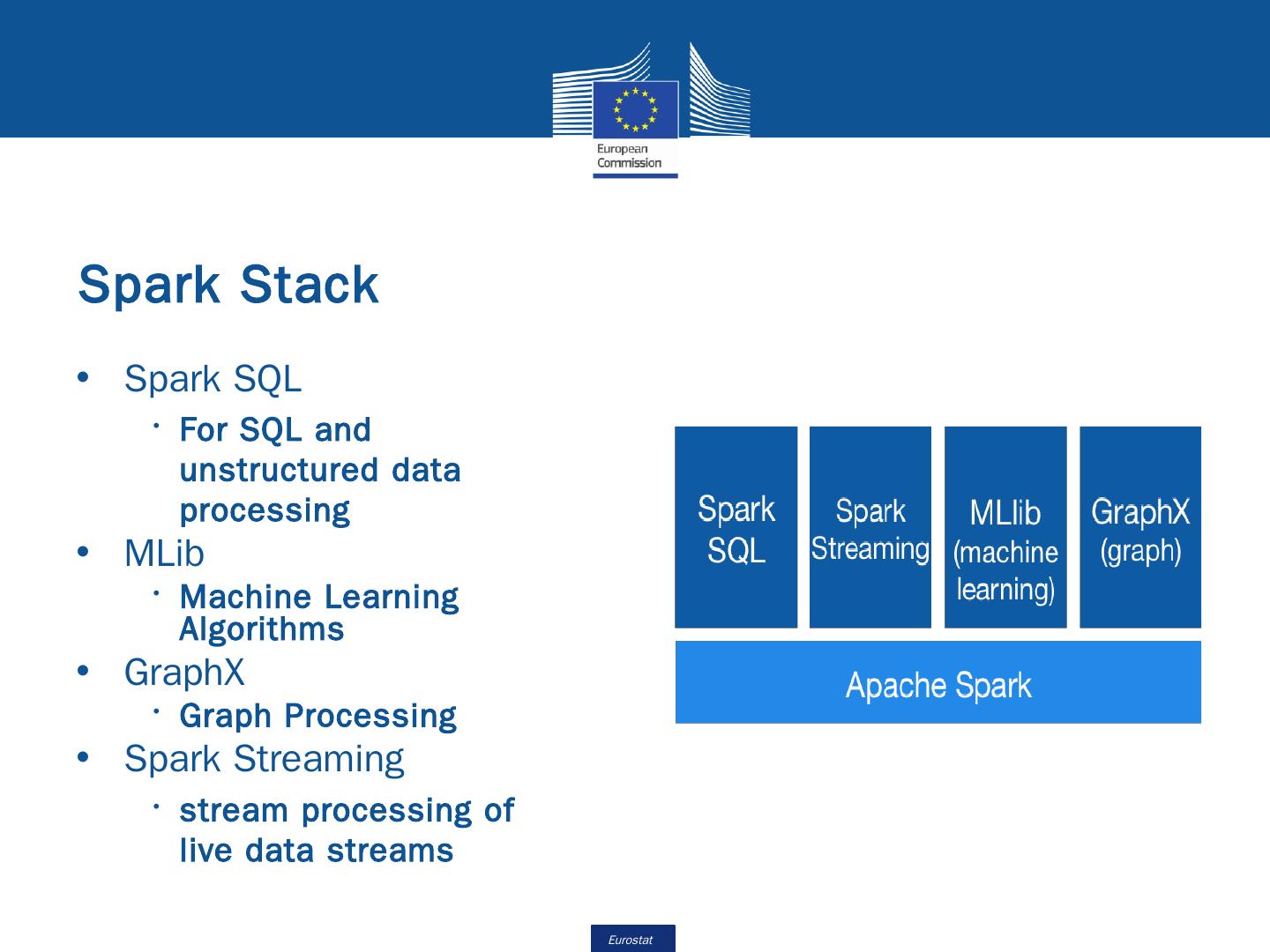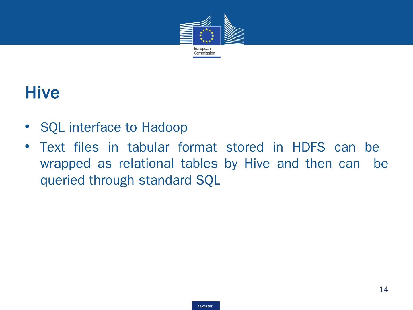 Hadoop. Open source platform for distributed processing of large data; Functions: ... Hive. Eurostat. Apache Pig. Tool for querying data on Hadoop clusters ...