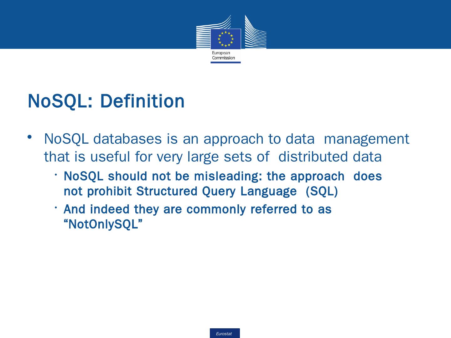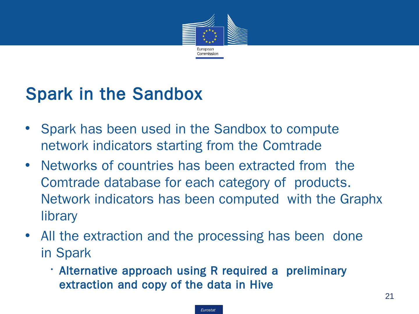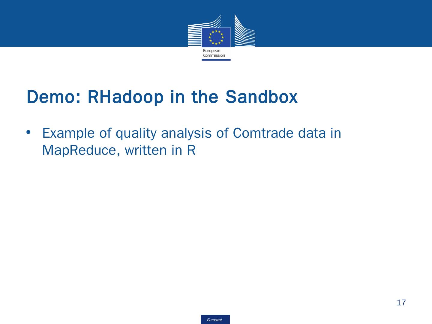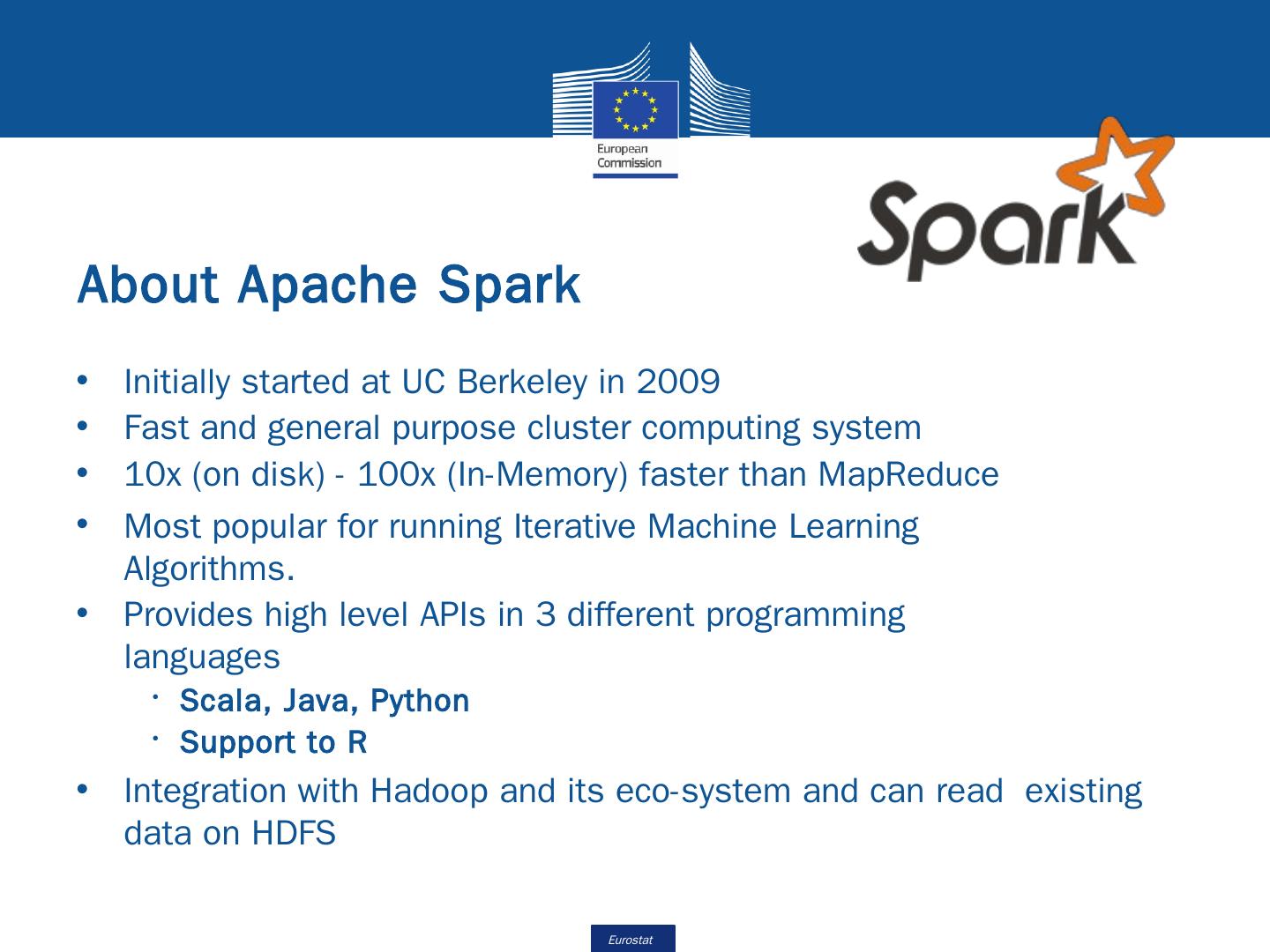 Hadoop. Open source platform for distributed processing of large data; Functions: ... Hive. Eurostat. Apache Pig. Tool for querying data on Hadoop clusters ...