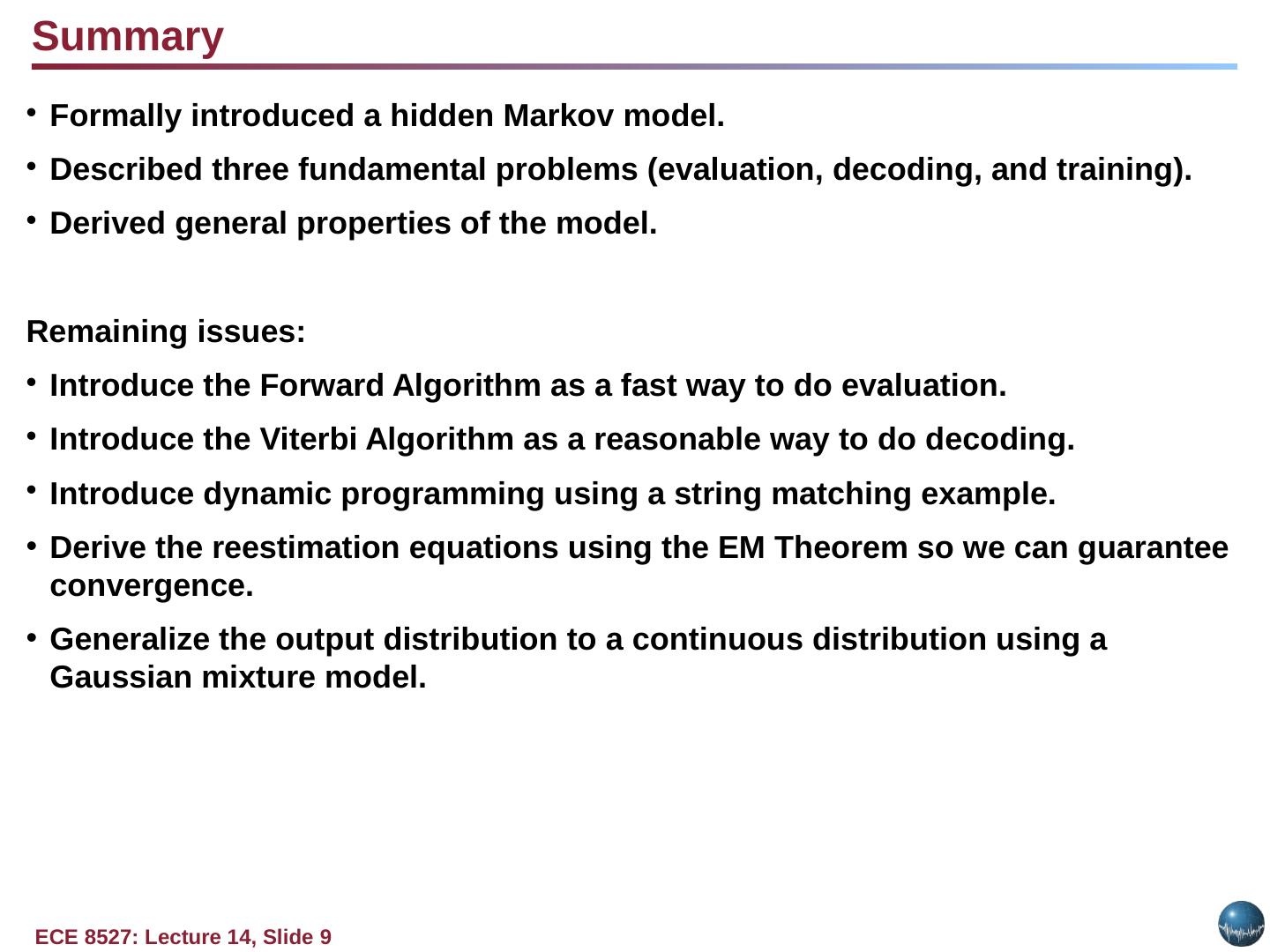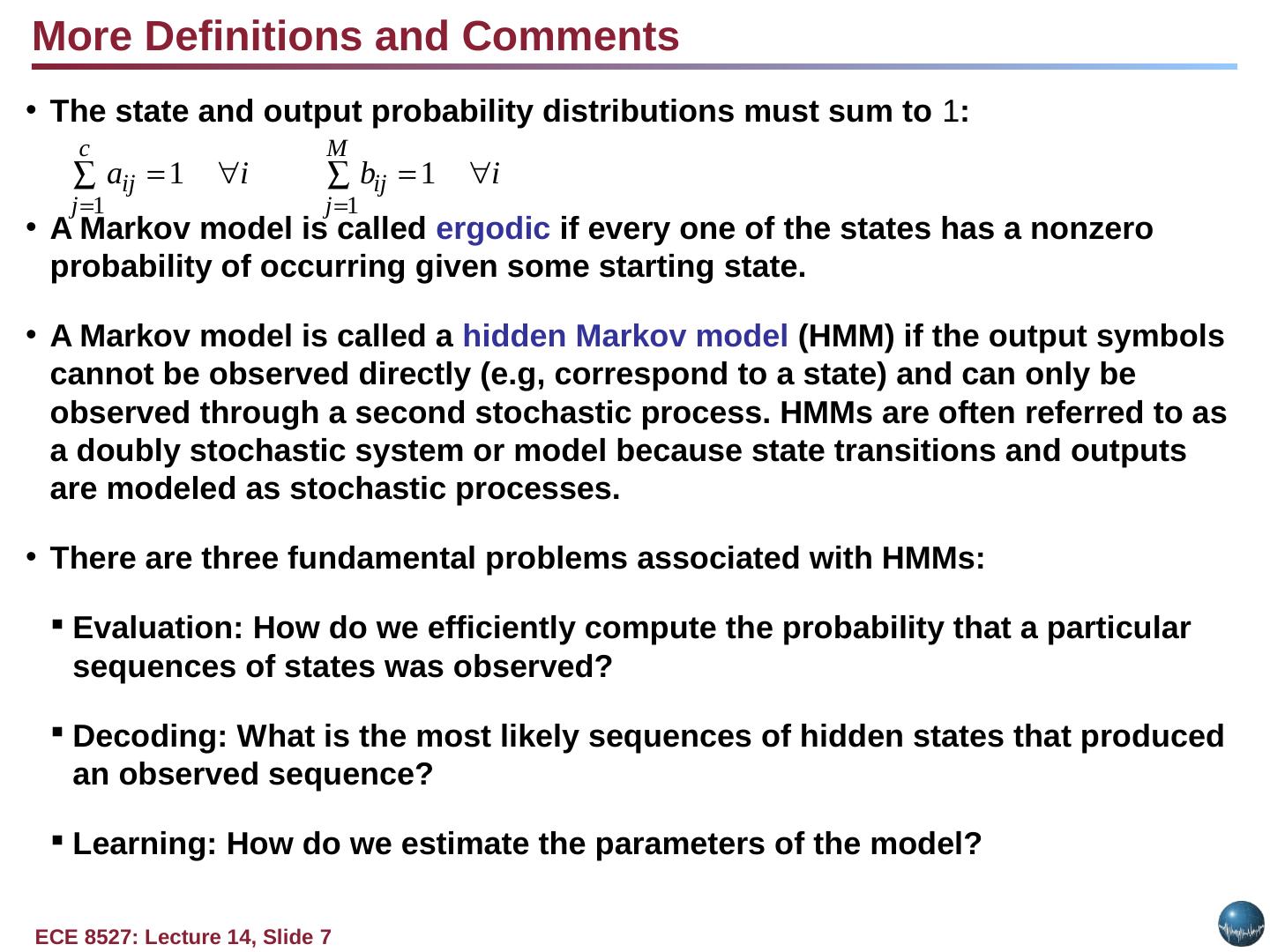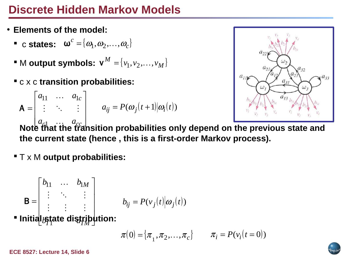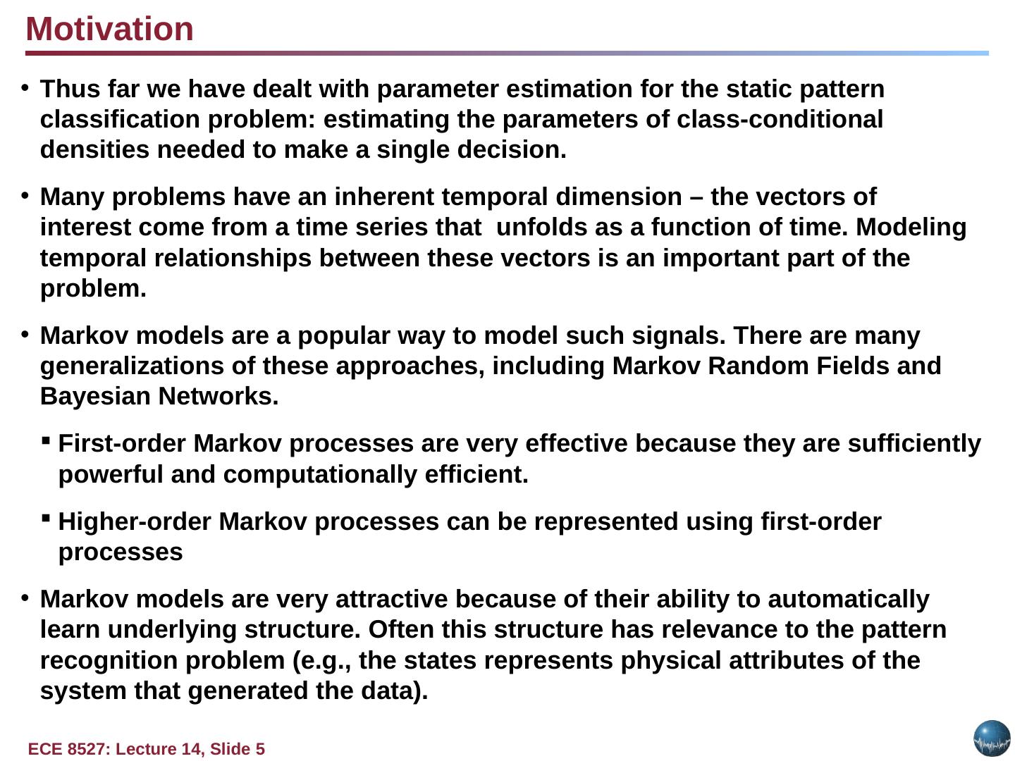 LECTURE 14: HIDDEN MARKOV MODELS – BASIC ELEMENTS. ECE 8527: Lecture 14, Slide 1. Introduction To Hidden Markov Models. ECE 8527: Lecture 14, ...