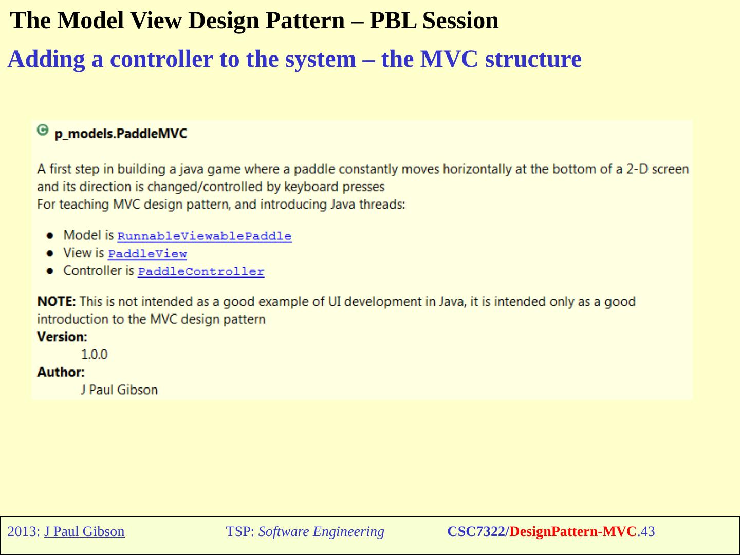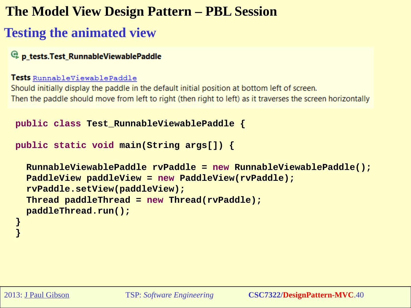 The Model View Design Pattern – PBL Session. Unit Testing the Paddle Model. TO DO: Check that you understand the unit test code. TSP: Software Engineering.