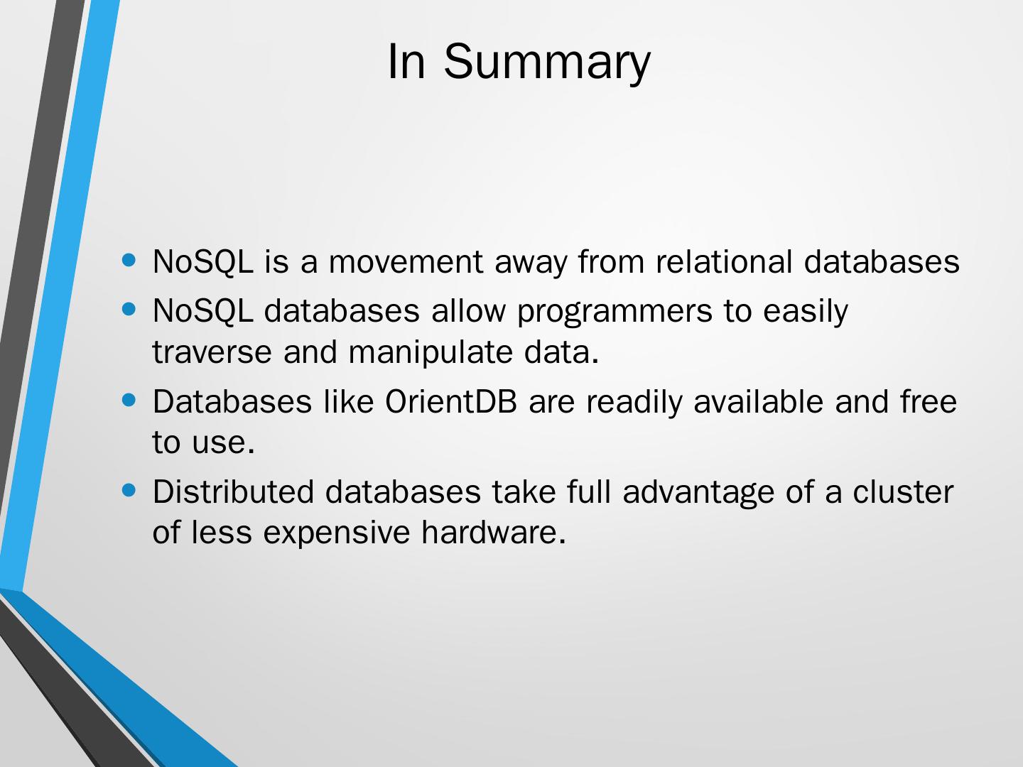 A Study in NoSQL & Distributed Database Systems. John Hawkins. Topics to Cover. What is NoSQL (and why use it). Types of NoSQL. OrientDB. Distributed ...