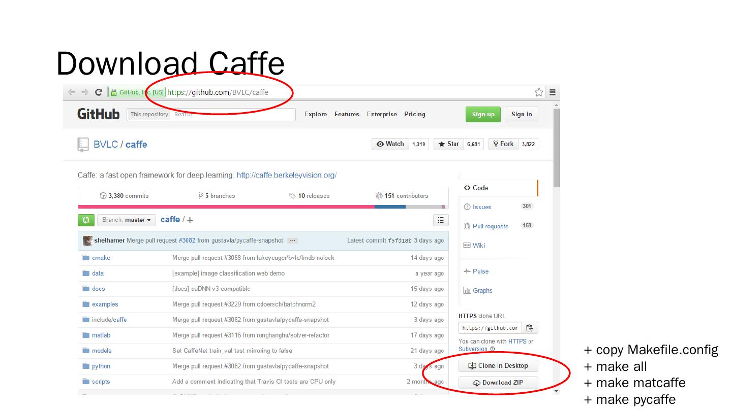 setenv PYTHONPATH /usr/wisdom/python. Download Caffe. + copy Makefile.config. + make all. + make matcaffe. + make pycaffe. Height. Width. Caffe - Storing ...