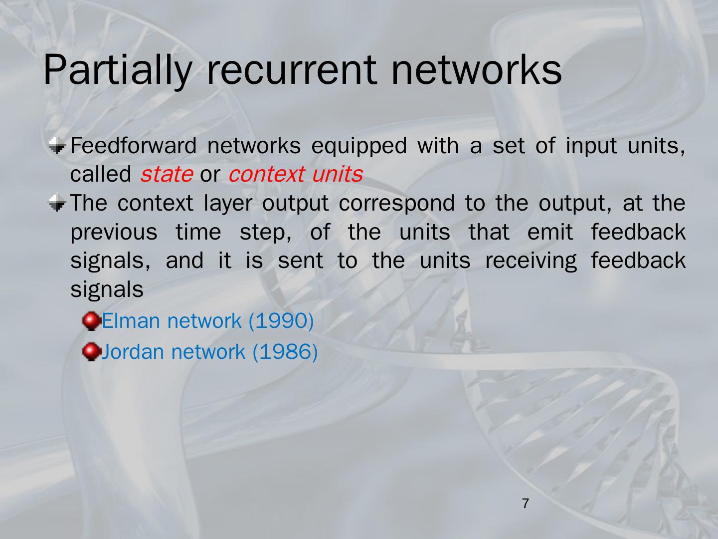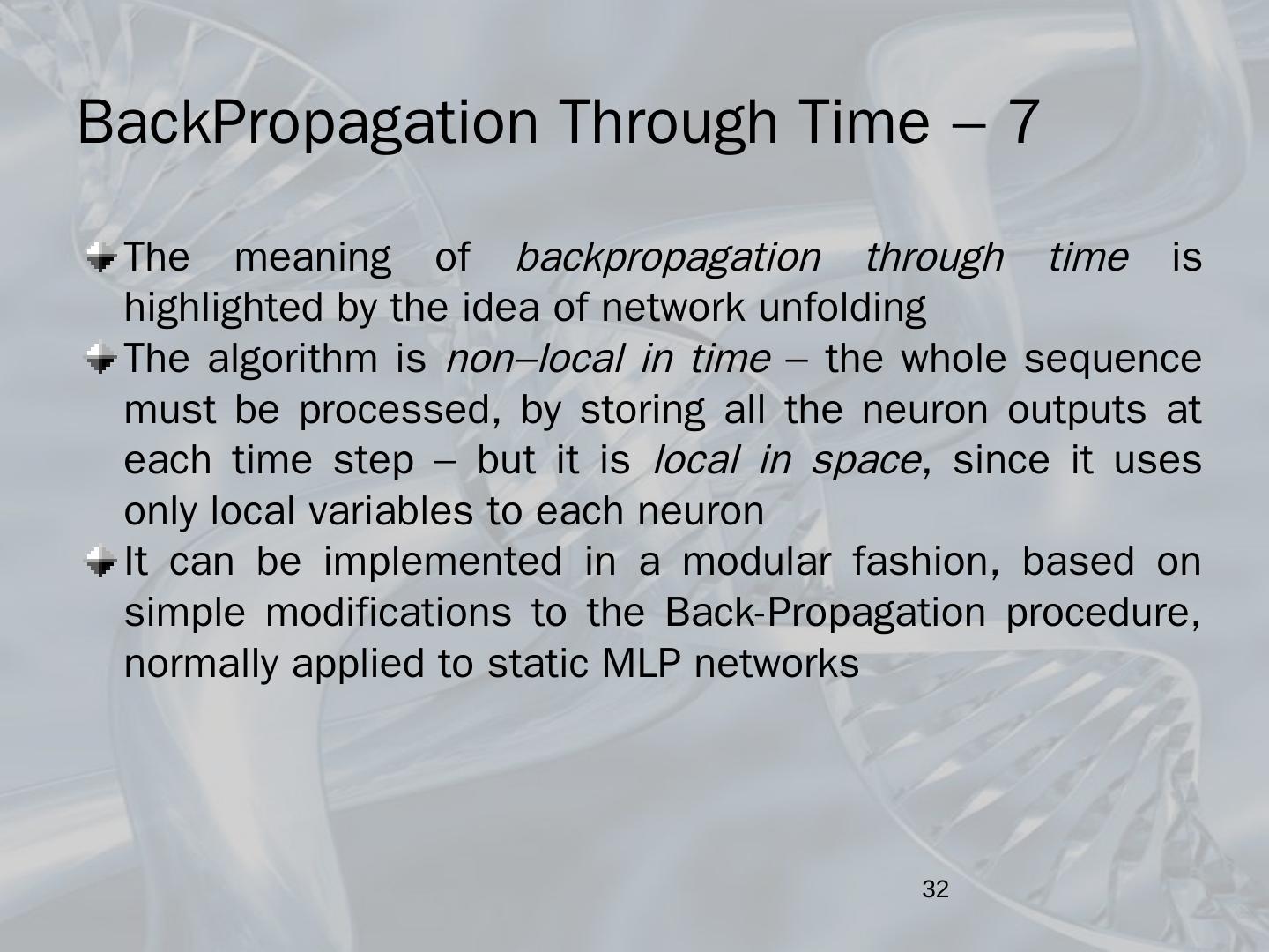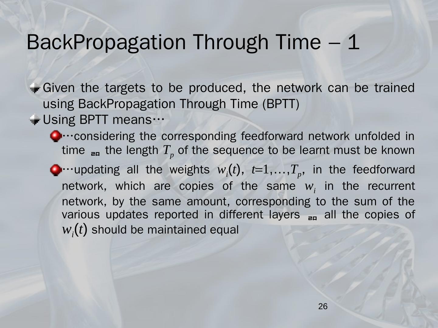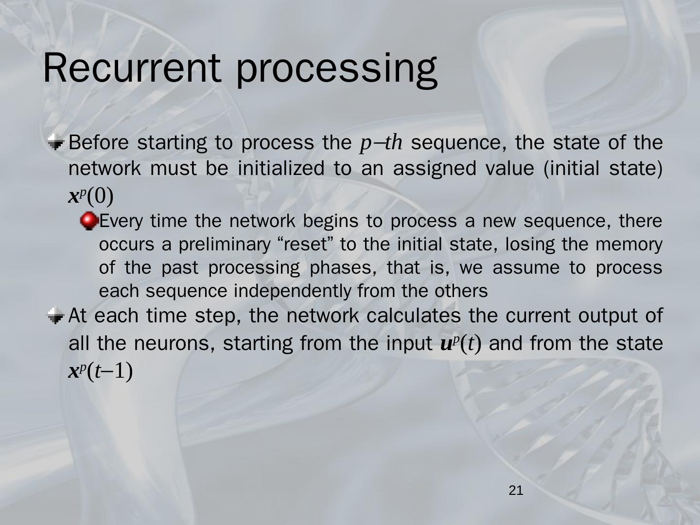Recurrent neural networks; BackPropagation Through Time; Dynamics of a neuron ... Feedforward networks equipped with a set of input units, called state or ...