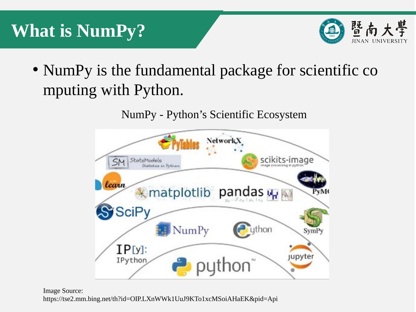NumPy - Python's Scientific Ecosystem. Image Source: https://tse2.mm.bing.net/th?id=OIP.LXnWWk1UuJ9KTo1xcMSoiAHaEK&pid=Api. 3. NumPy. Website: ...