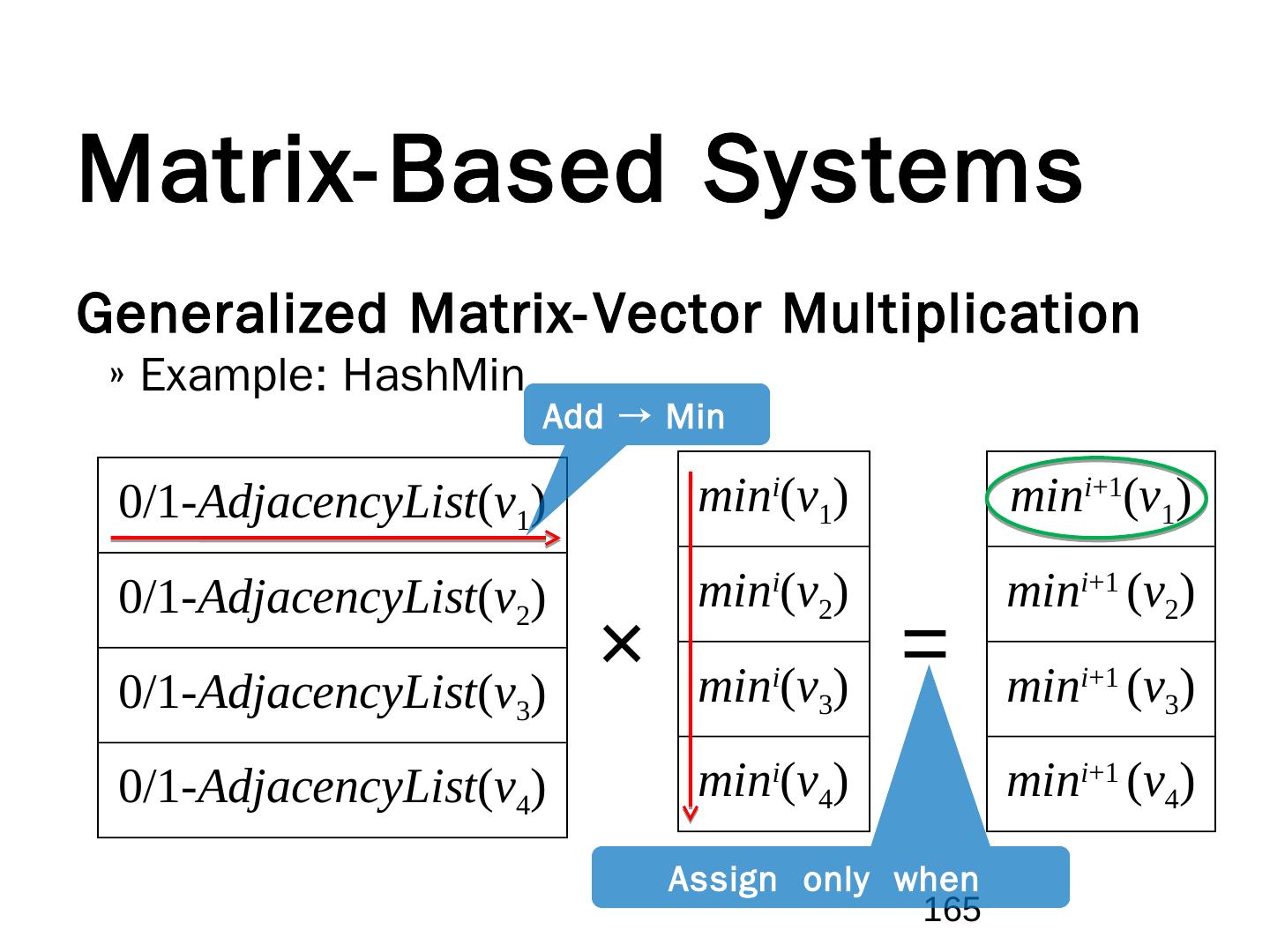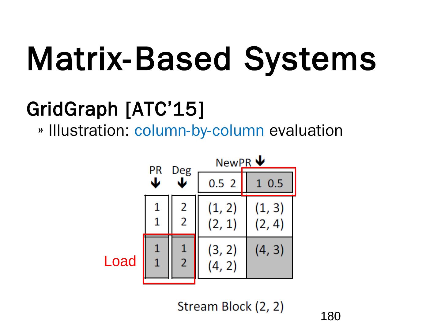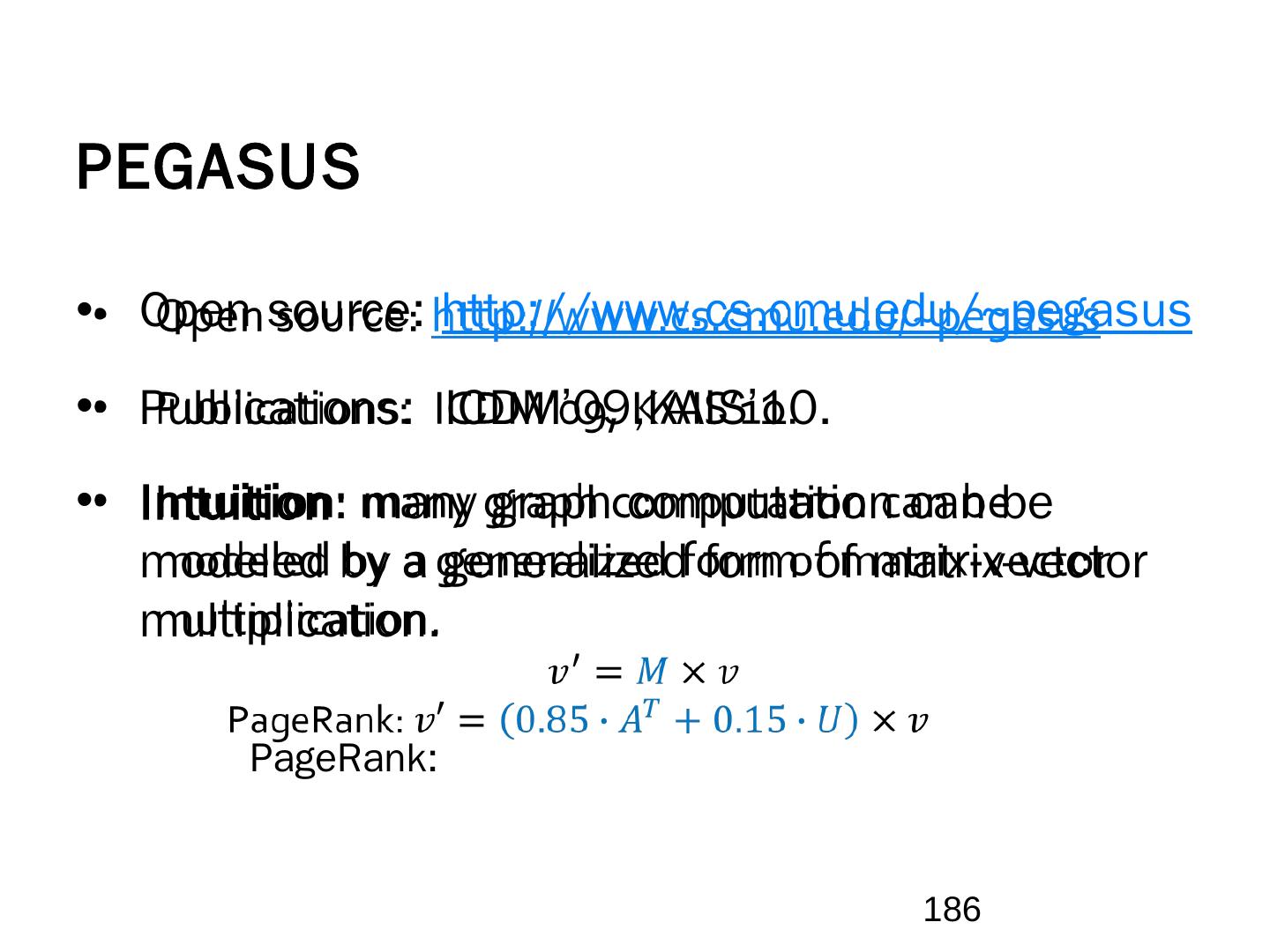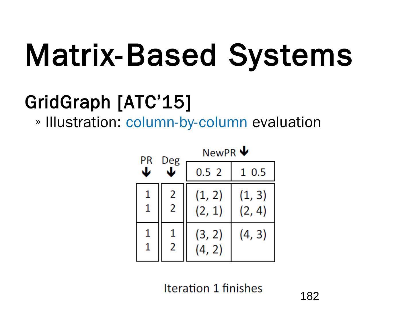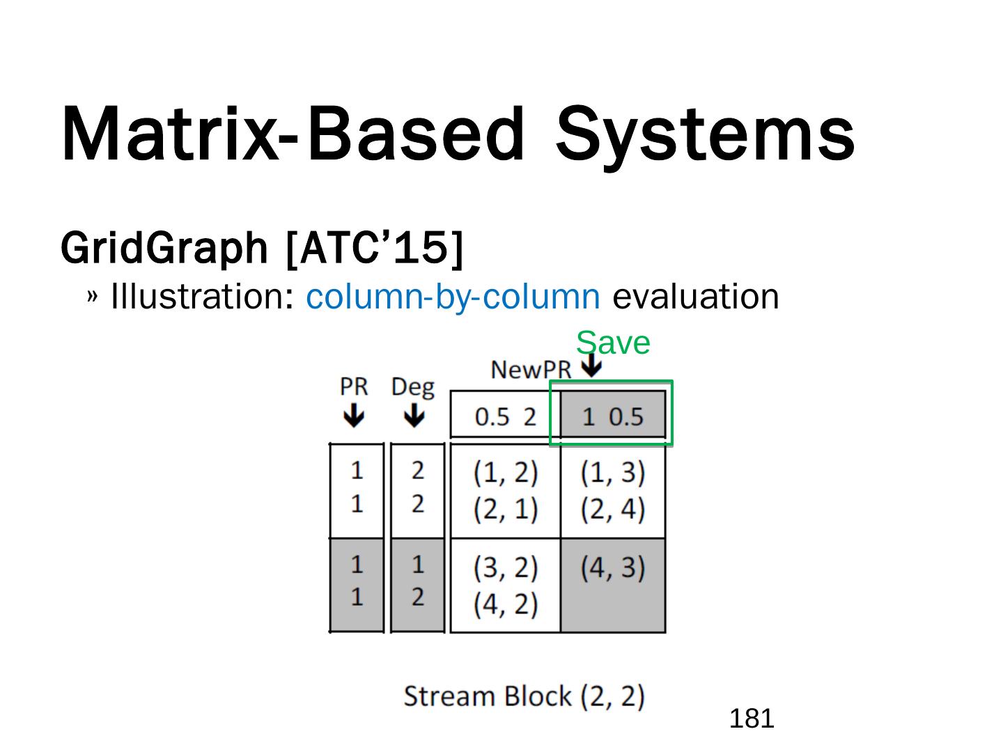 (single/multi-threaded). Pros and Cons of Matrix-Based Graph Systems. Pros: Intuitive for analytic users familiar with linear algebra. E.g. SystemML provides a ...