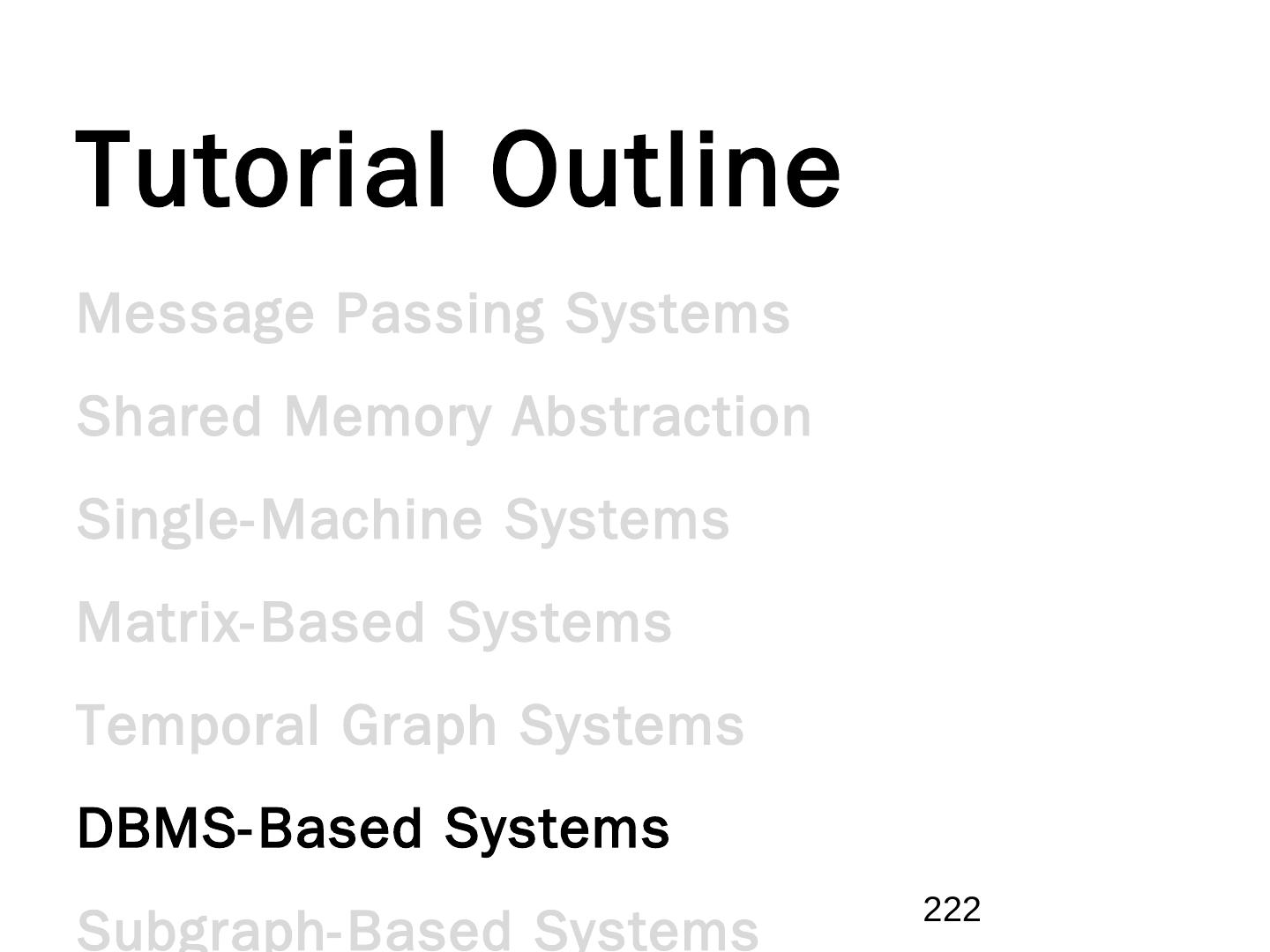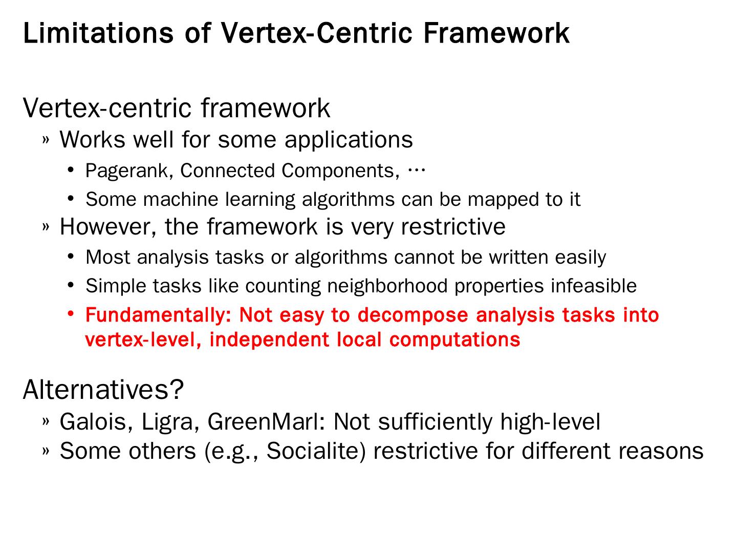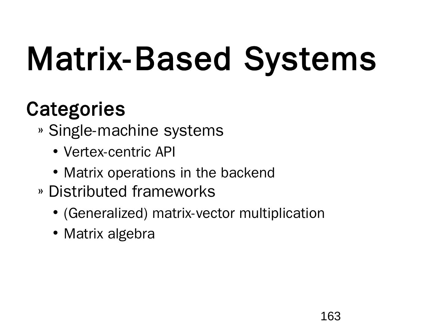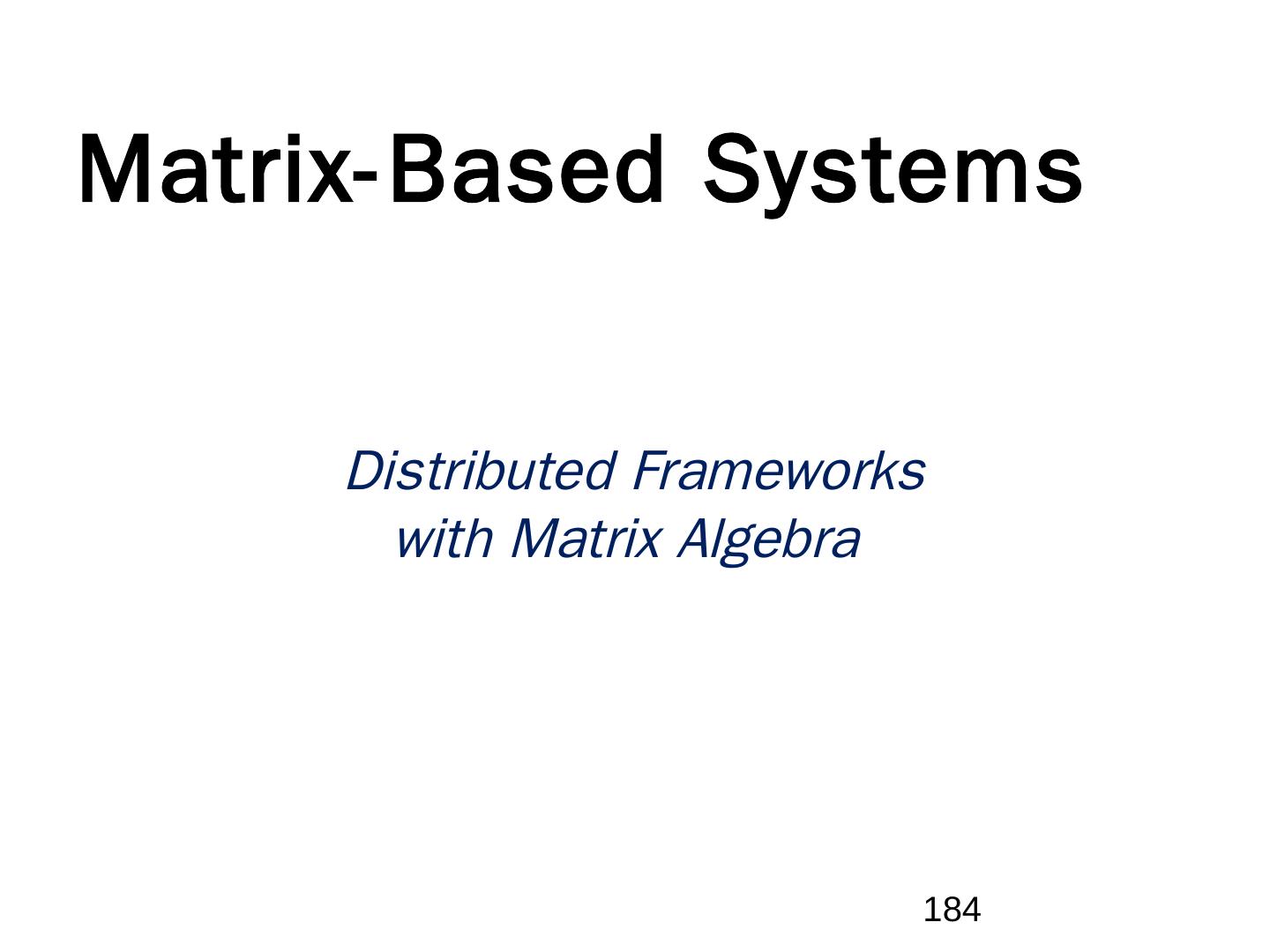 (single/multi-threaded). Pros and Cons of Matrix-Based Graph Systems. Pros: Intuitive for analytic users familiar with linear algebra. E.g. SystemML provides a ...