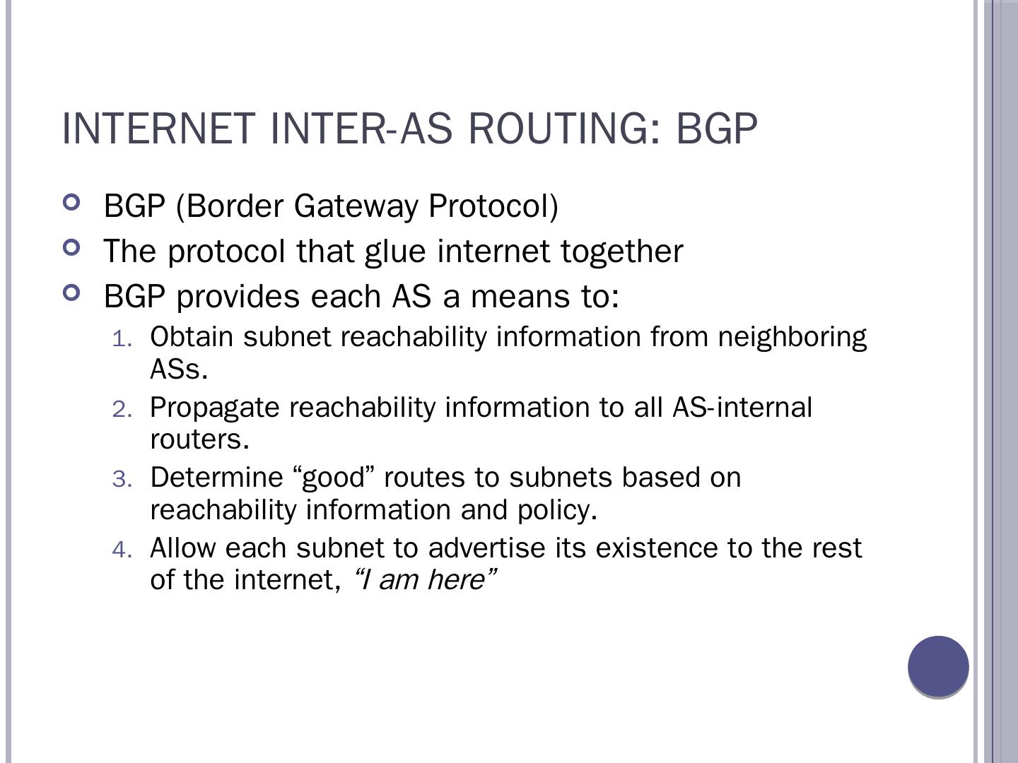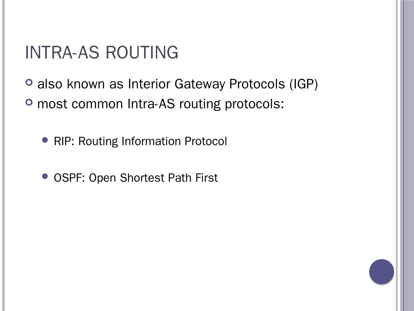 Collections of routers that has the same protocol, administative and technical ... as Interior Gateway Protocols (IGP); most common Intra-AS routing protocols:.