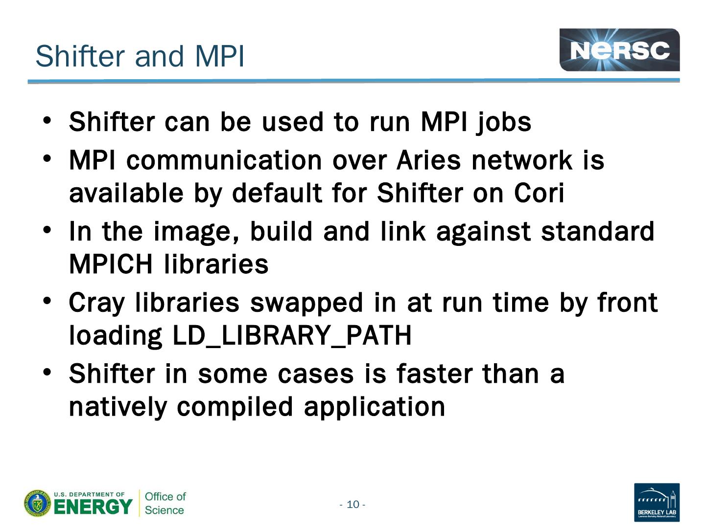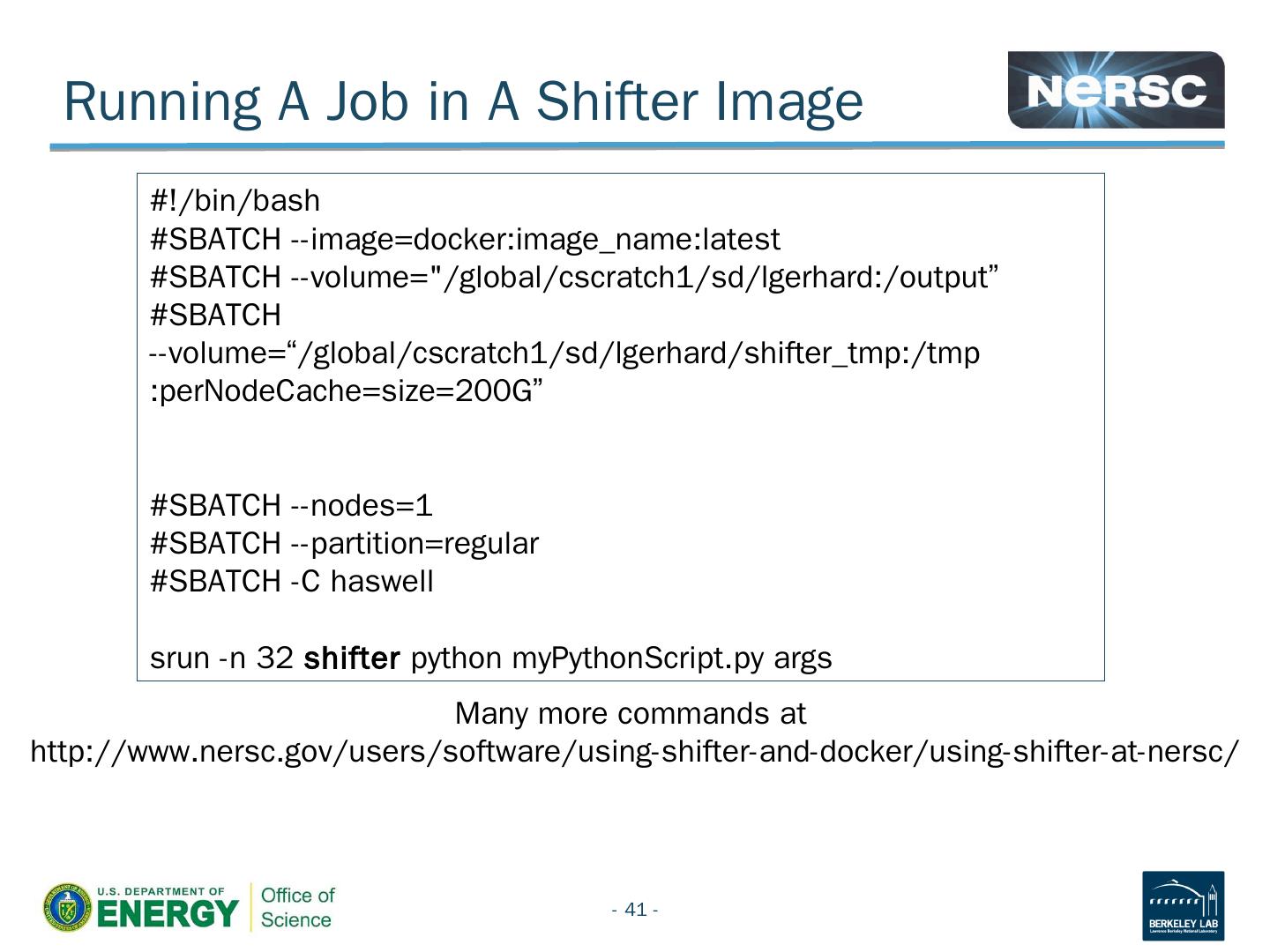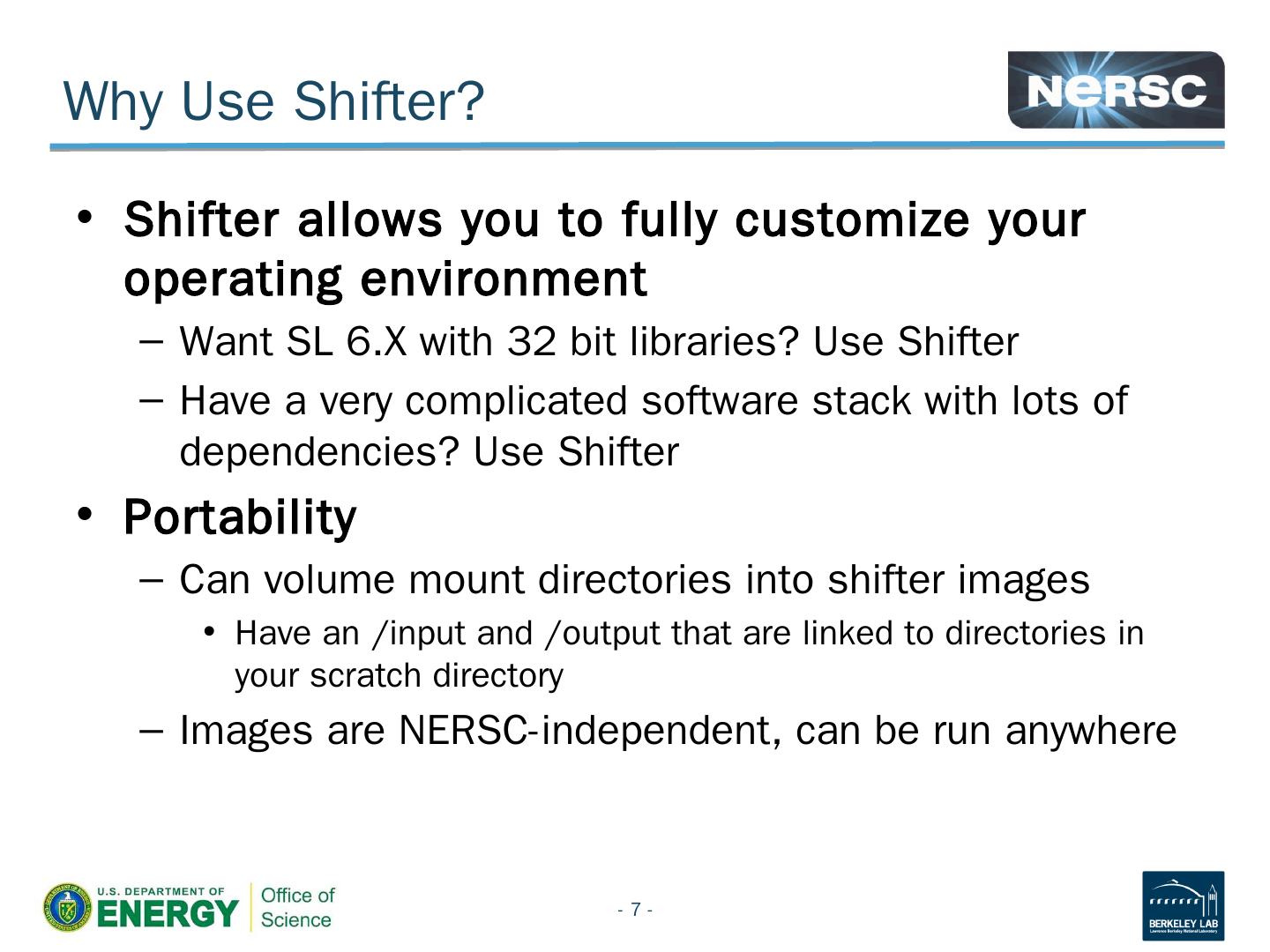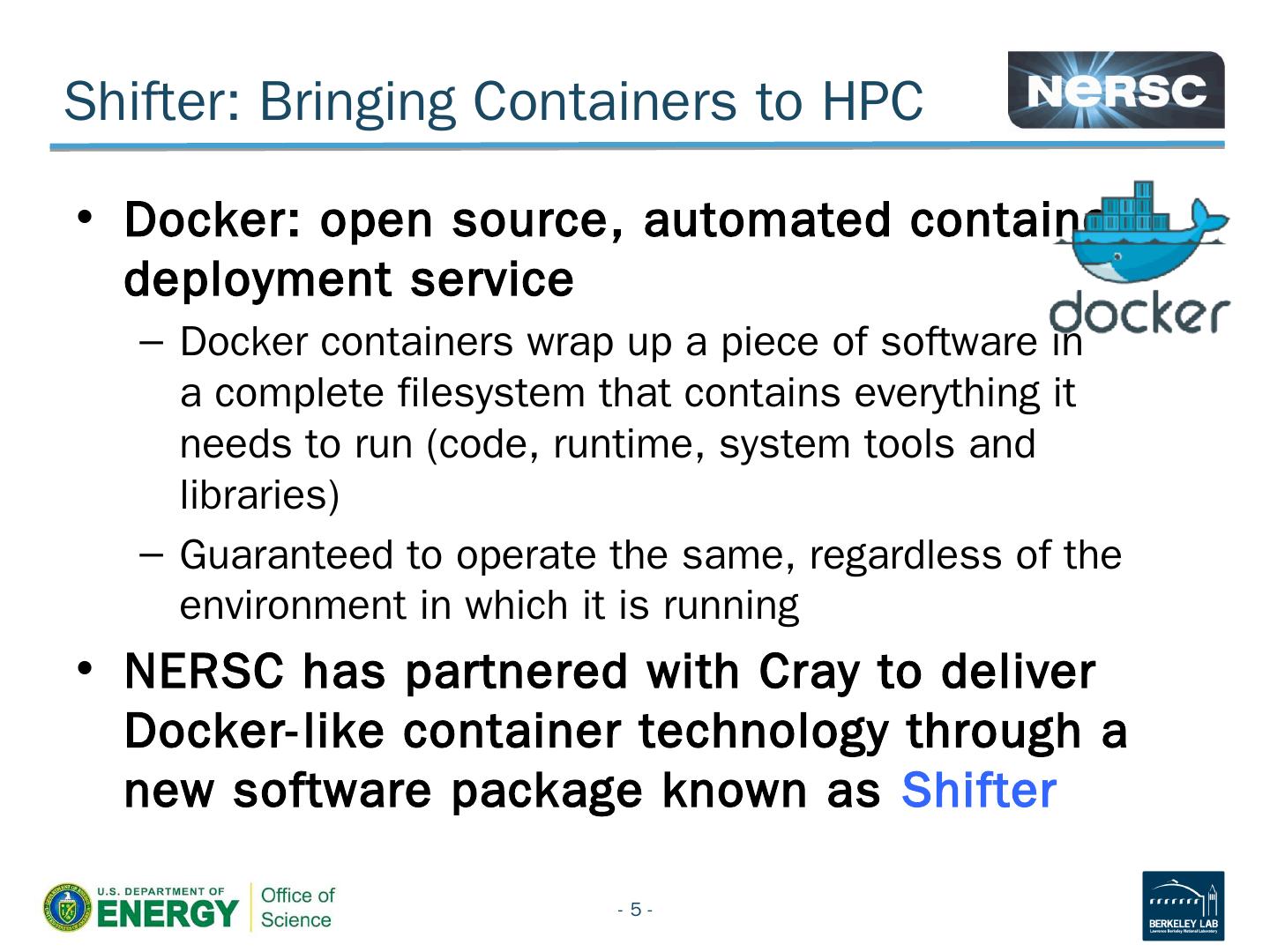 Brief Intro to Docker and Shifter; Motivations for using Docker and Shifter; Examples of how Shifter is already being used; Quick walk through of:.