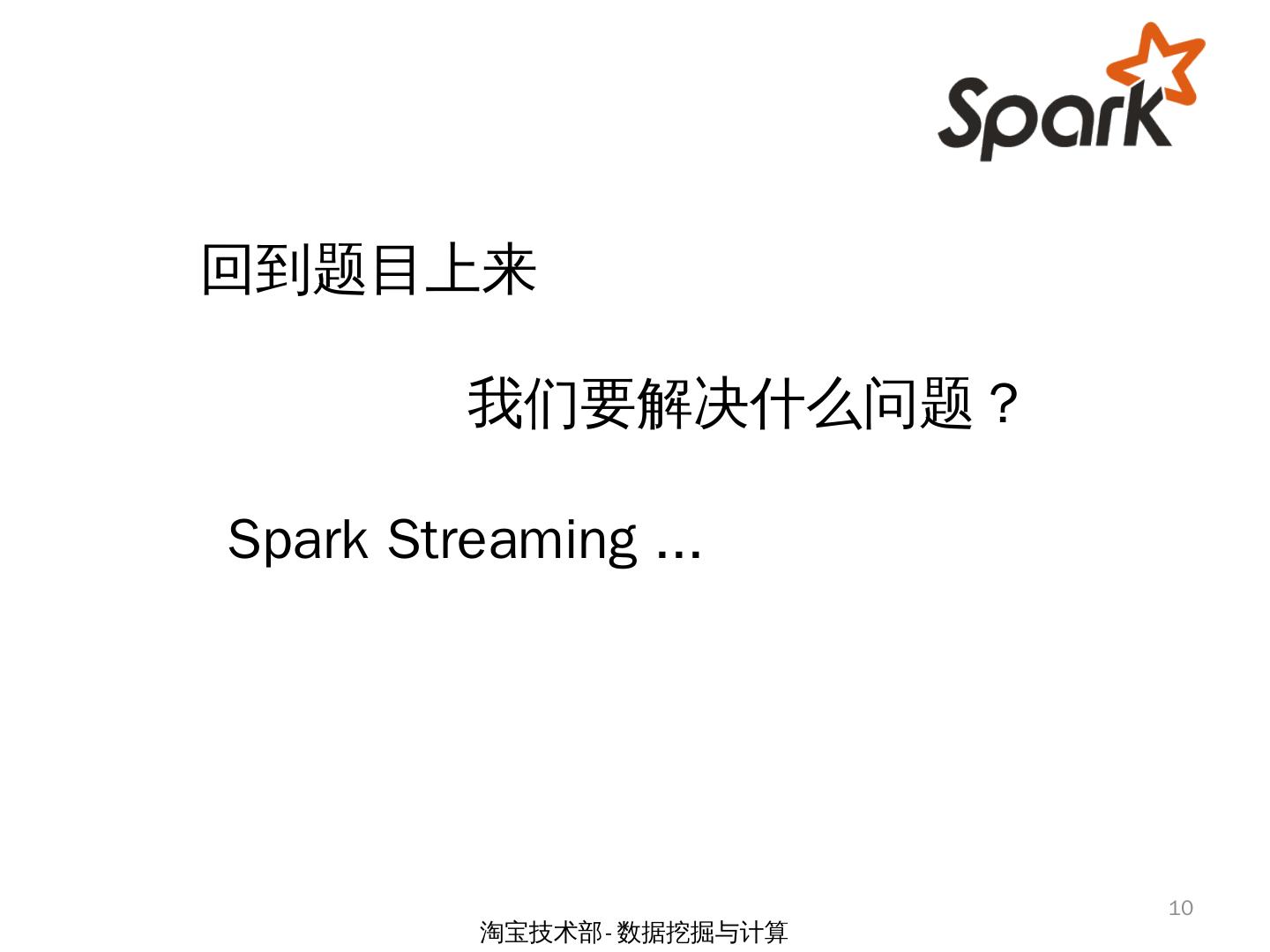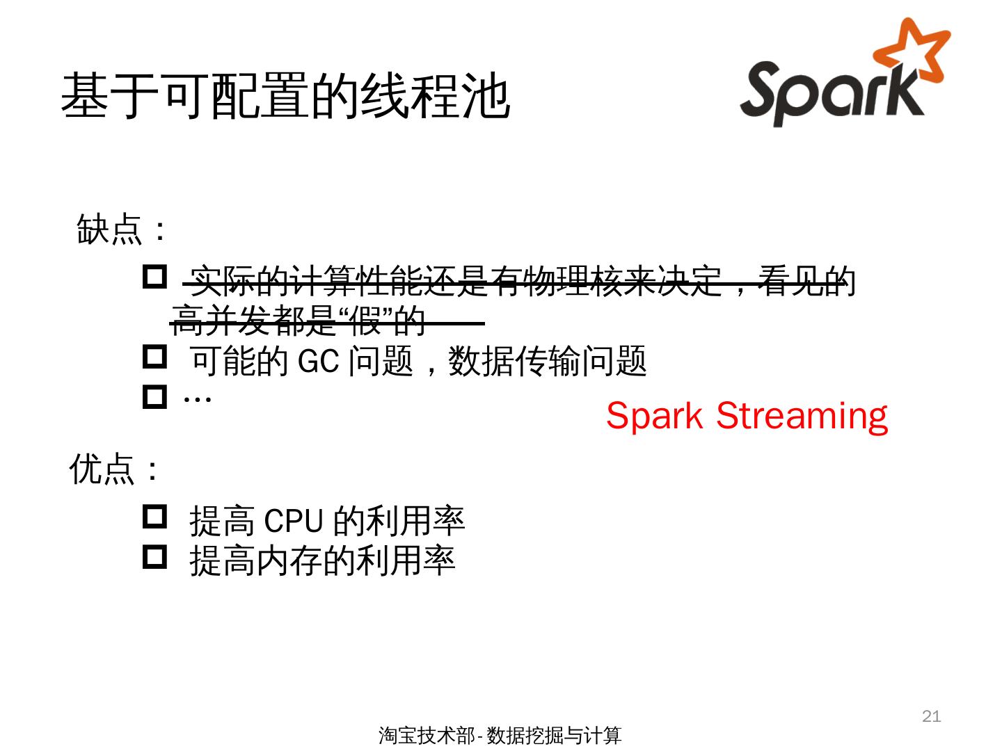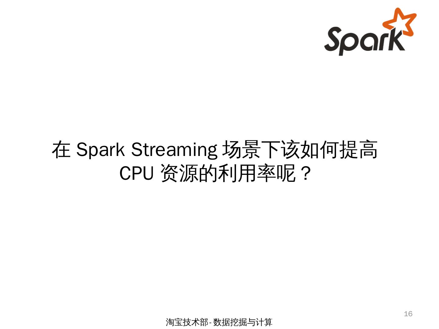 Spark Streaming 场景下两类倾斜问题的研究. by 余根茂. 淘宝技术部-数据挖掘与计算. 1. 大纲. 问题背景; CPU资源倾斜问题; 源数据倾斜问题; 小结. 2. 淘宝技术部- ...