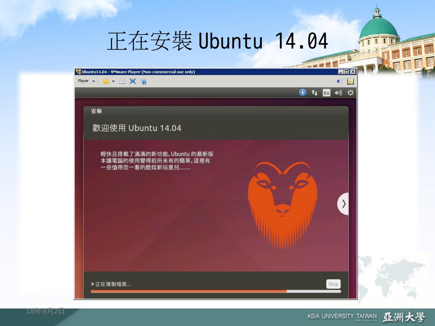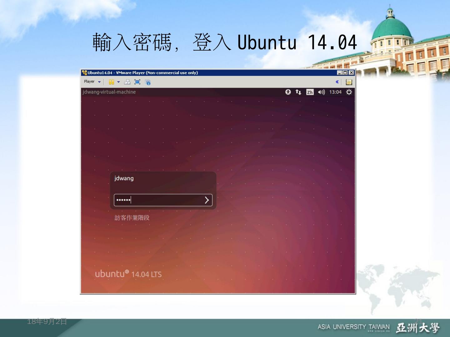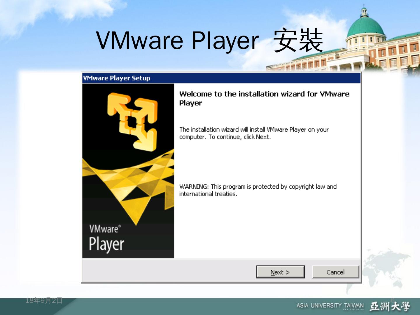 1. 1/1/97. 大綱. 軟體準備. VMware Player; Ubuntu 14.04. VMware Player 安裝; Ubuntu 14.04 安裝. 1/1/97. 2. 軟體準備. VMware-player-5.0.4-1945795.