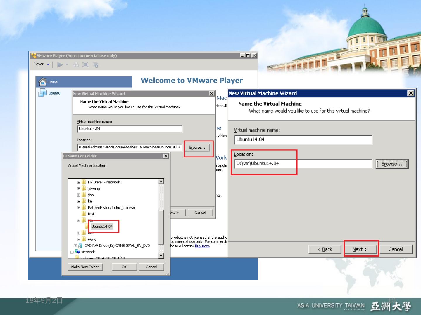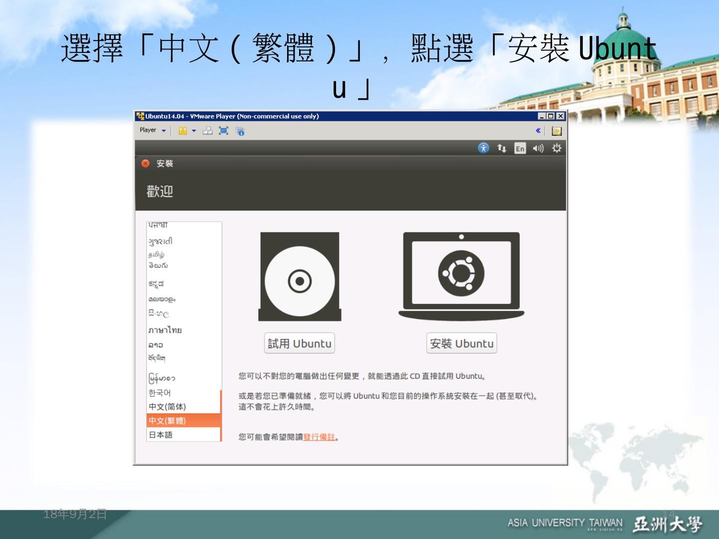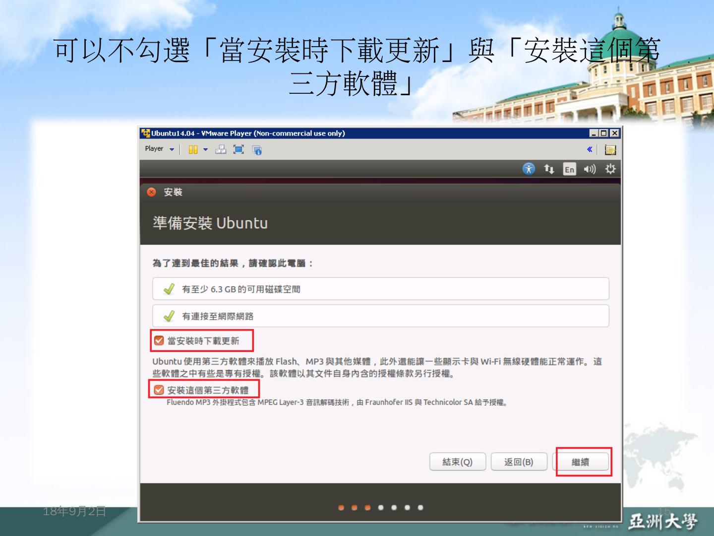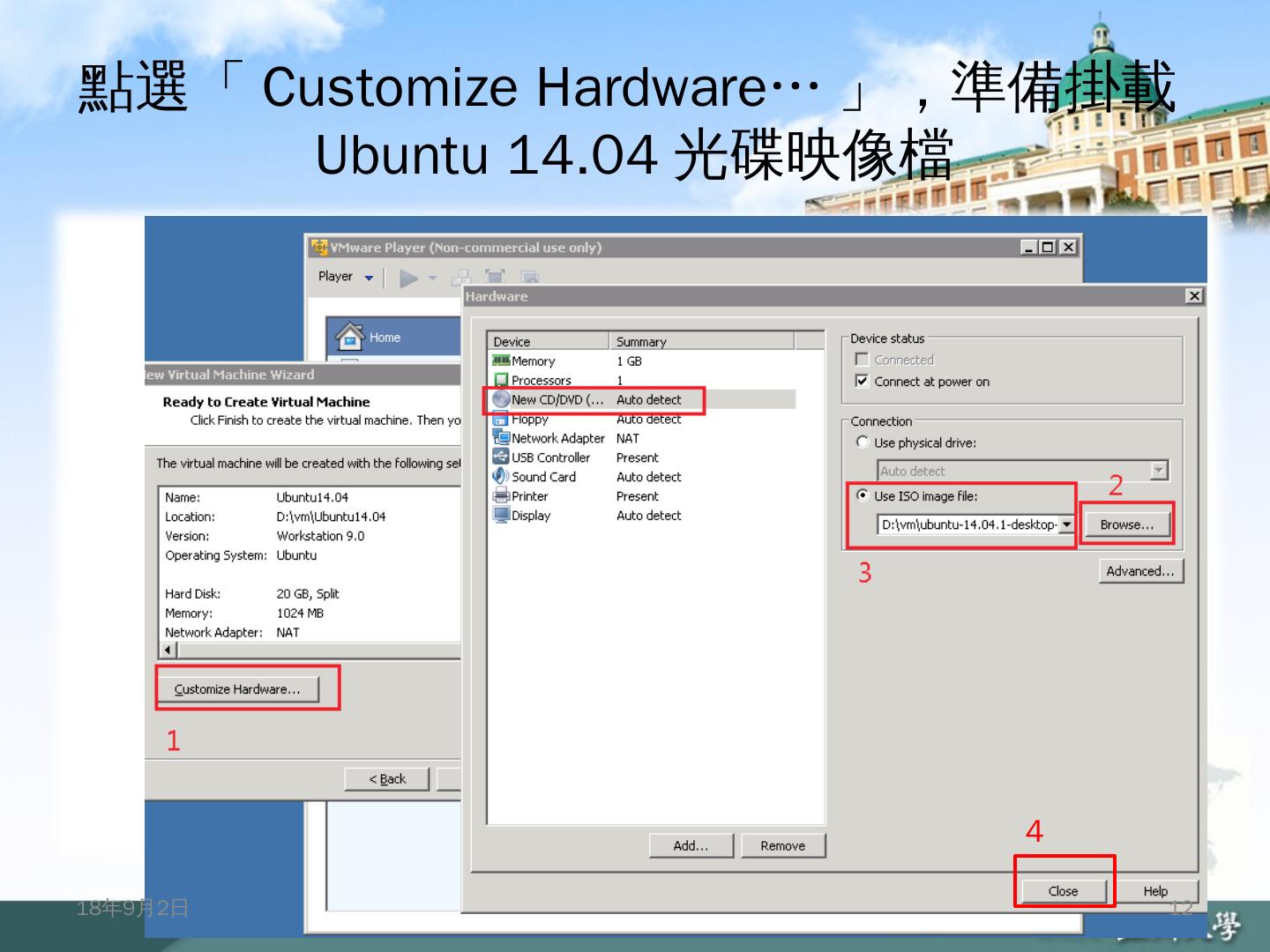 1. 1/1/97. 大綱. 軟體準備. VMware Player; Ubuntu 14.04. VMware Player 安裝; Ubuntu 14.04 安裝. 1/1/97. 2. 軟體準備. VMware-player-5.0.4-1945795.