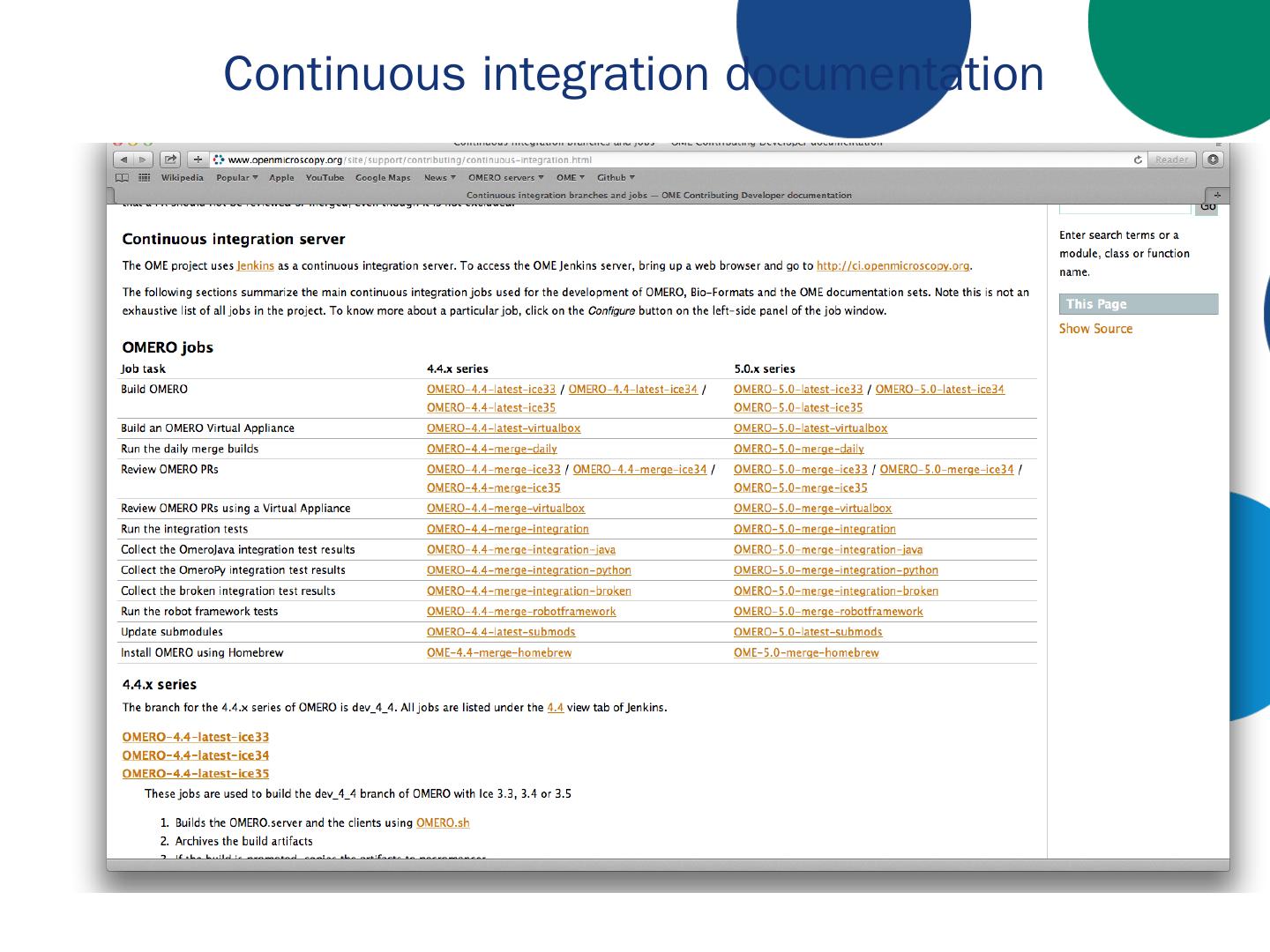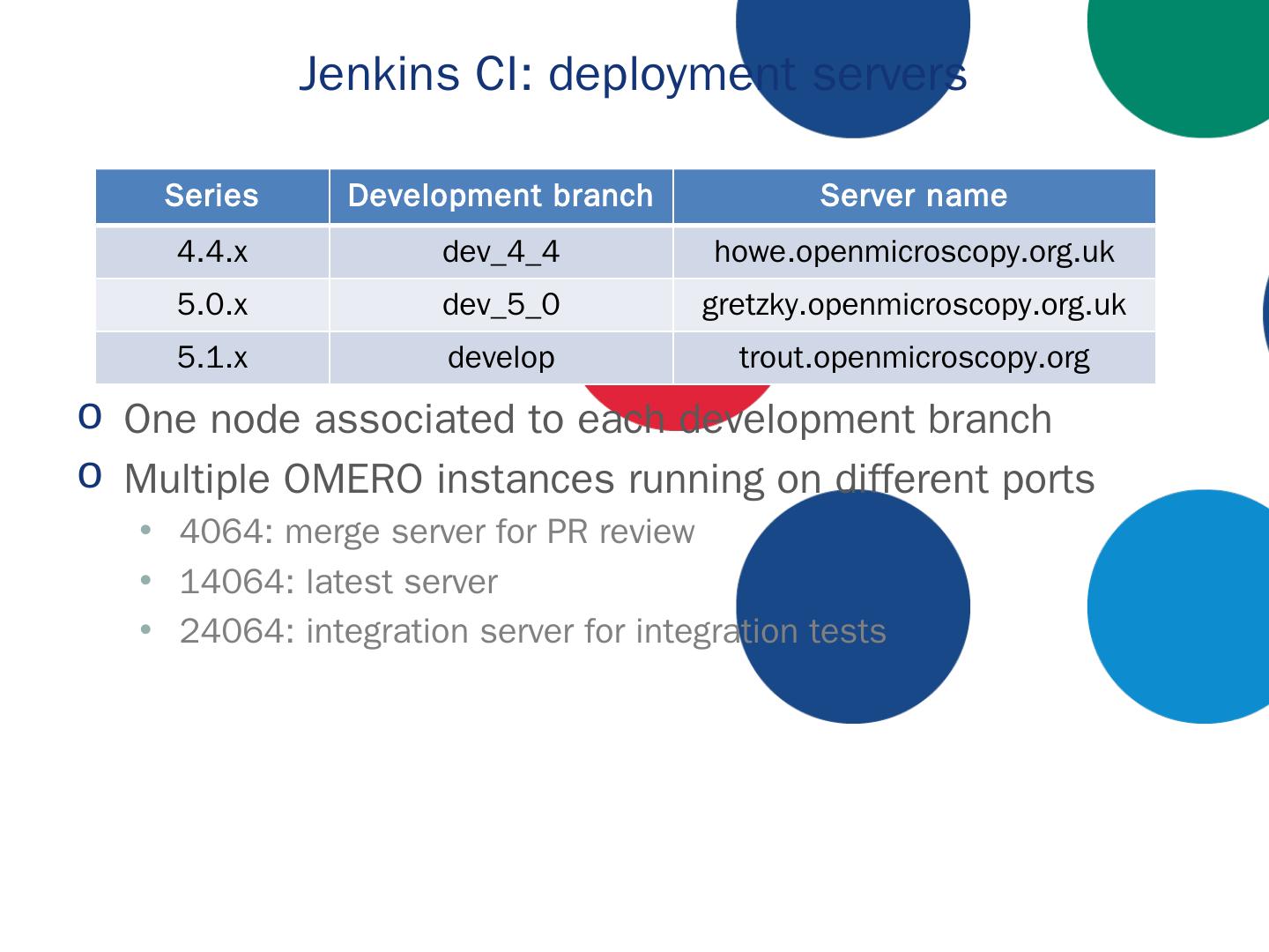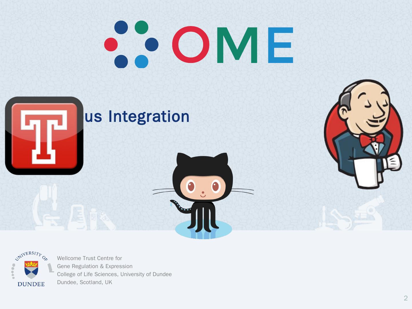 Introduction; Travis CI; Jenkins CI. CI documentation. 2. OME releases: Deliverables. OMERO.server / OMERO.clients. Windows, Linux, Mac OS X; Ice (3,3, 3.4, ...