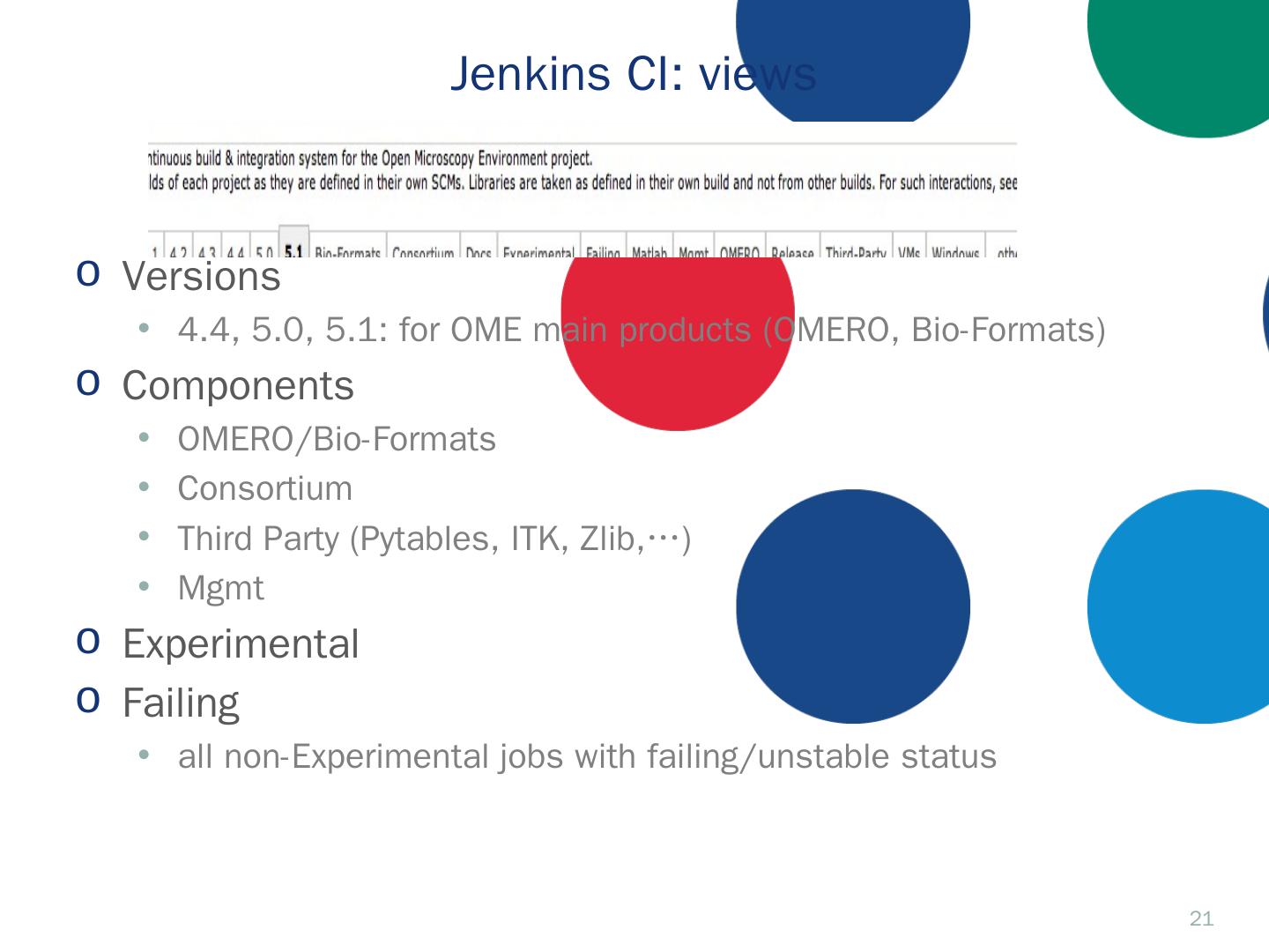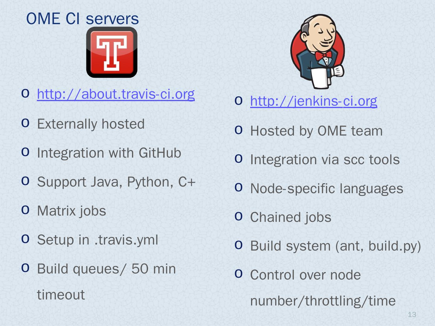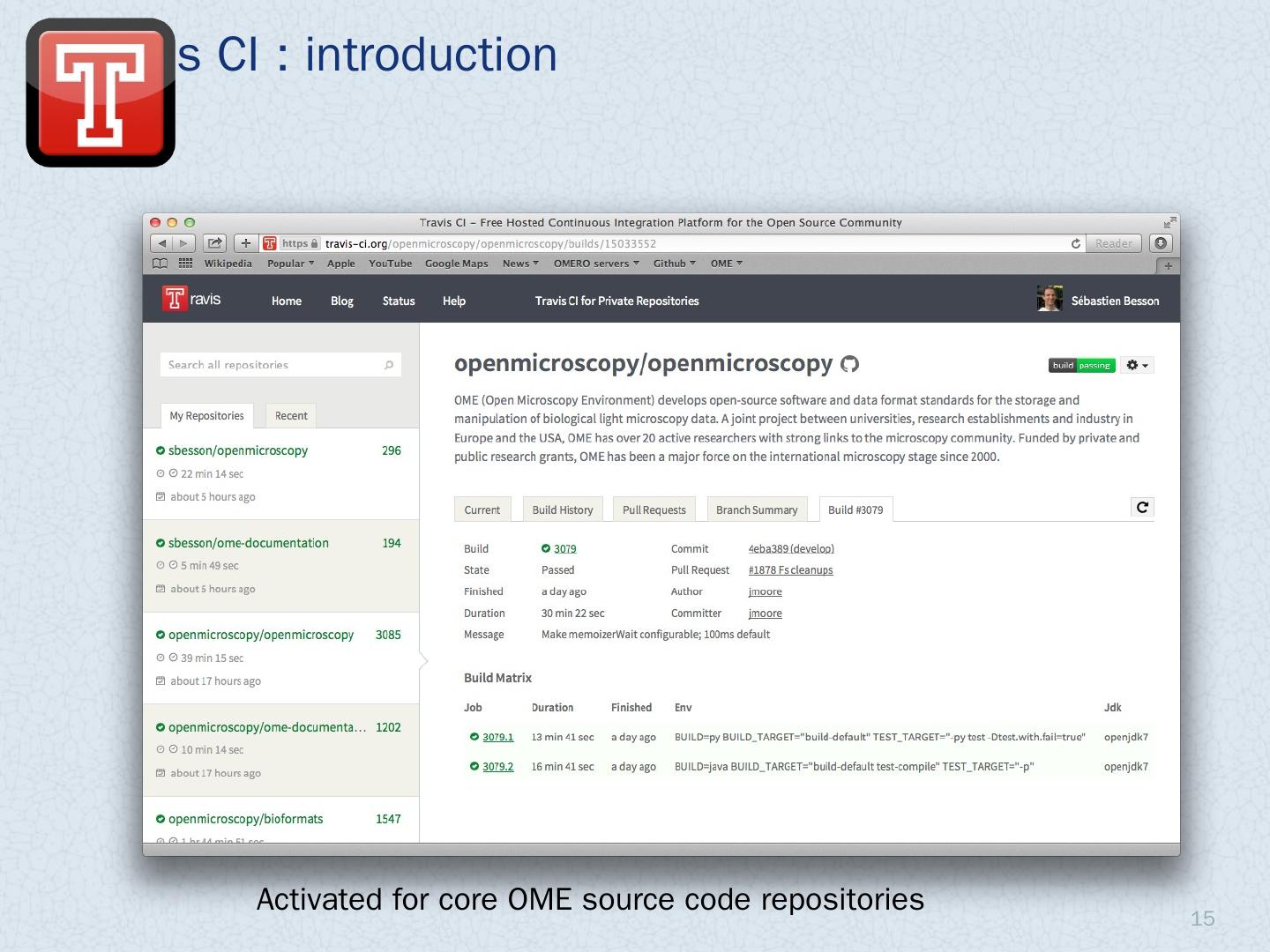 Introduction; Travis CI; Jenkins CI. CI documentation. 2. OME releases: Deliverables. OMERO.server / OMERO.clients. Windows, Linux, Mac OS X; Ice (3,3, 3.4, ...