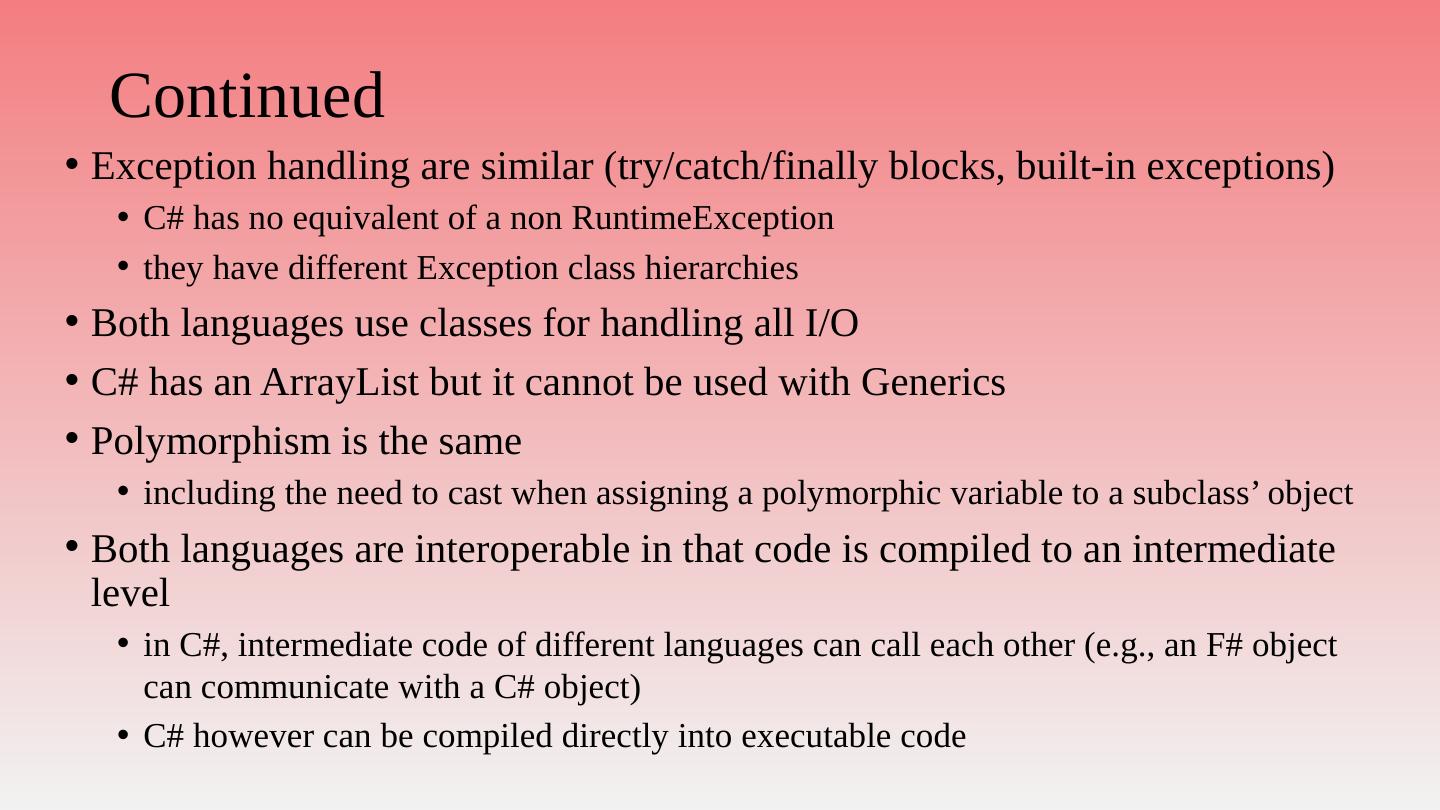 C# classes inherit from only one class (no multiple inheritance) but abstract classes can be used similar to Java to inherit additional items; heap items are ...