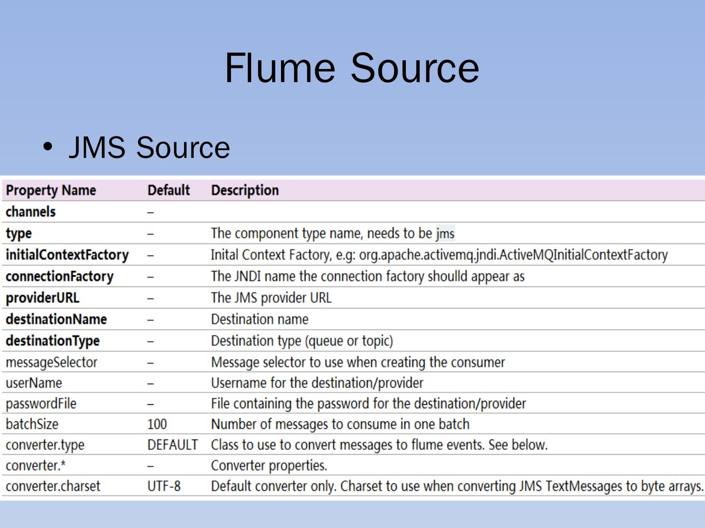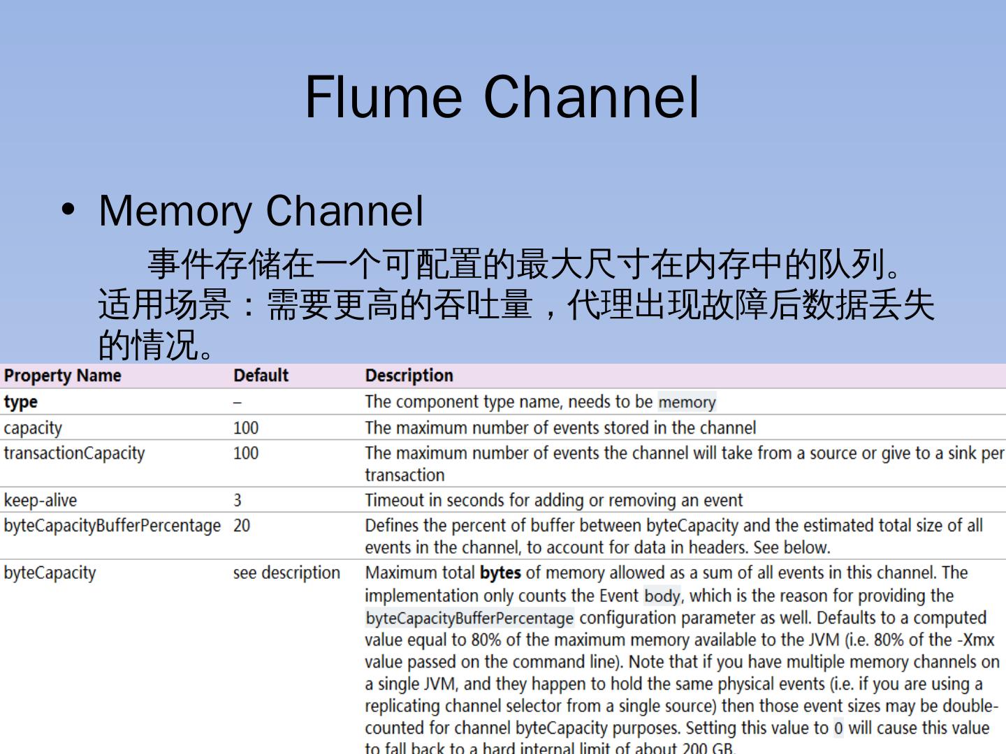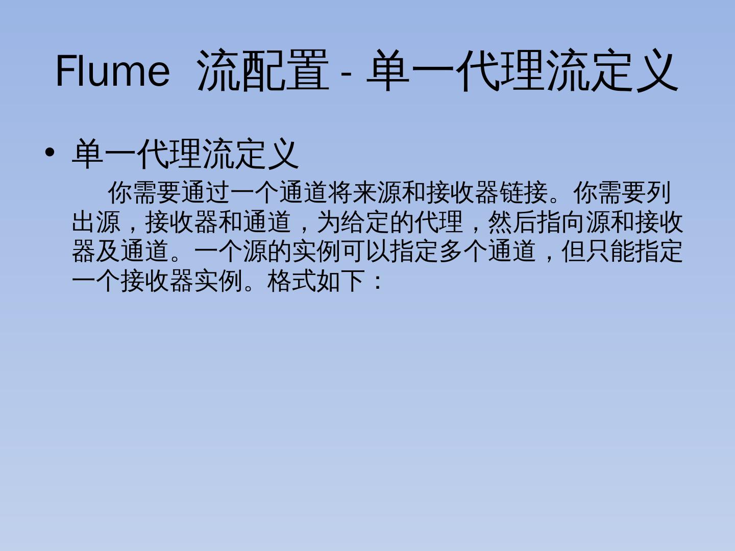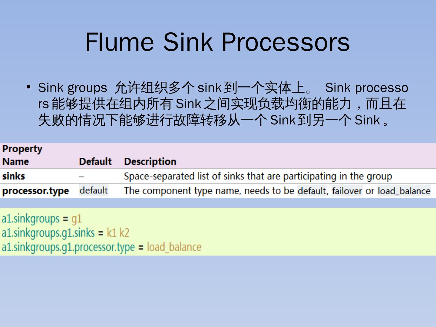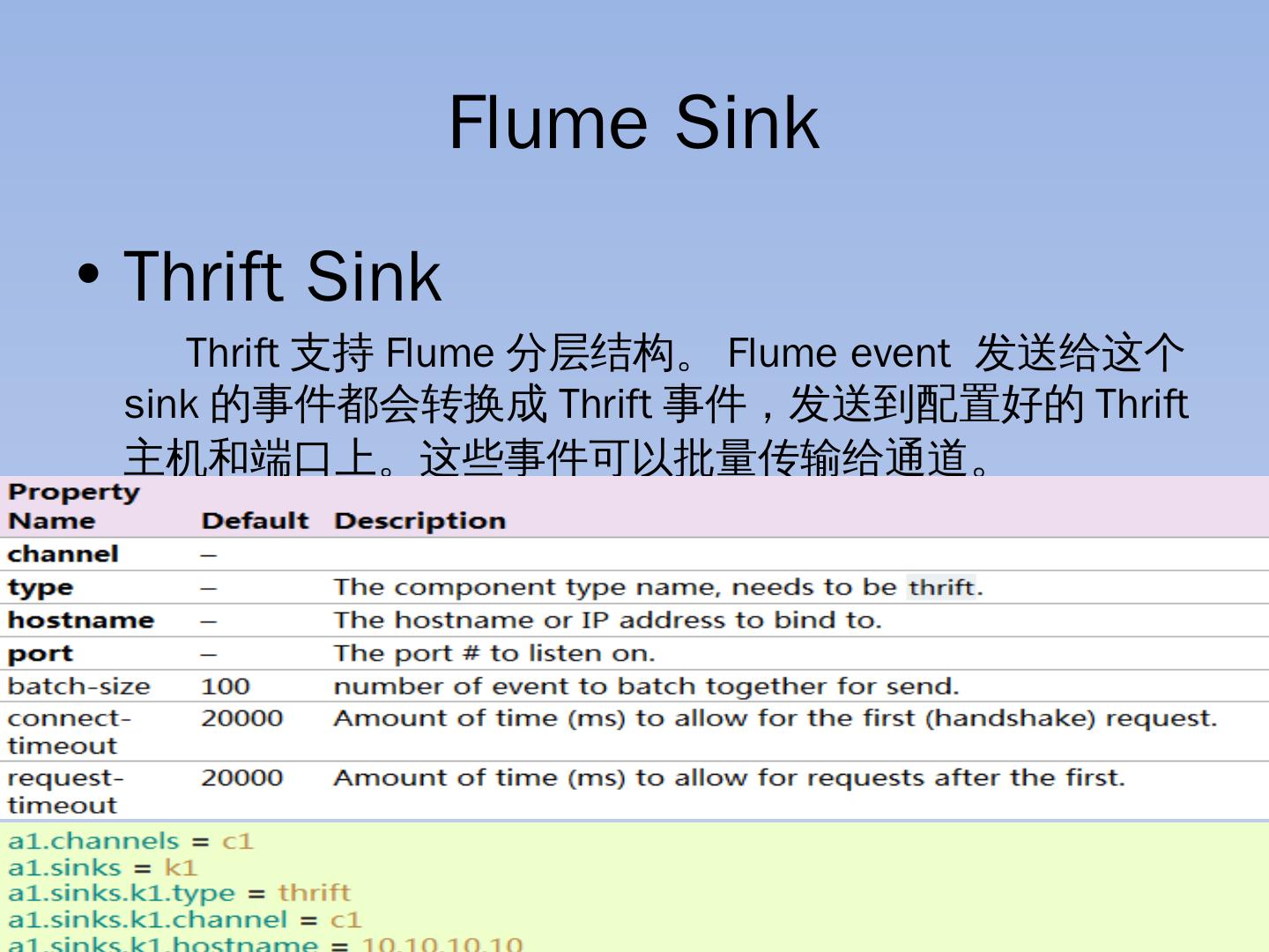 Flume支持扇出流从一个源到多个通道。有两种模式的扇出,复制和复用。在复制流的事件被发送到所有的配置通道。在复用的情况下,事件被发送到合格的渠道只有 ...