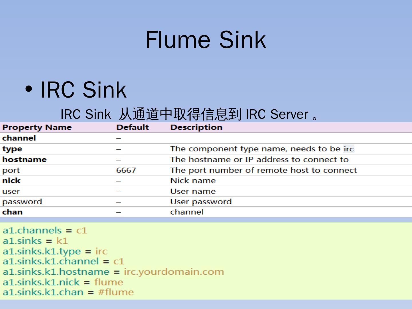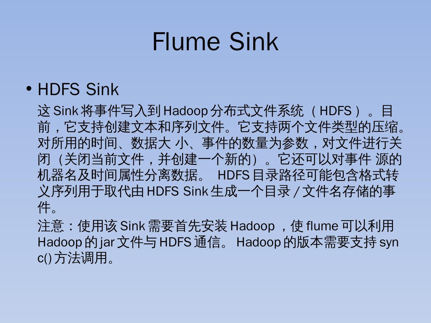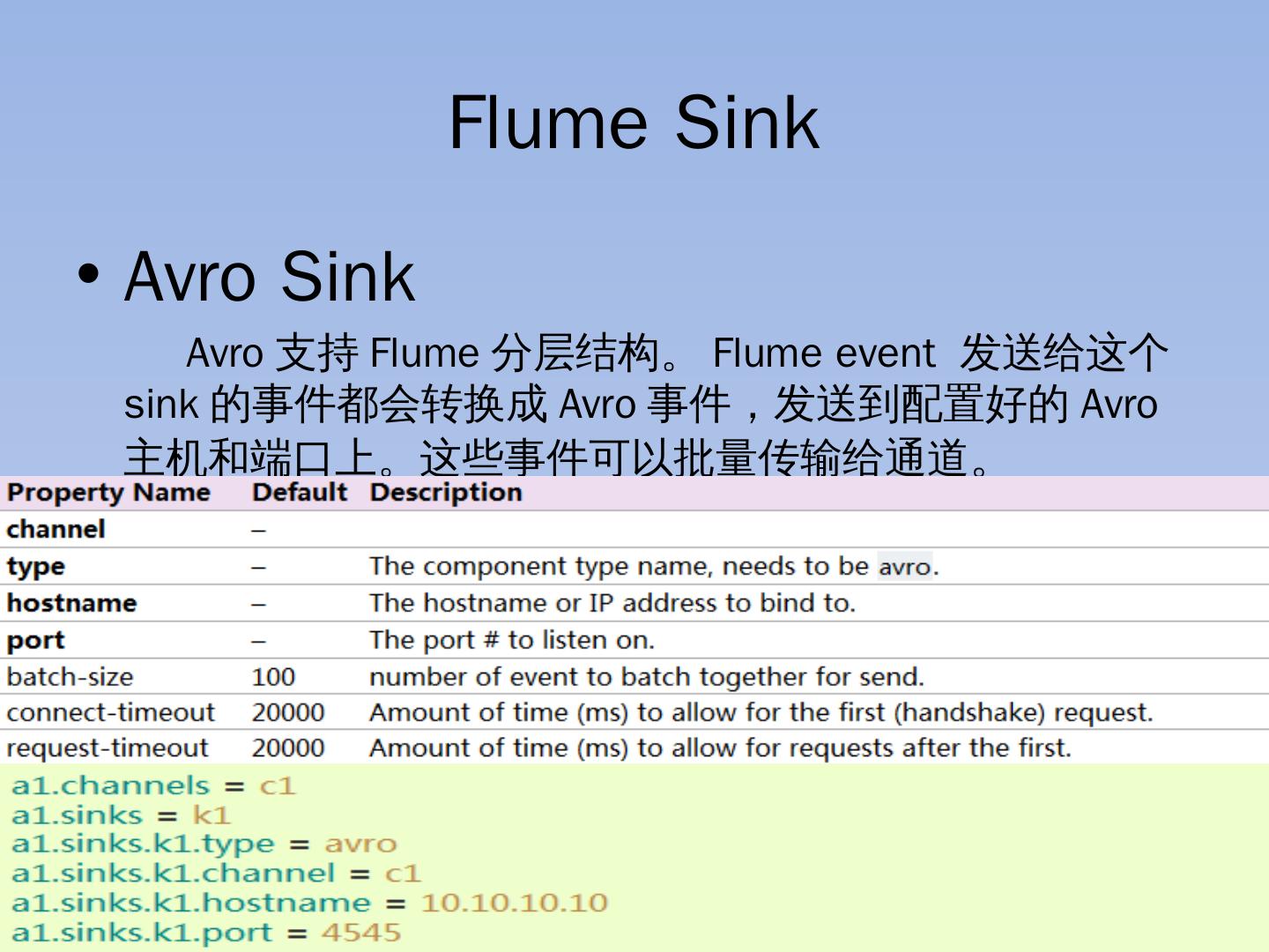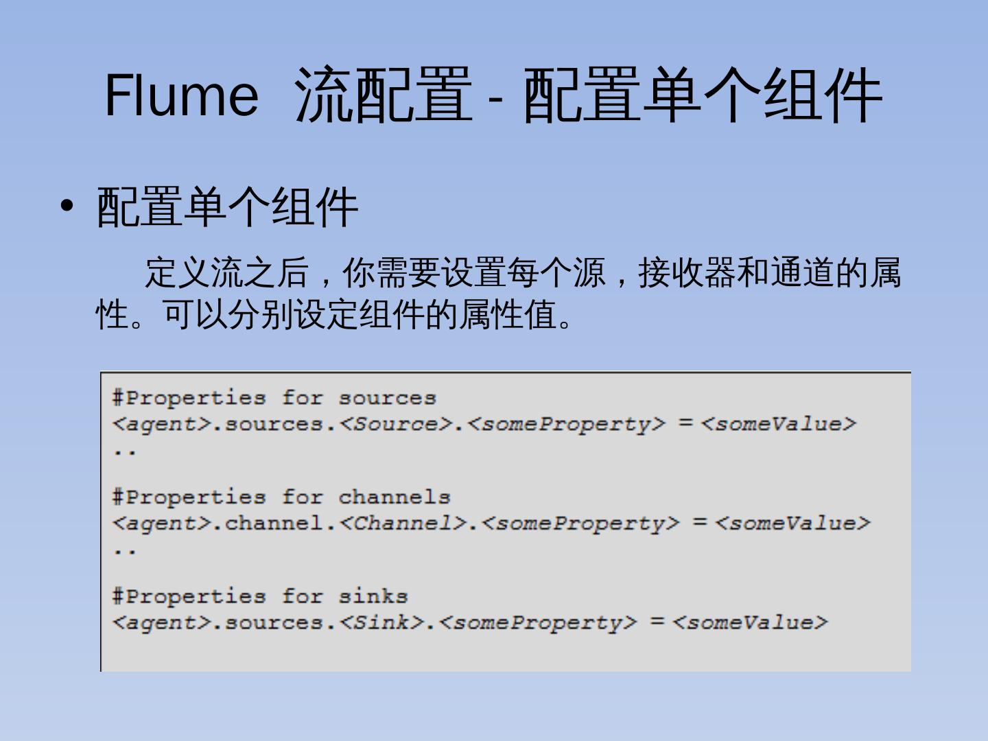 Flume支持扇出流从一个源到多个通道。有两种模式的扇出,复制和复用。在复制流的事件被发送到所有的配置通道。在复用的情况下,事件被发送到合格的渠道只有 ...