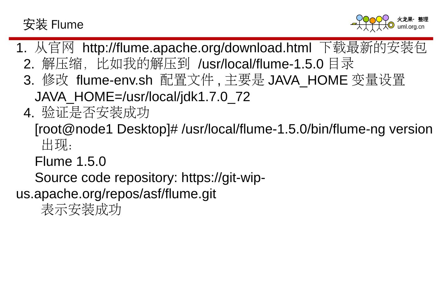 Flume浅谈---- 应用场景、原理、基本架构 和案例分析. 阎守臣. 目 录 CONTENTS. 一、Flume背景及应用场景. 二、Flume NG基本架构. 三、Flume安装部署. 四、Flume ...