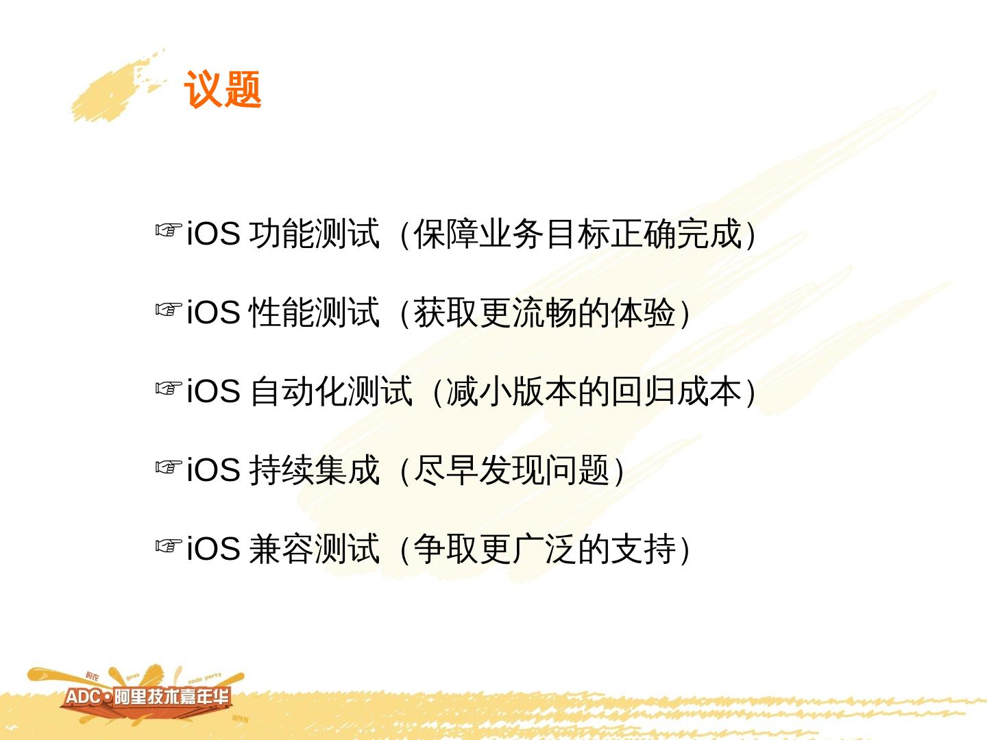 iOS持续集成(尽早发现问题). iOS兼容 ... 系统架构:C/S模式. 测试功能点 ... CI. iOS 持续集成实践. iOS持续集成实践-单元测试. iOS兼容测试. iOS兼容测试:. 硬件兼容 ...