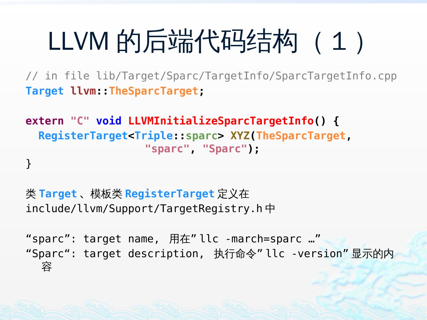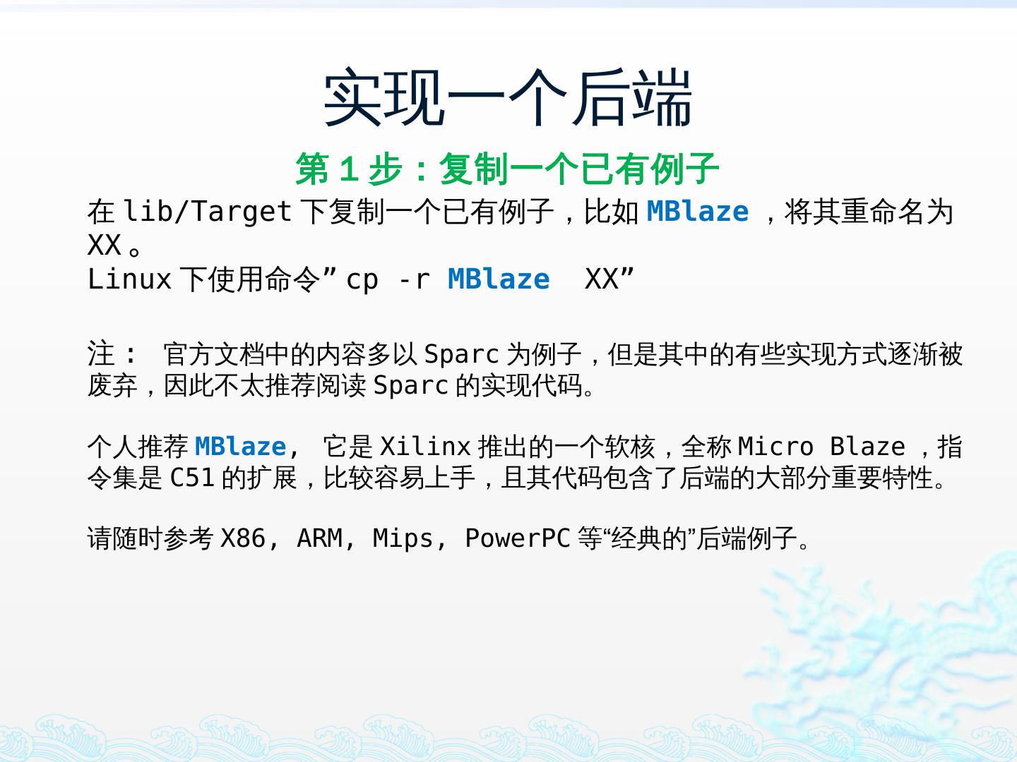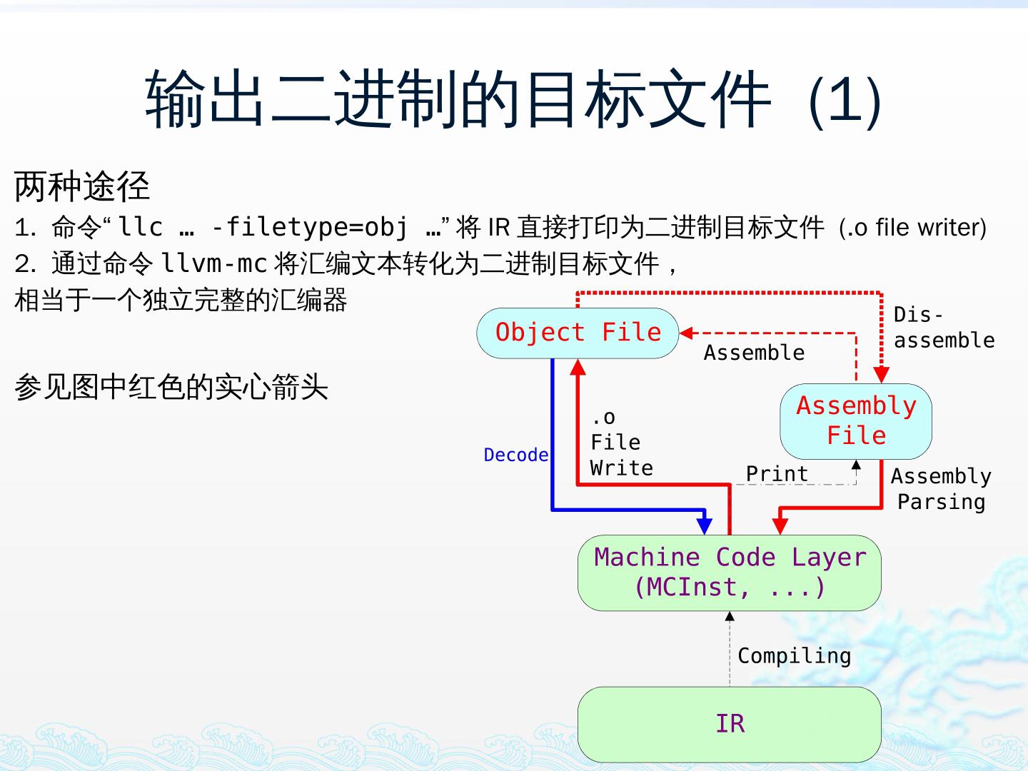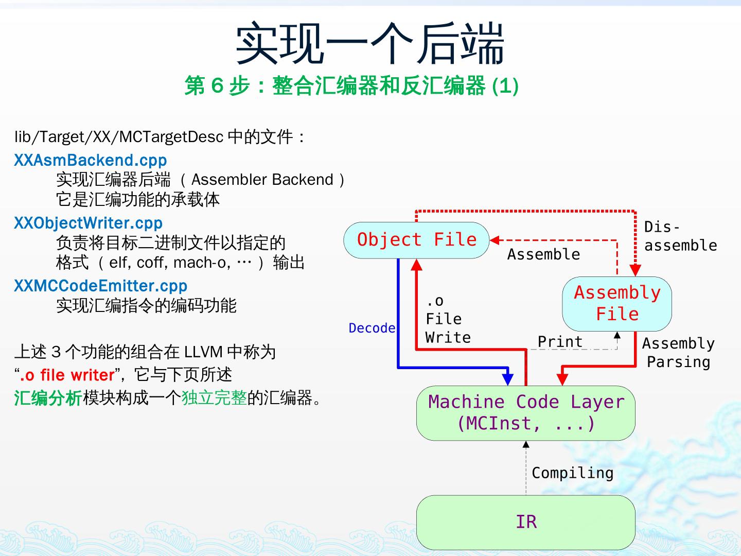 利用LLVM实作了一个编译器后端,把中间语言表示(IR)变成了目标语言二进制代码,并介绍了相关的编译器后端工具链。