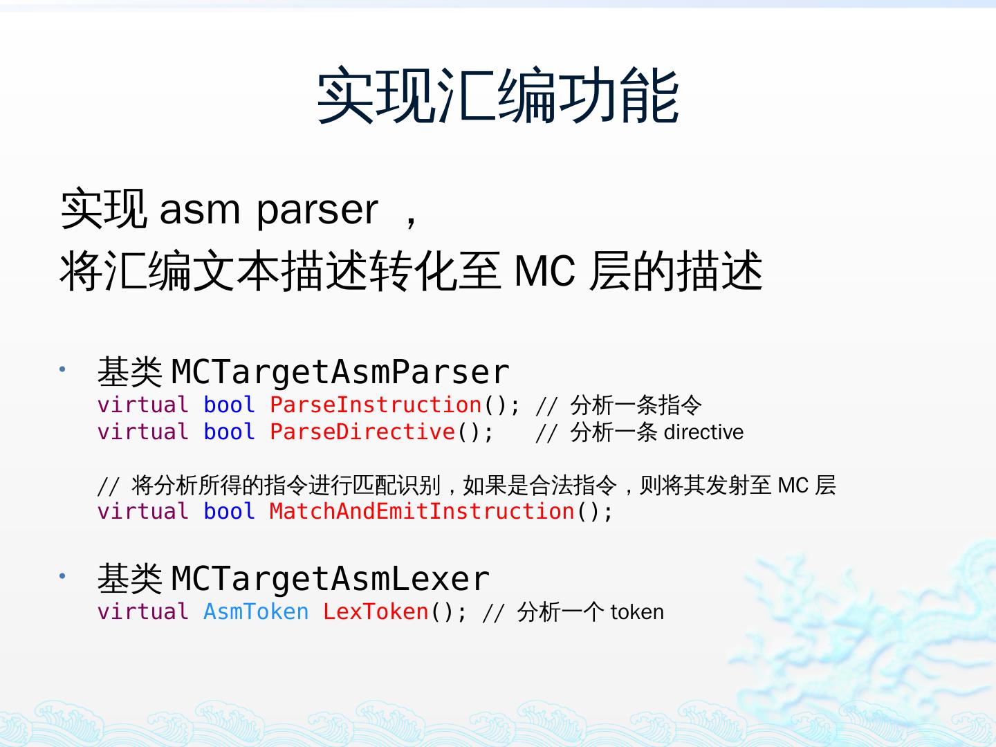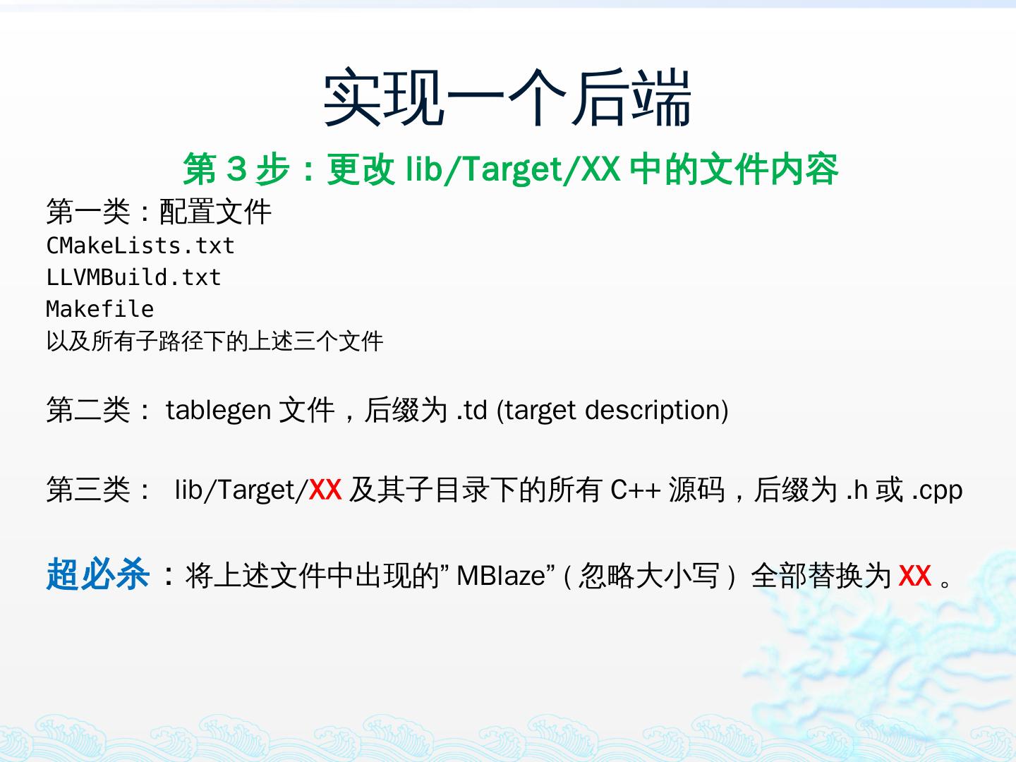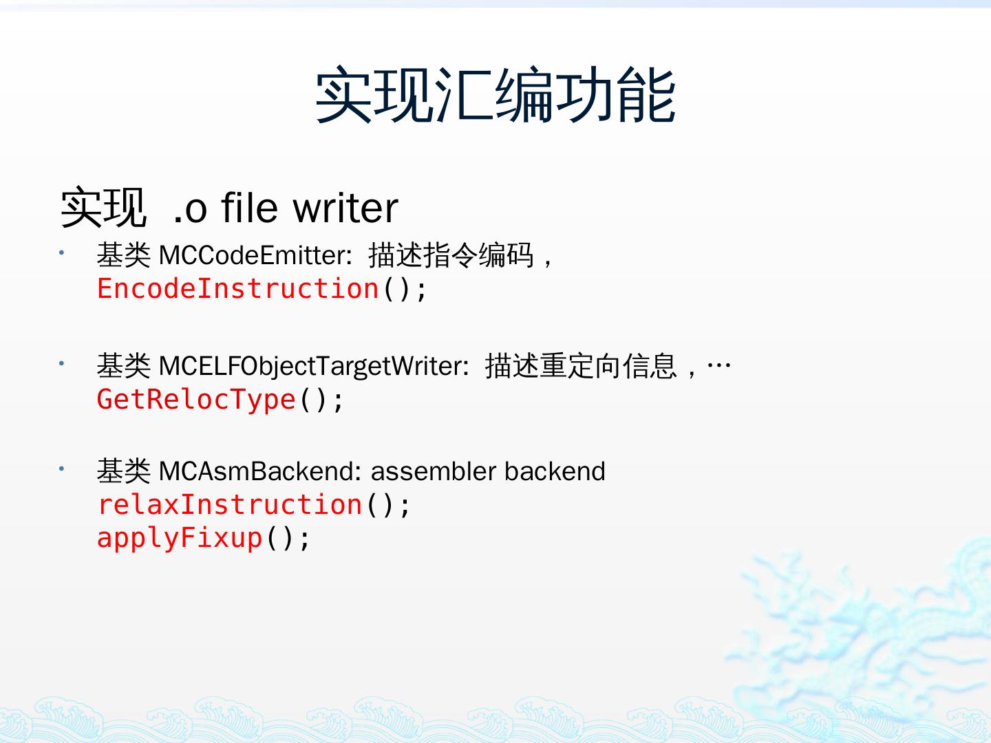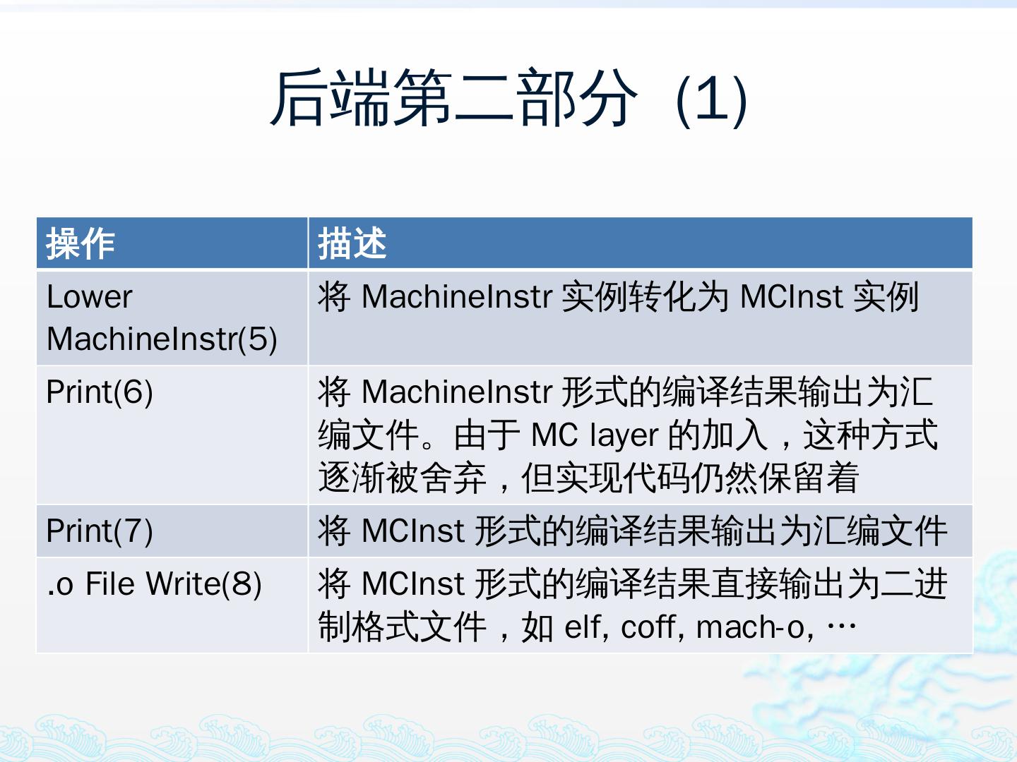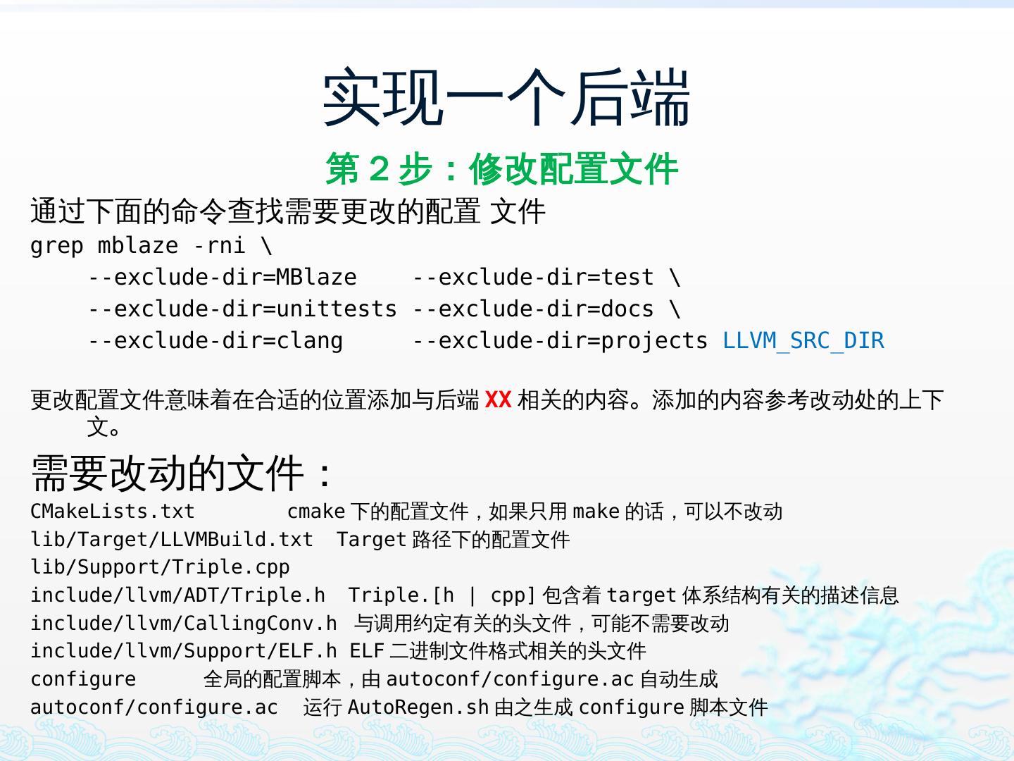 利用LLVM实作了一个编译器后端,把中间语言表示(IR)变成了目标语言二进制代码,并介绍了相关的编译器后端工具链。
