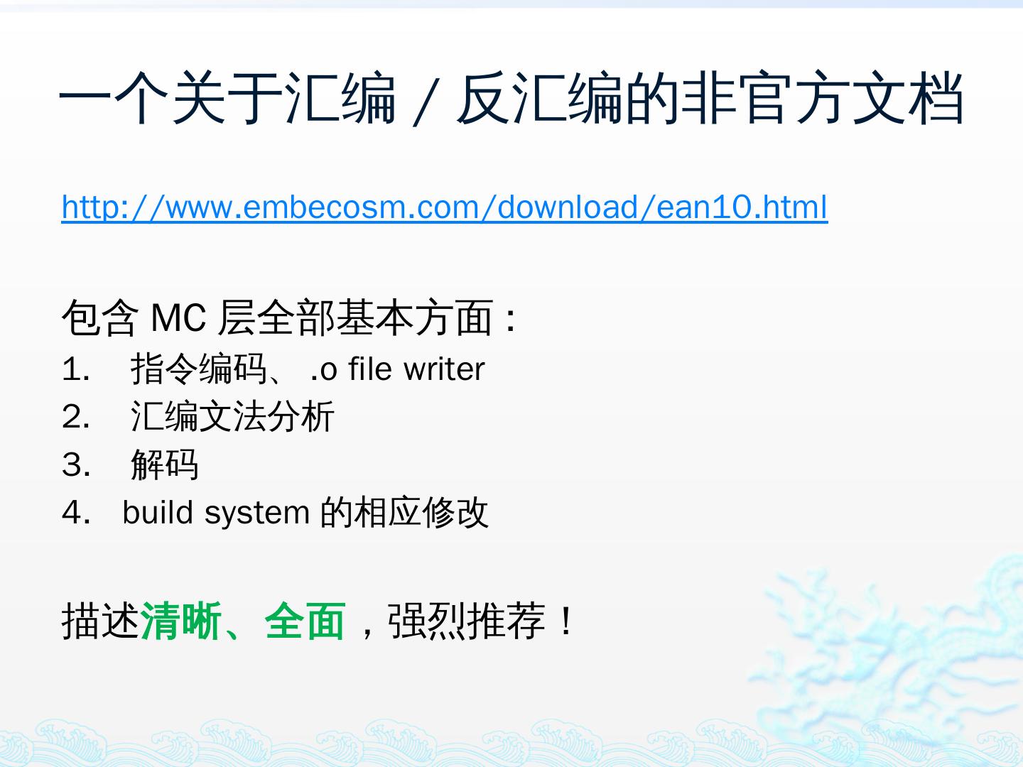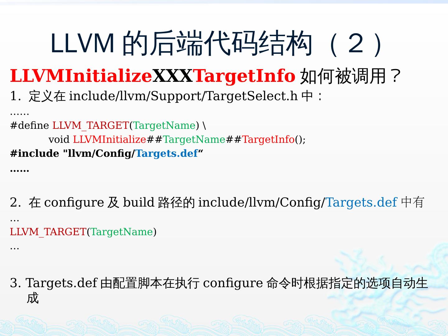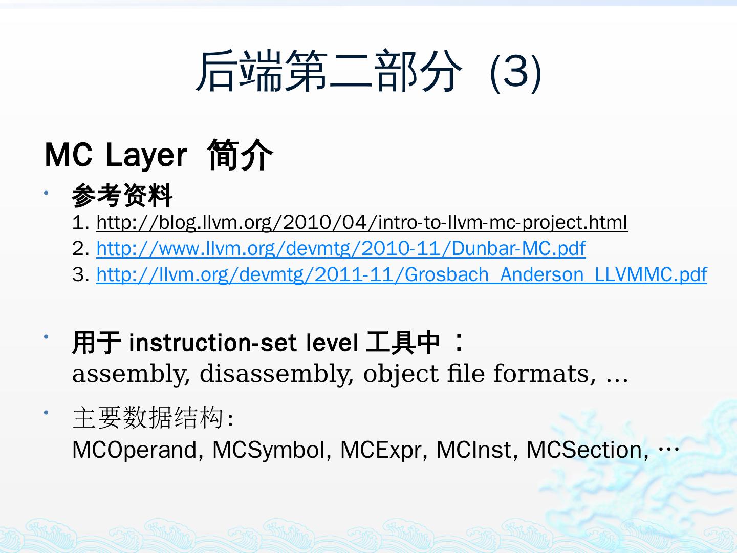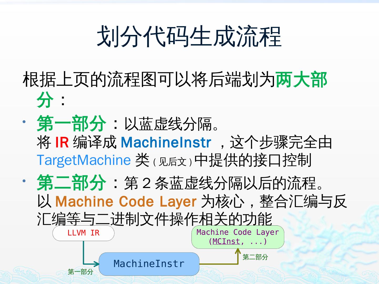 利用LLVM实作了一个编译器后端,把中间语言表示(IR)变成了目标语言二进制代码,并介绍了相关的编译器后端工具链。