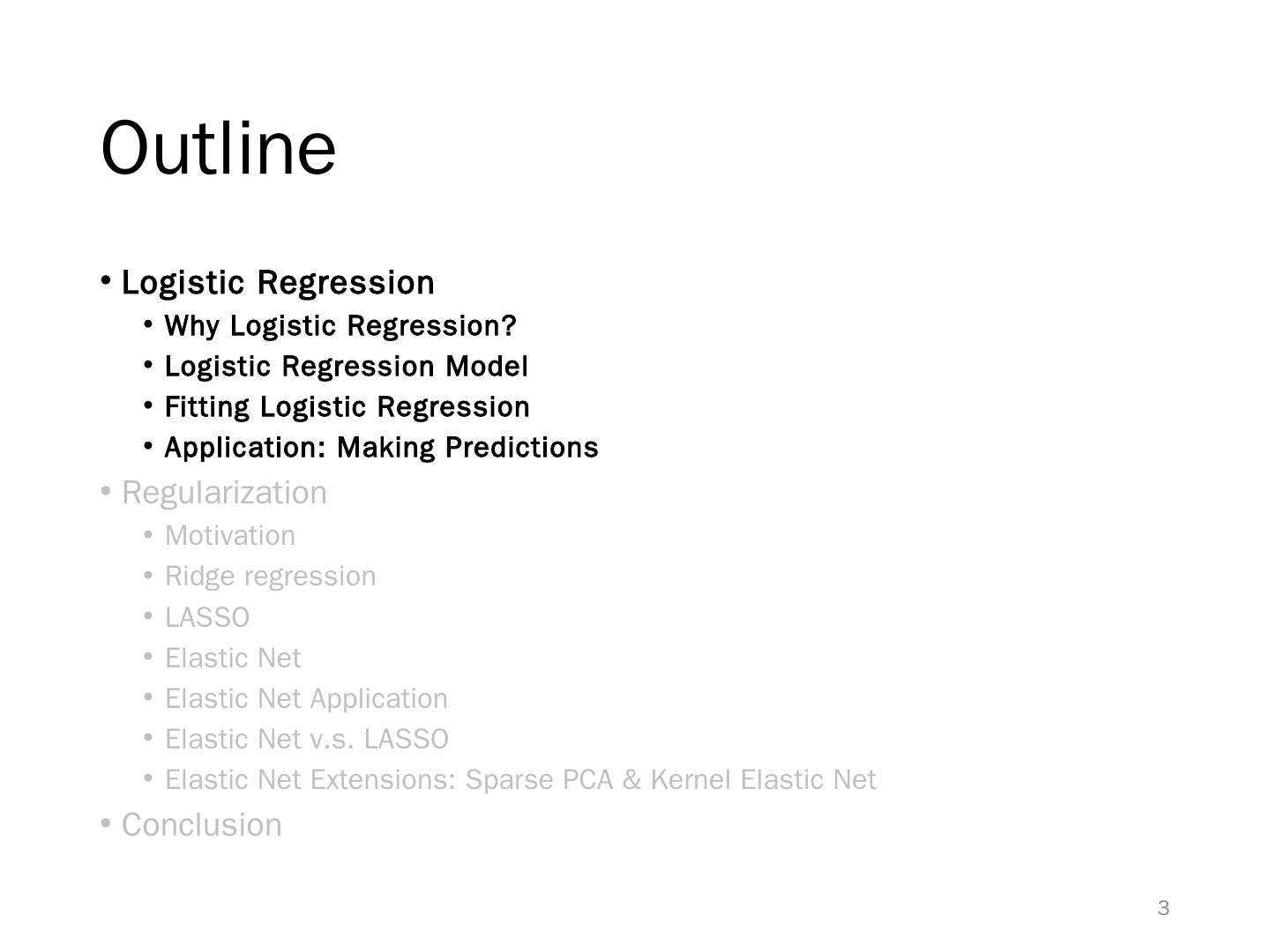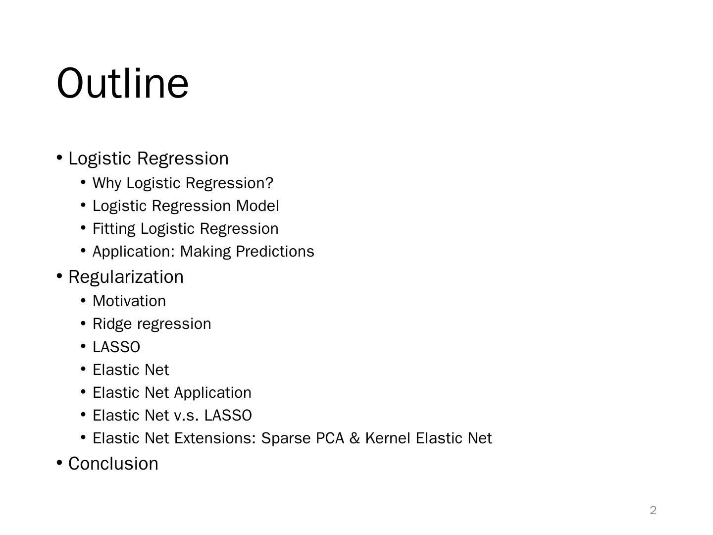 Logistic Regression & Elastic Net. Weifeng Li and Hsinchun Chen. Credits: Hui Zou, University of Minnesota Trevor Hastie, Stanford University Robert Tibshirani ...