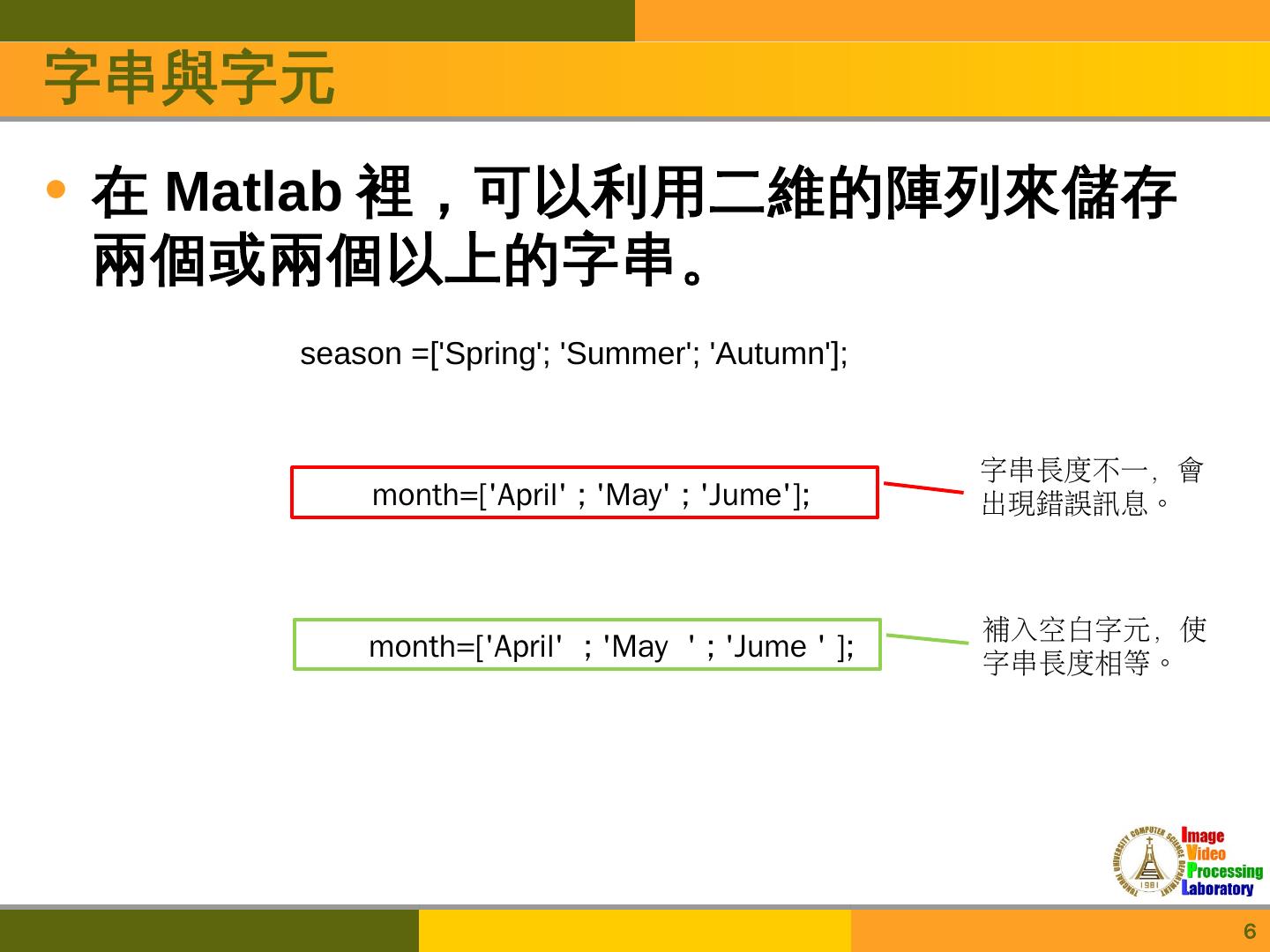 字串與字元在Matlab裡