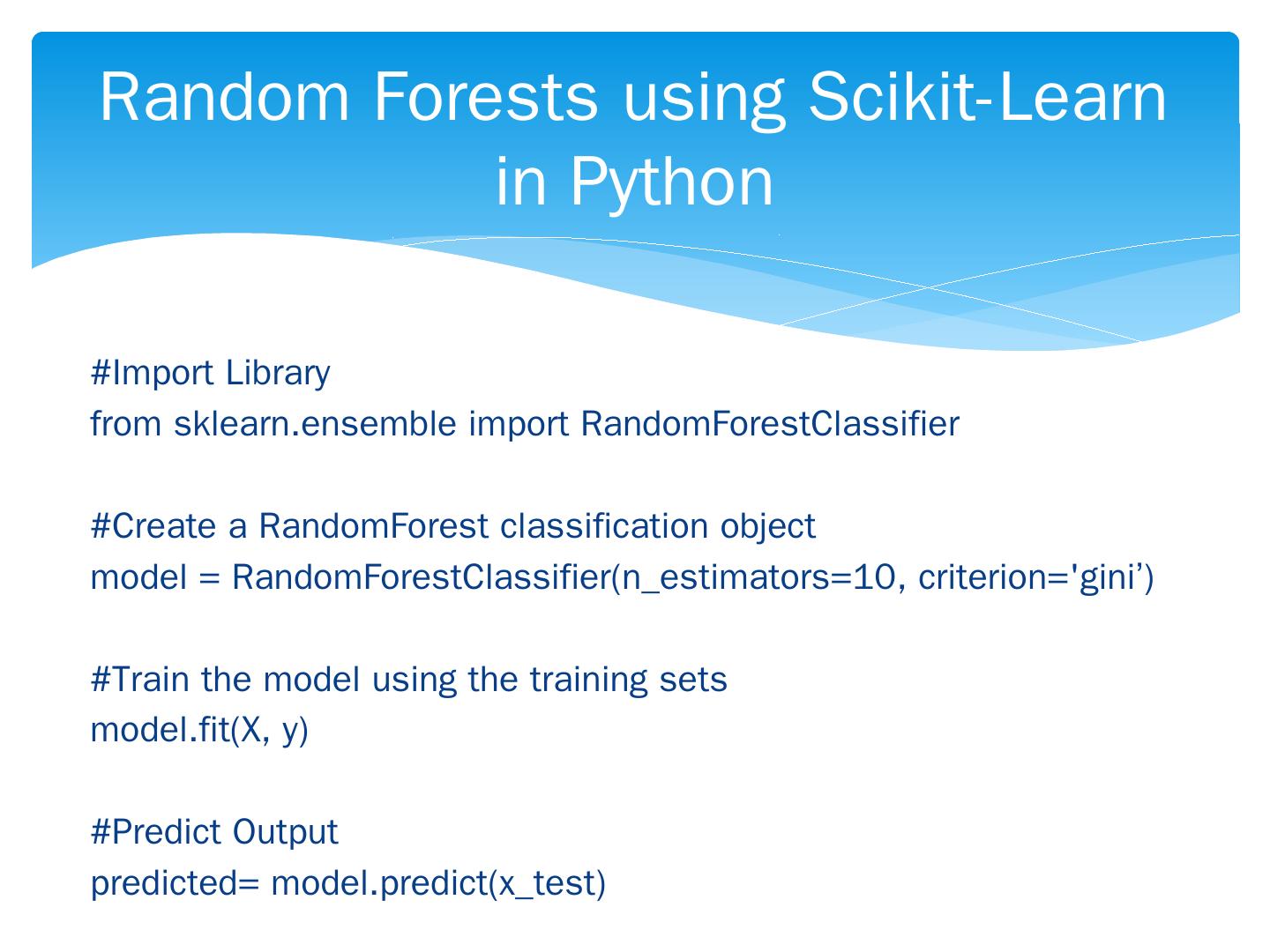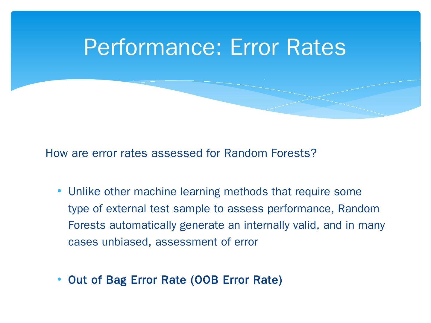 Supervised Machine Learning ... http://scikit-learn.org/ ... Unlike other machine learning methods that require some type of external test sample to assess ...