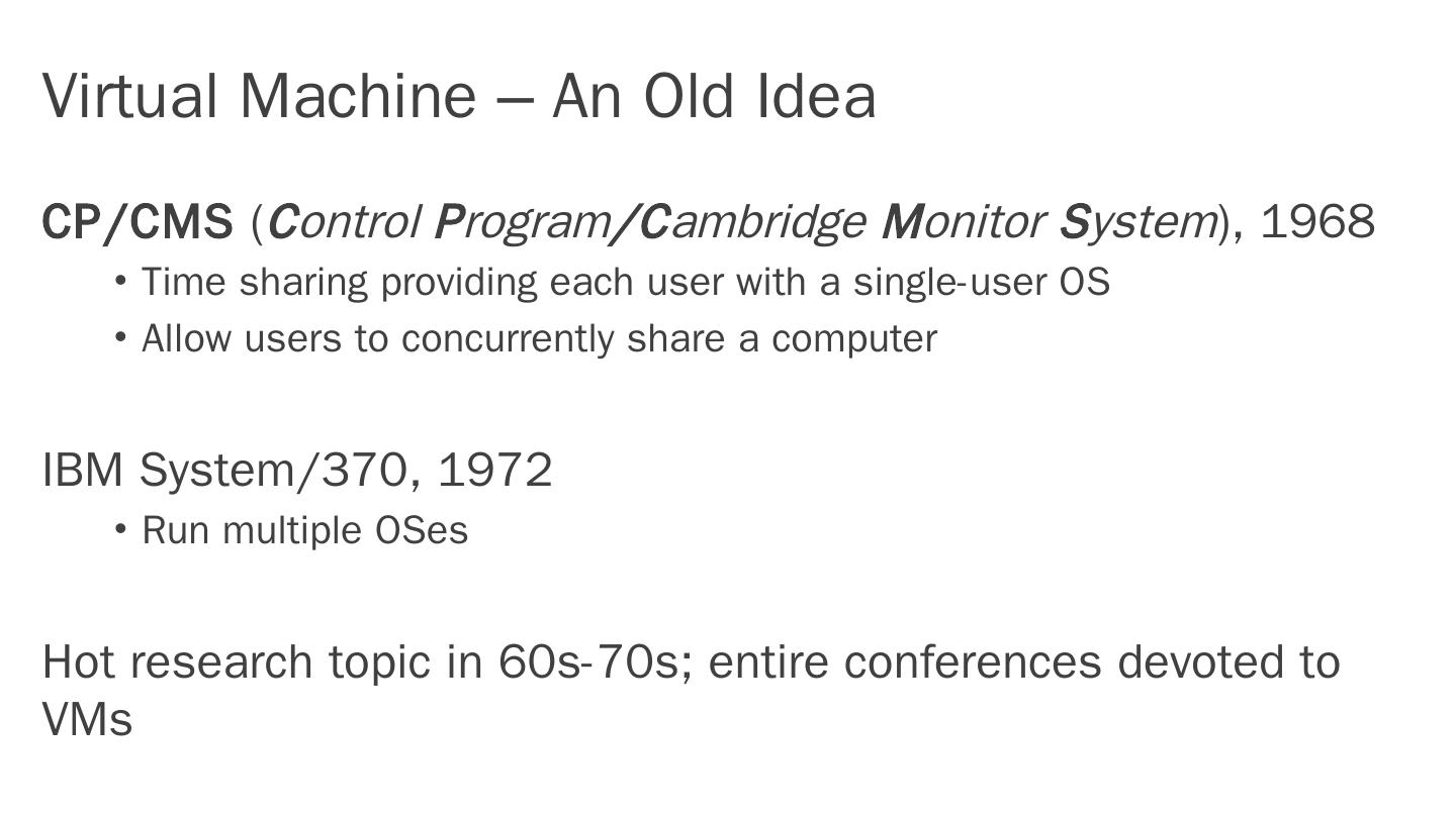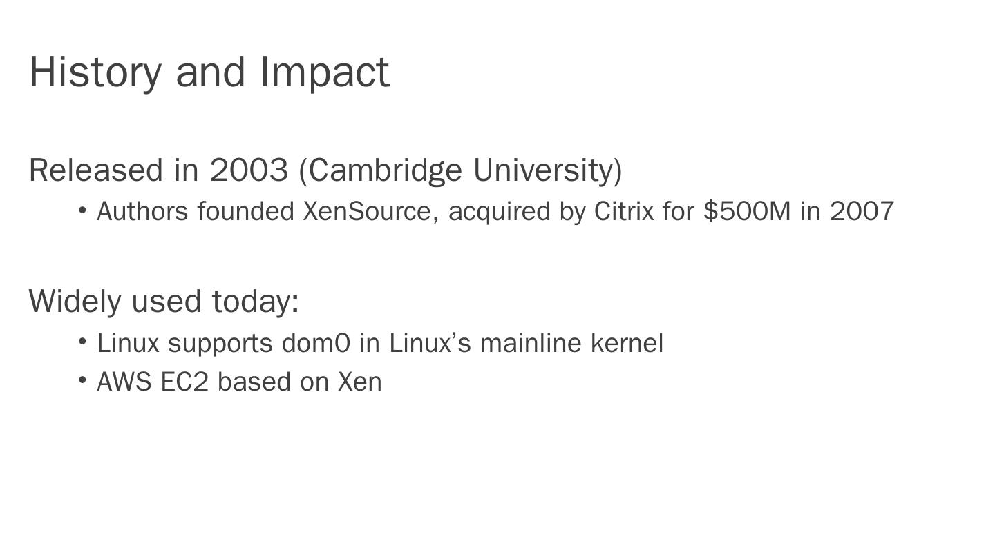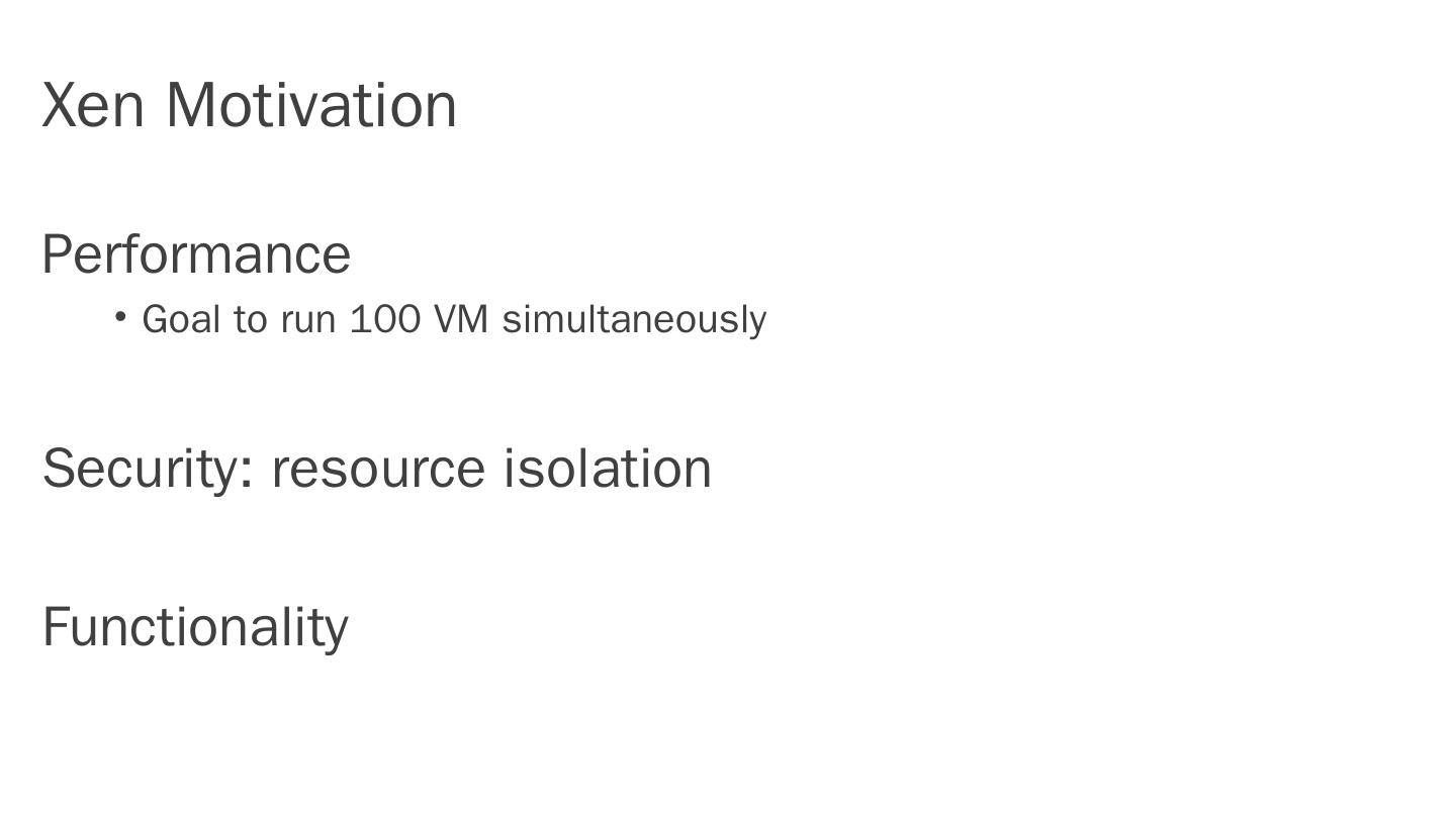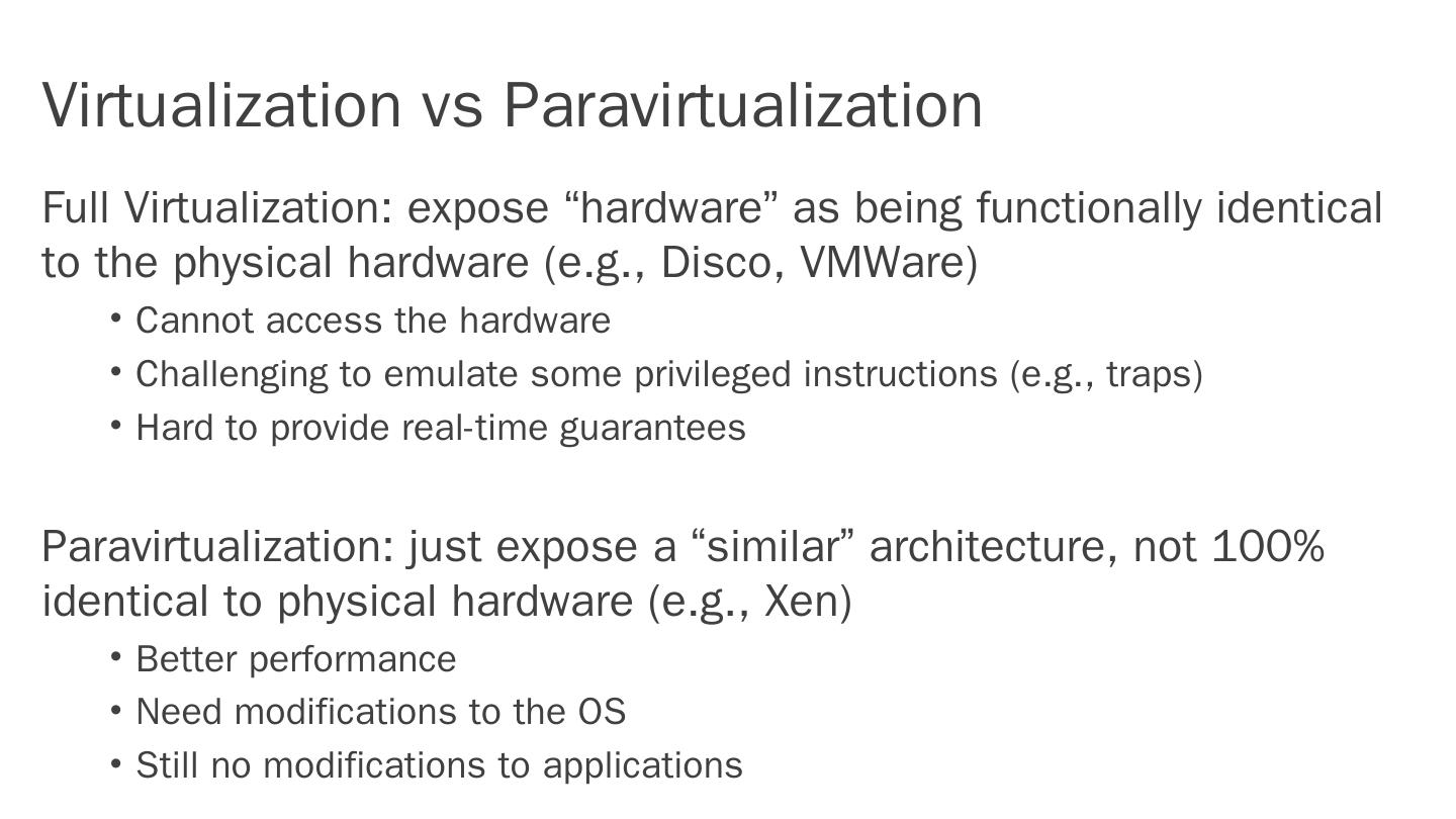 Xen and the Art of Virtualization, P. Barham, B. Dragovic, K Fraser, S. Hand, ... resources; E.g., IBM VM/370, Disco, VMware's ESX Server, Xen.