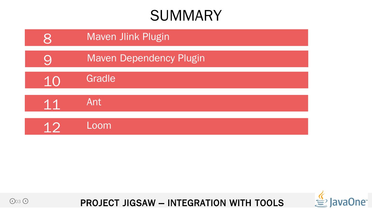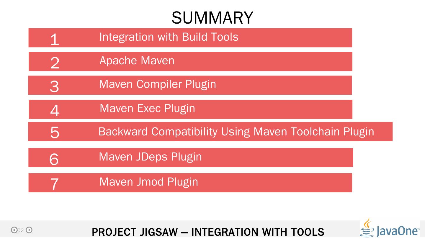 SUMMARY. 02. 1. Integration with Build Tools. 2. Apache Maven. 7. Maven Jmod Plugin. PROJECT JIGSAW – INTEGRATION WITH TOOLS. 3.