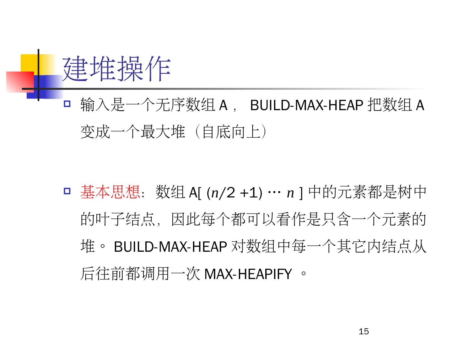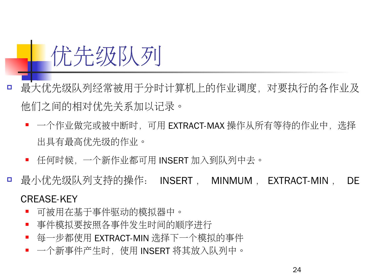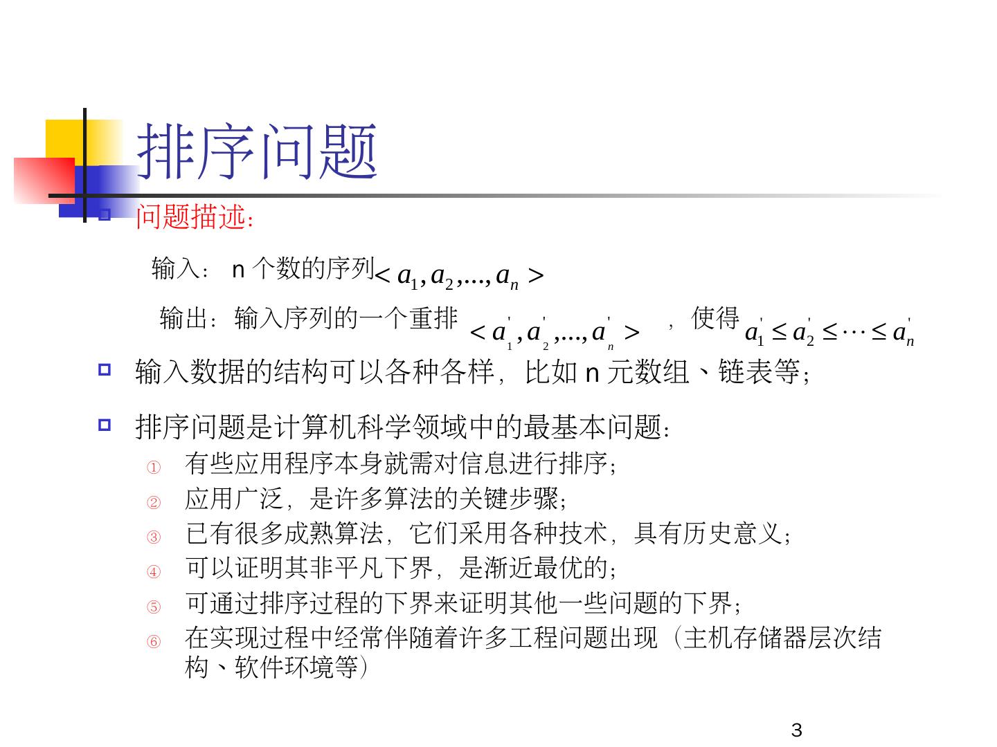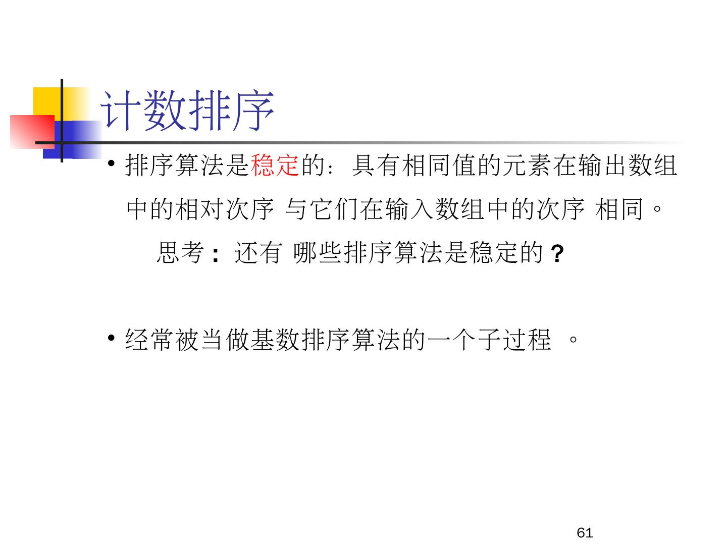 排序问题; 堆排序算法; 快速排序算法; 线性时间排序算法; 排序算法比较. 排序算法. 2 ... 堆数据结构是一种数组对象,可以被视为一棵完全二叉树。树中每个节点与数组 ...
