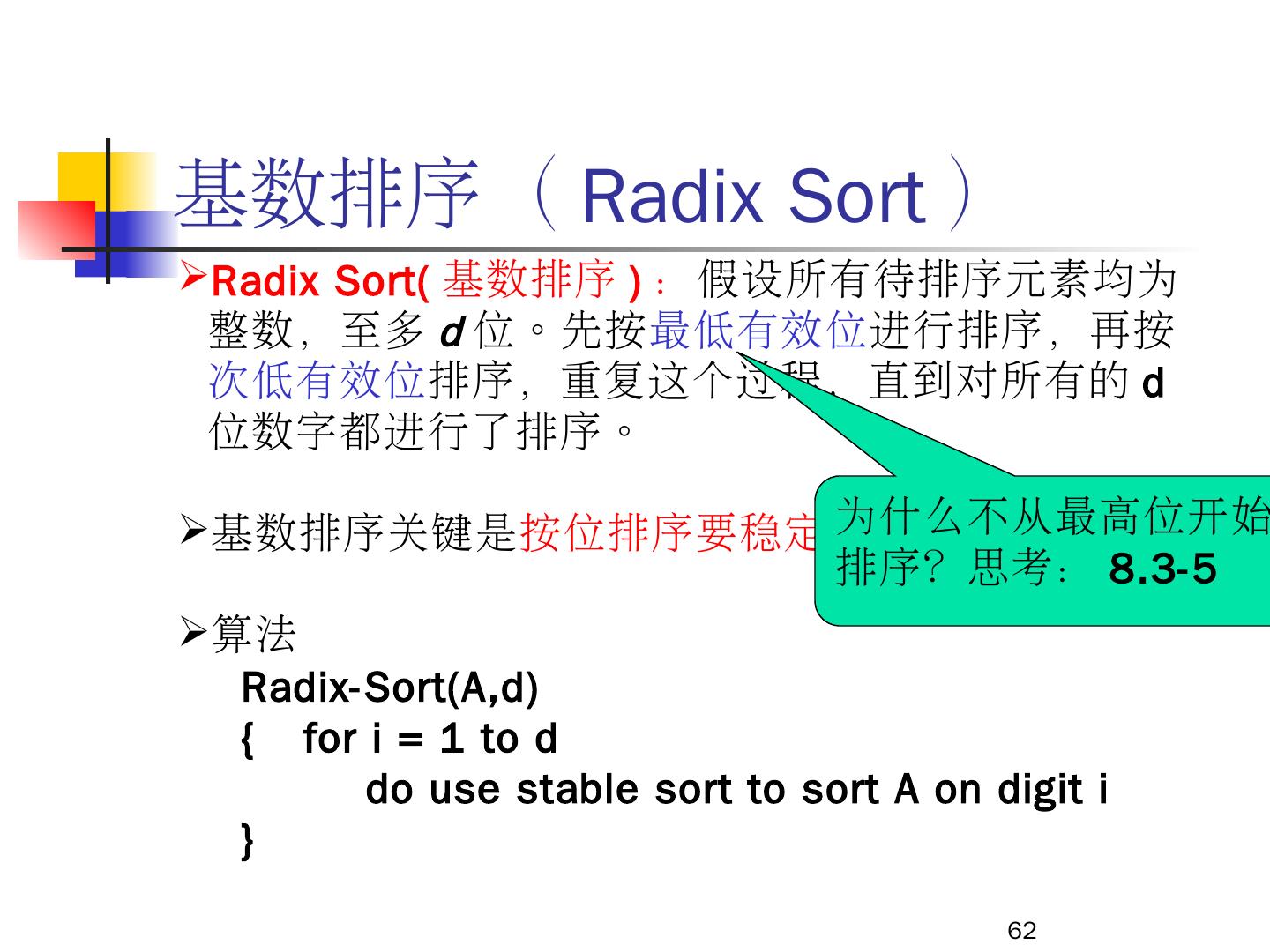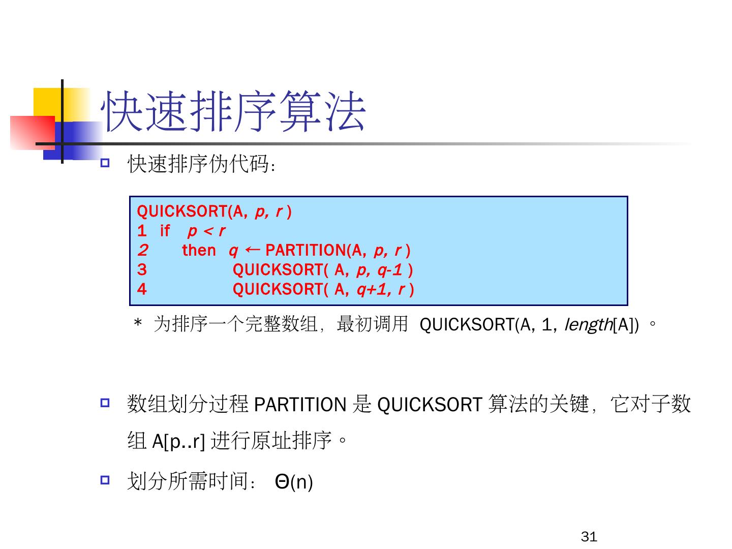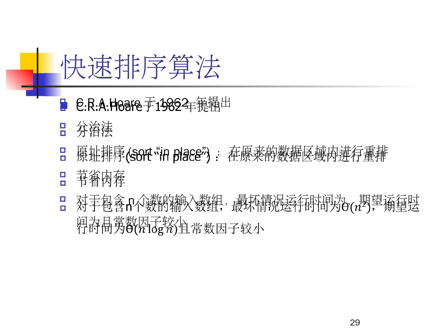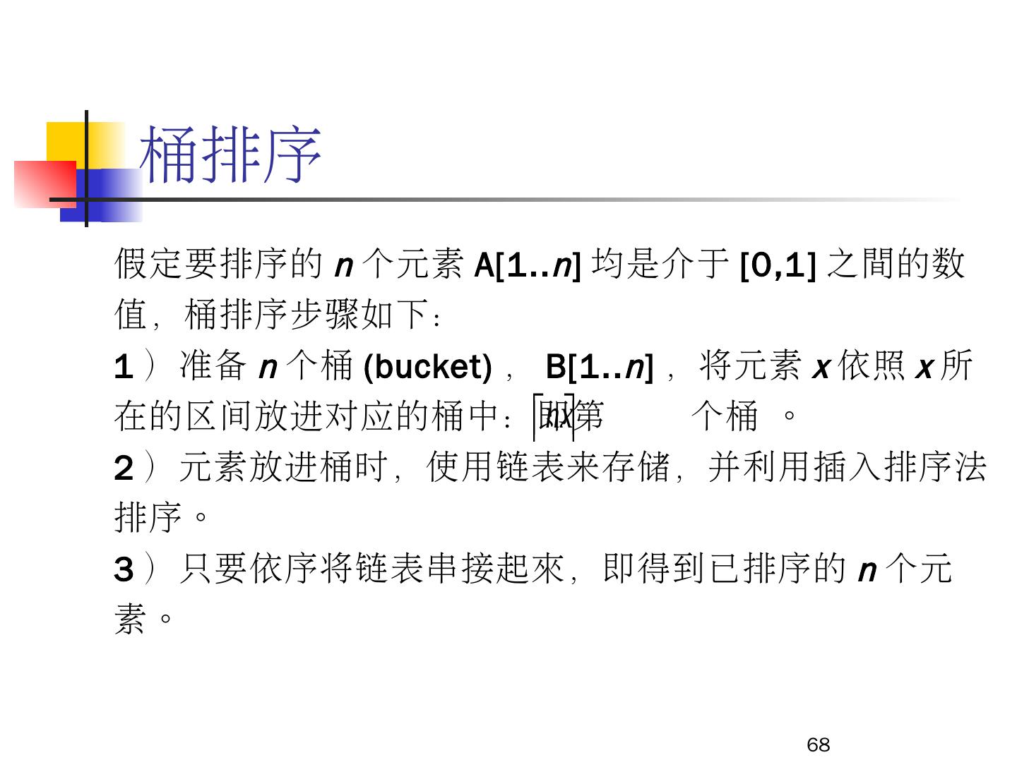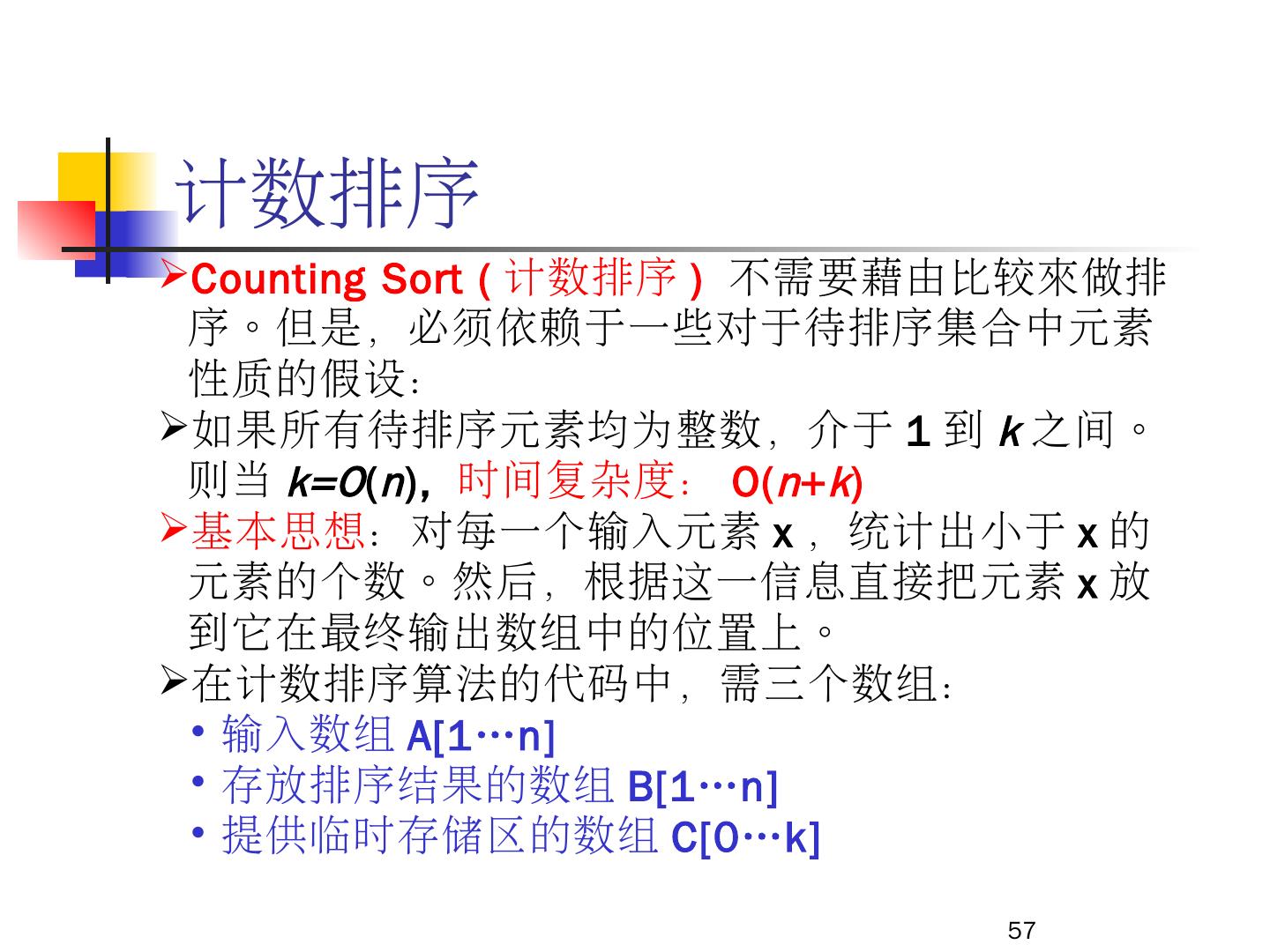 排序问题; 堆排序算法; 快速排序算法; 线性时间排序算法; 排序算法比较. 排序算法. 2 ... 堆数据结构是一种数组对象,可以被视为一棵完全二叉树。树中每个节点与数组 ...