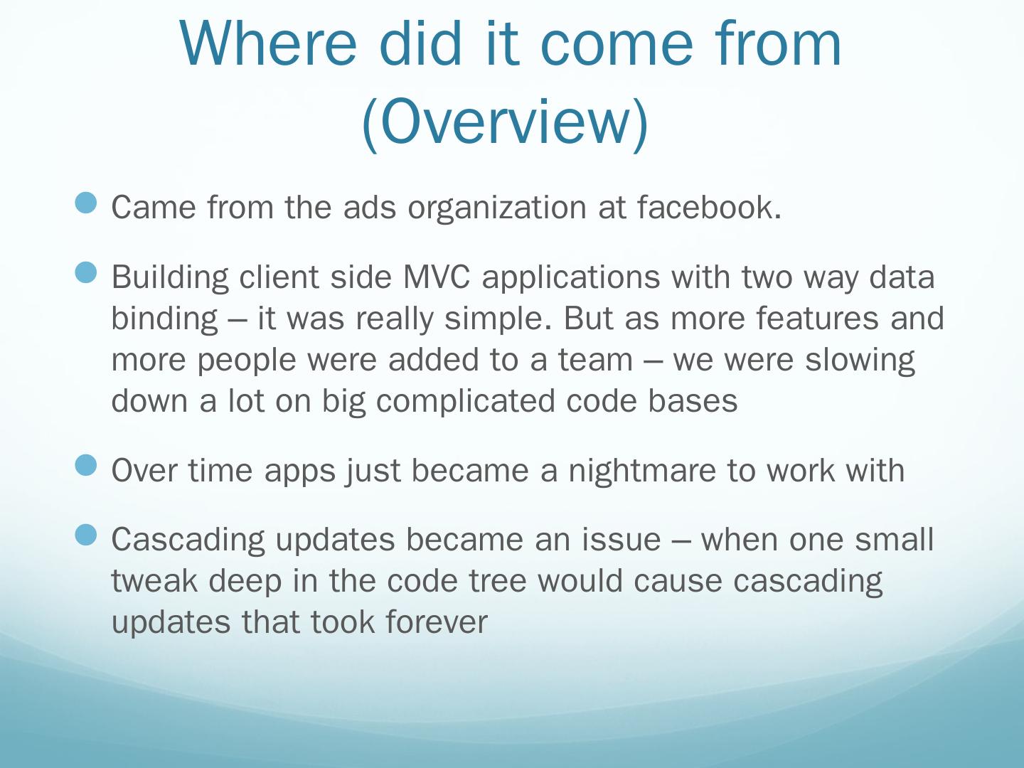 React Native. Joel Wasserman, Logan Girard, Vir Desai, and Daena Vogt-Lowell. Where did it come from (Overview). Came from the ads organization at ...