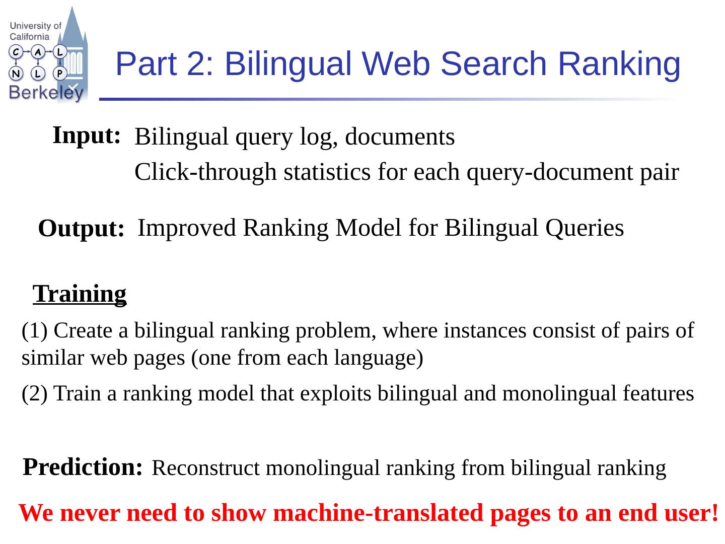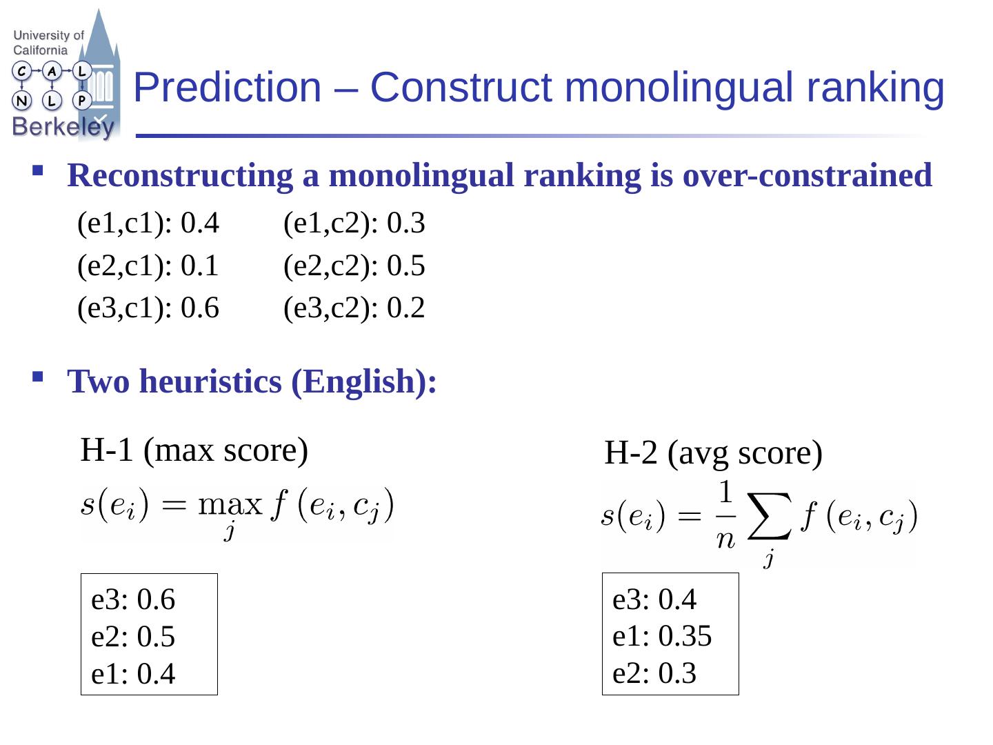 c2>c4 … c4>c5. From monolingual to bilingual rankings. 2 natural conditions for constructing a bilingual ranking from monolingual rankings. if and only if. e1>e2 ...