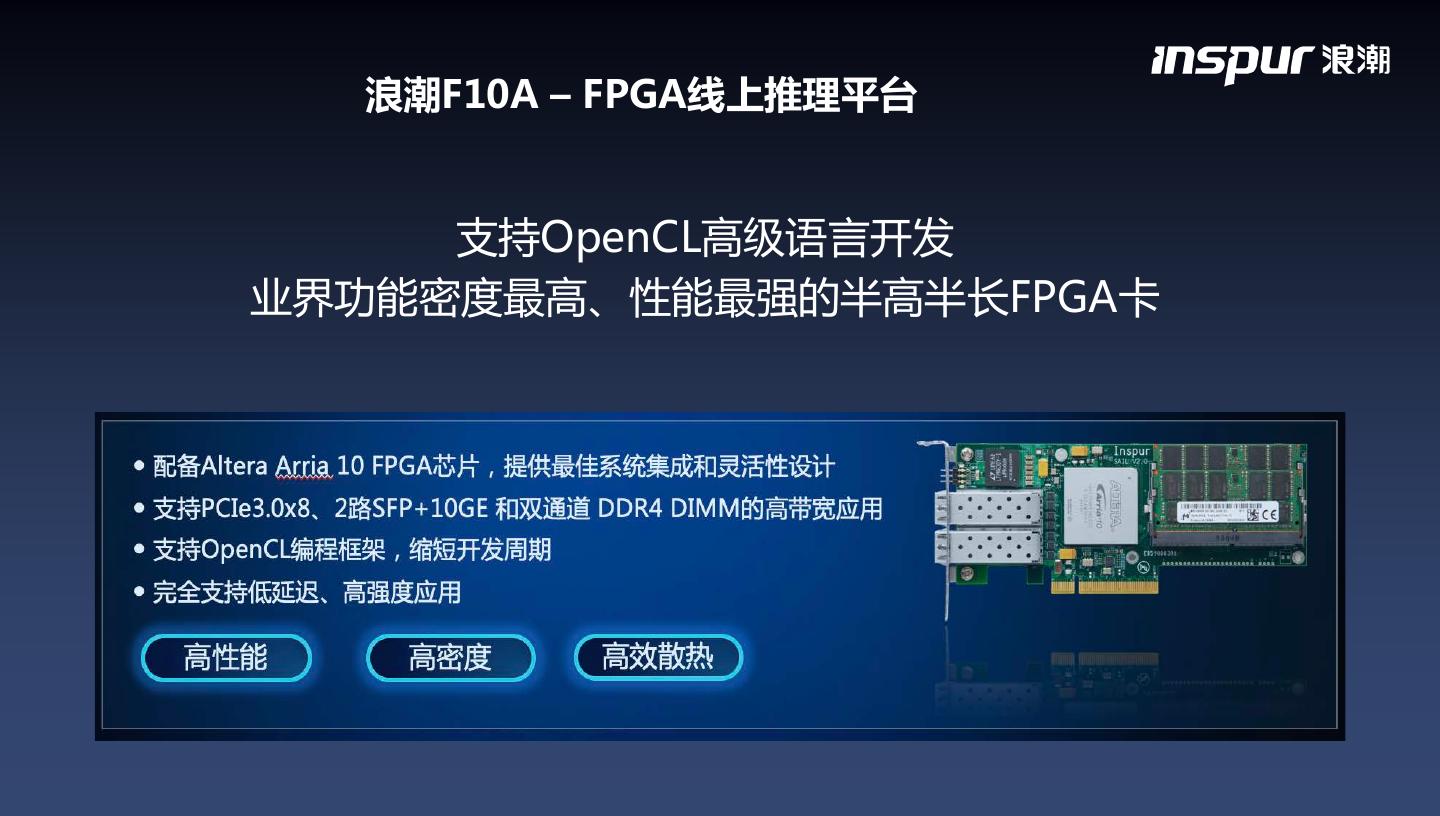13 . 浪潮F10A – FPGA线上推理平台 支持OpenCL高级语言开发 业界功能密度最高、性能最强的半高半长FPGA卡