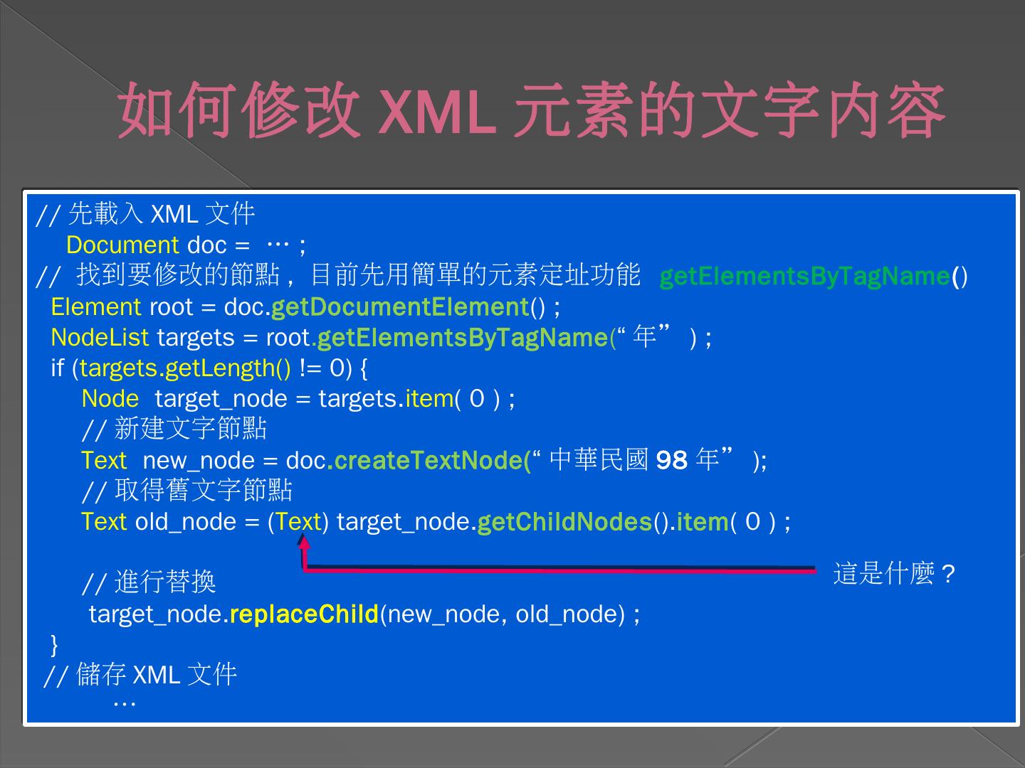 動作10:修改XML元素的文字內容 - 銘傳大學