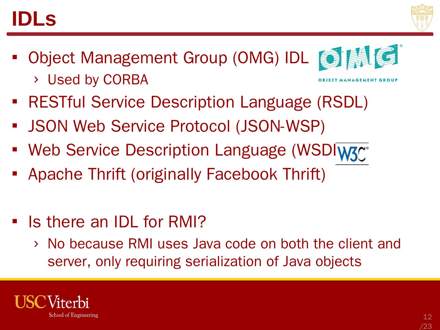 RESTful Service Description Language (RSDL); JSON Web Service Protocol (JSON-WSP); Web Service Description Language (WSDL); Apache Thrift ...
