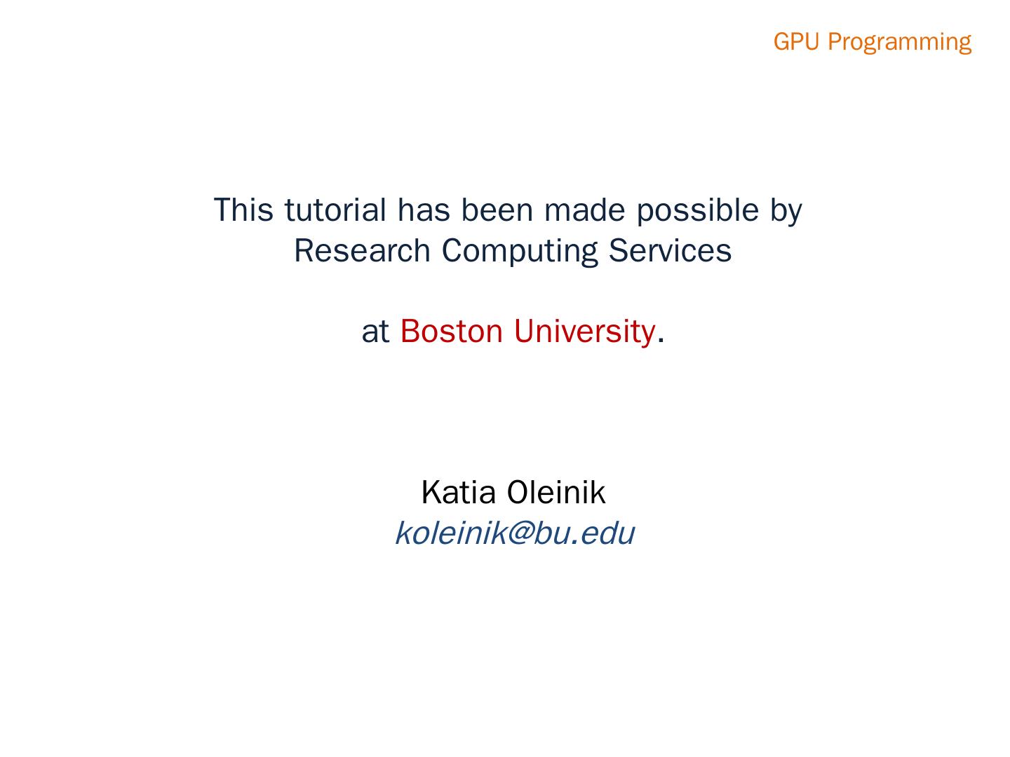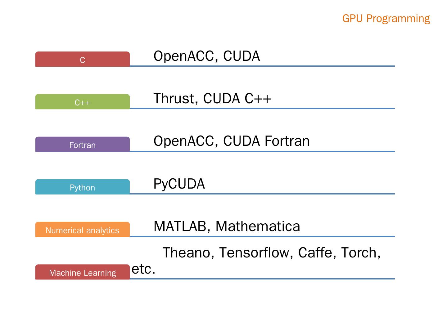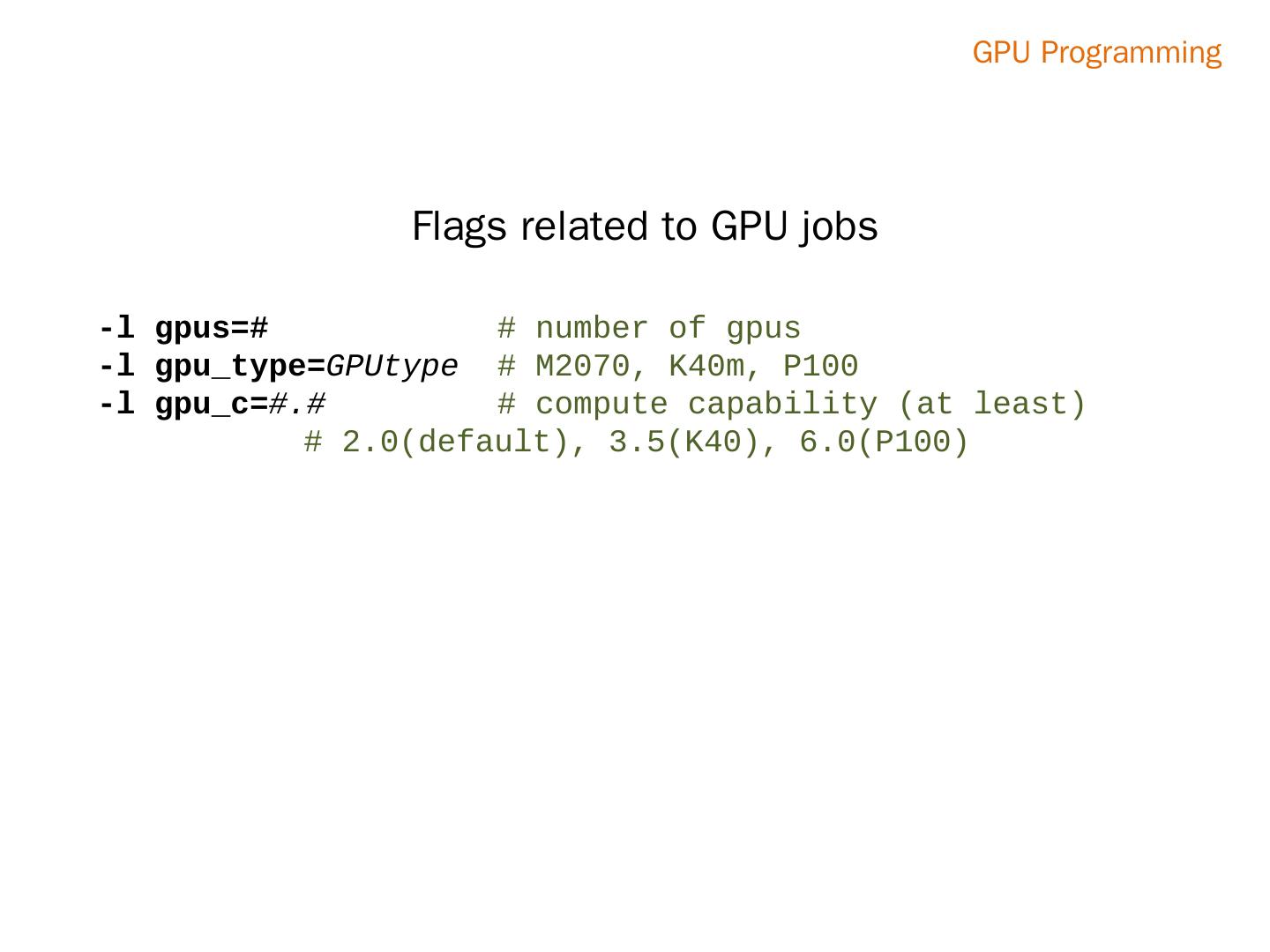 Theano, Tensorflow, Caffe, Torch, etc. Machine Learning. GPU Programming. GPU resources on the SCC. There are 2 sets of nodes that incorporate GPUs and ...