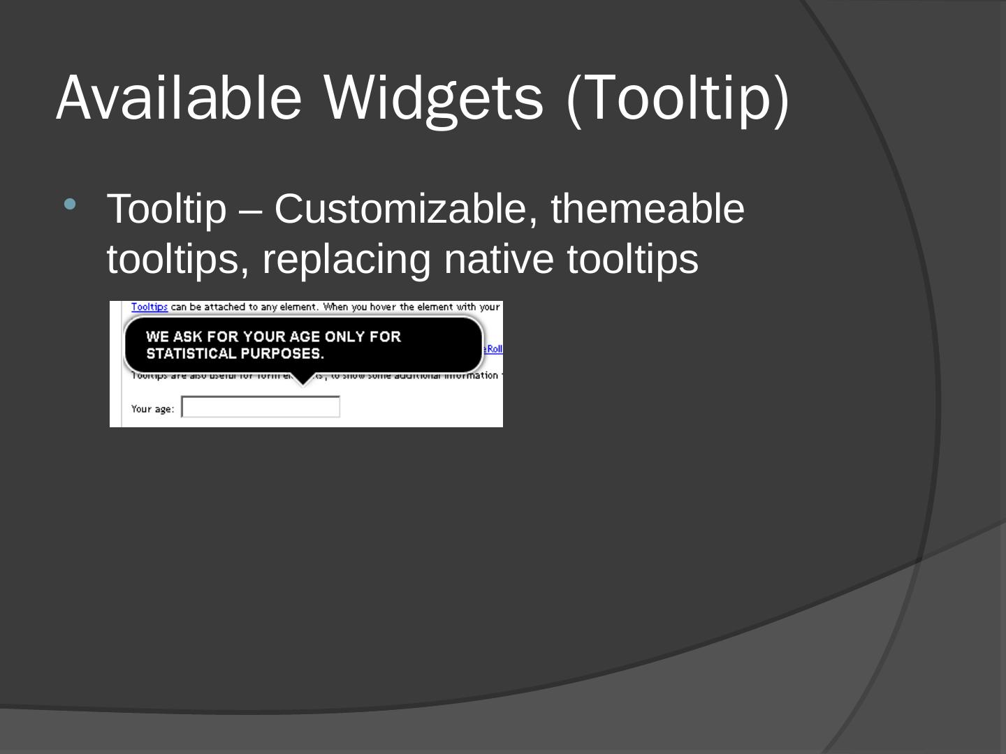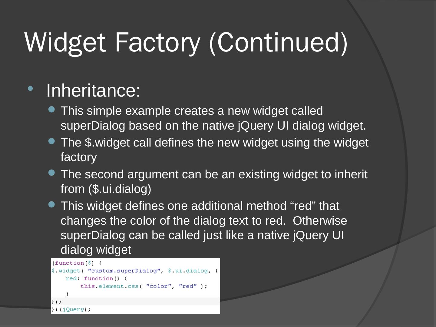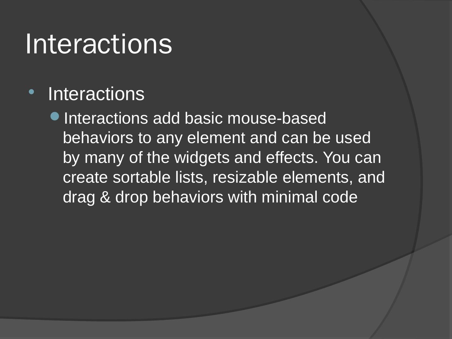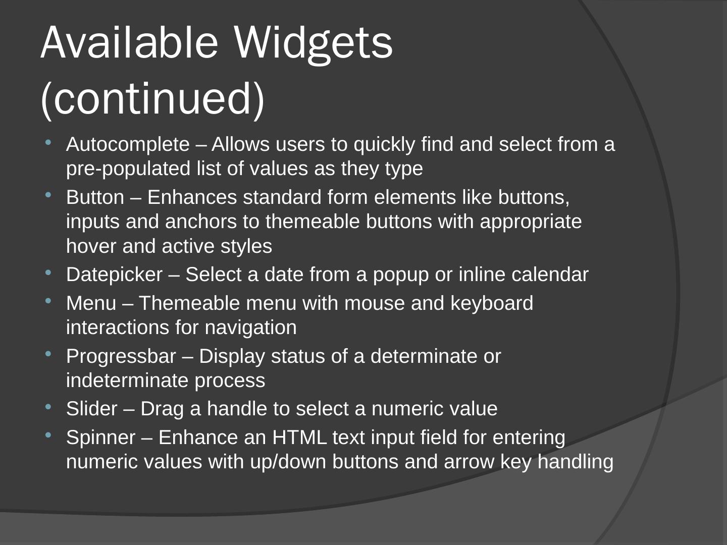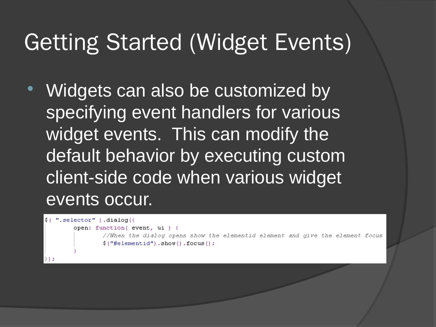 jQuery UI Overview. jQuery UI javascript library. Includes all UI component functionality. jQuery UI CSS framework. Includes standard images and CSS for all UI ...