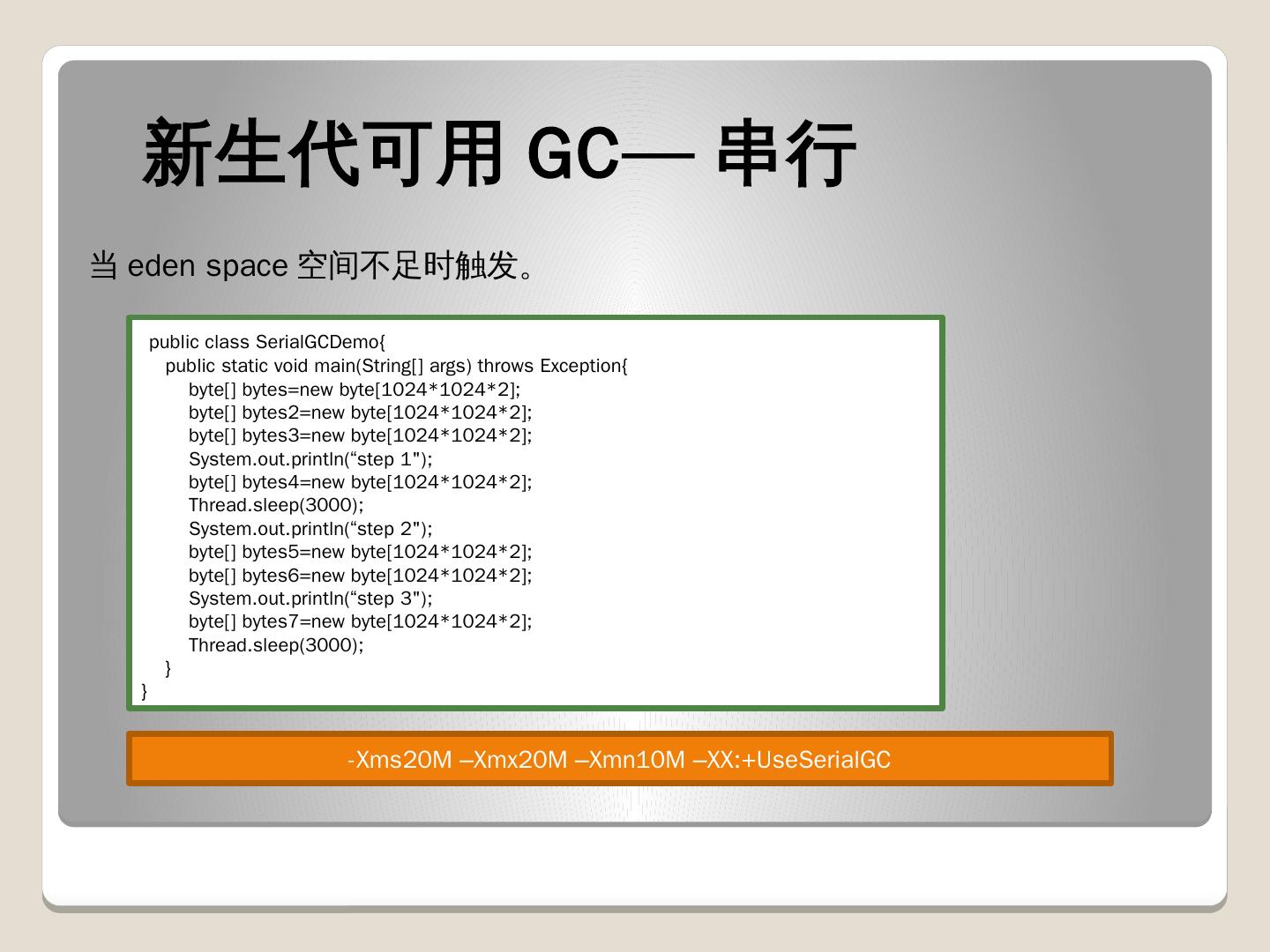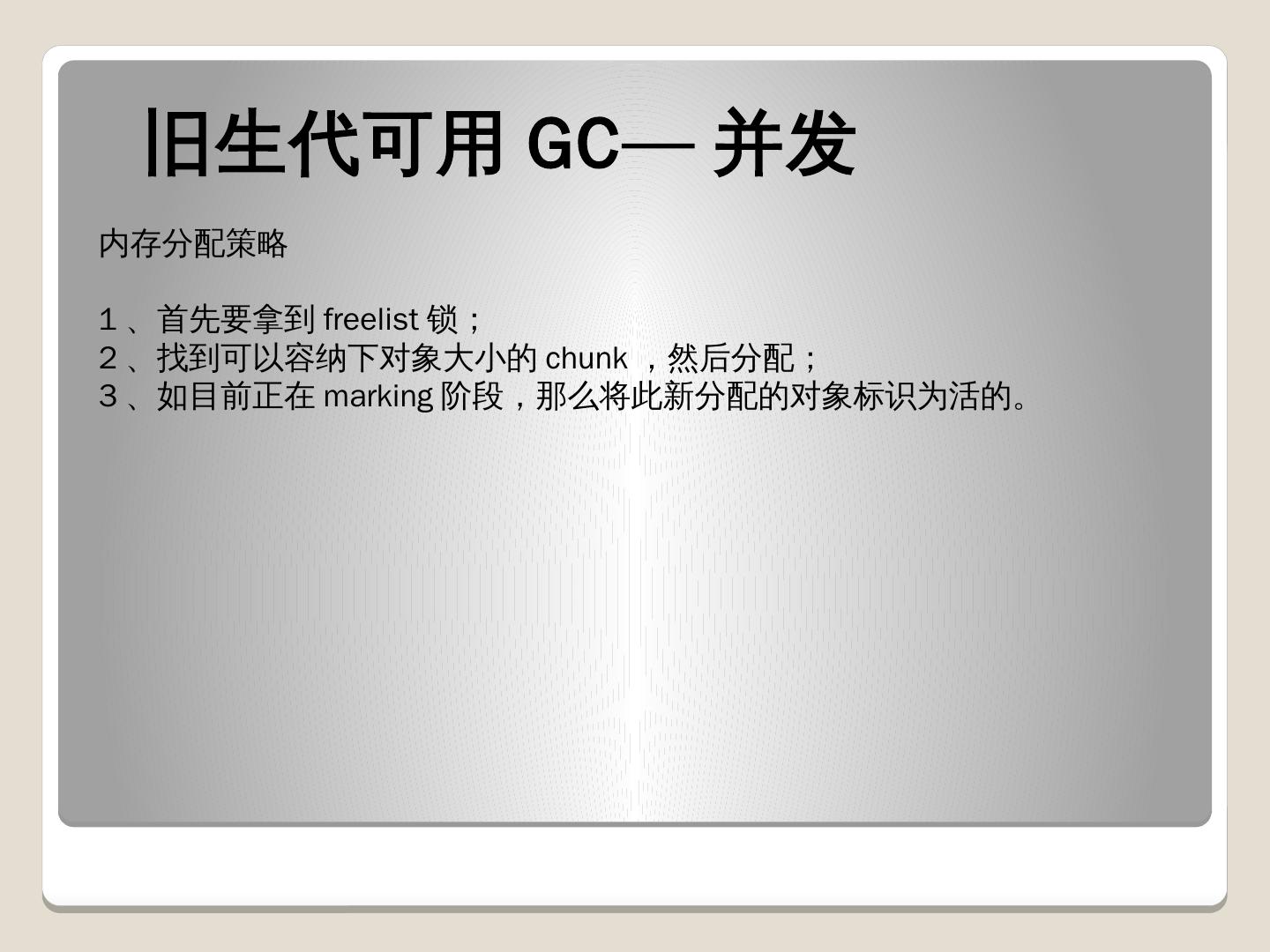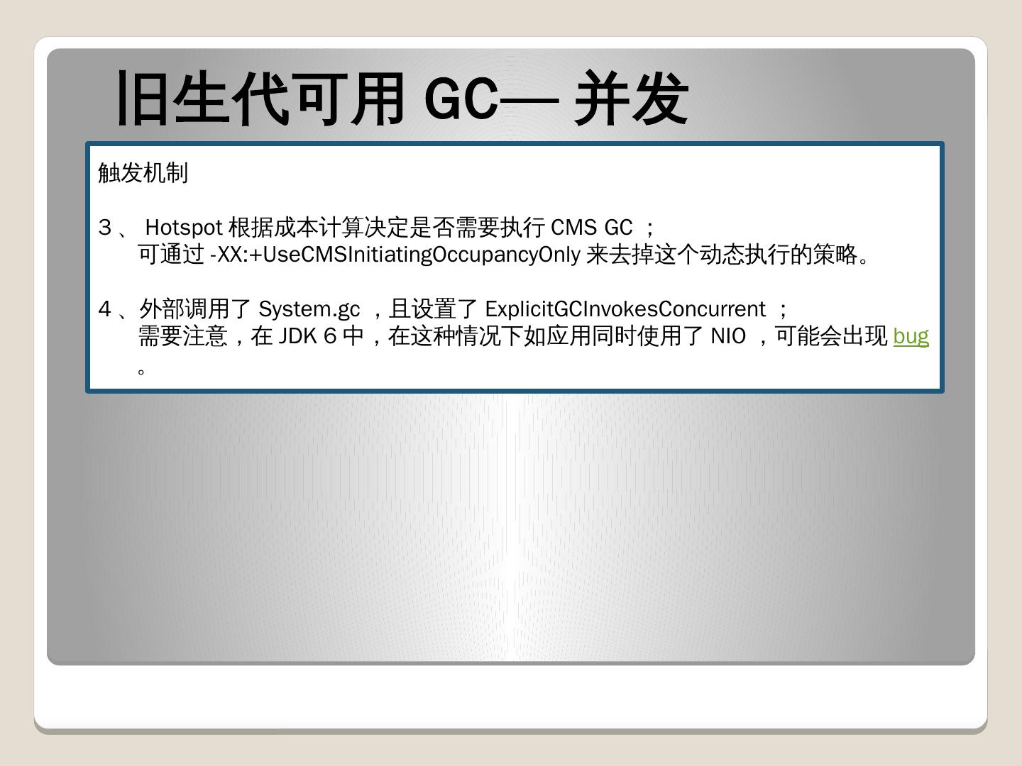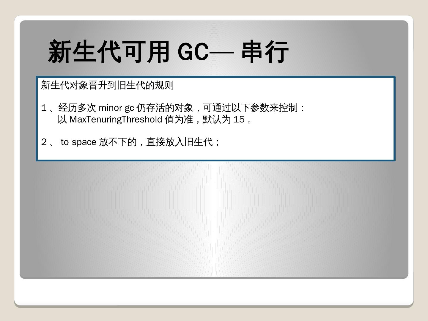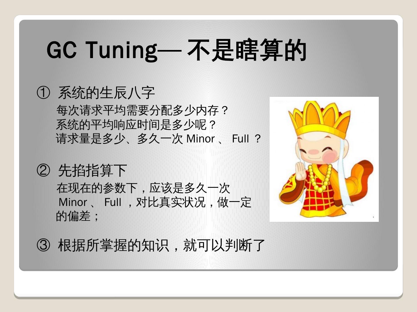 Java:自动内存管理. 为什么还需要 ... Sun Hotspot对JVM堆采用了分代的方式来管理,以提升GC的. 效率。 Eden. S0. S1 ..... 4 cpu,os: linux 2.6.18 32 bit; 启动参数.
