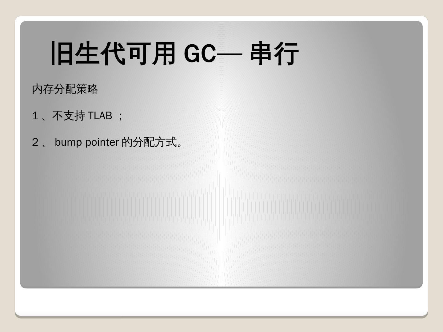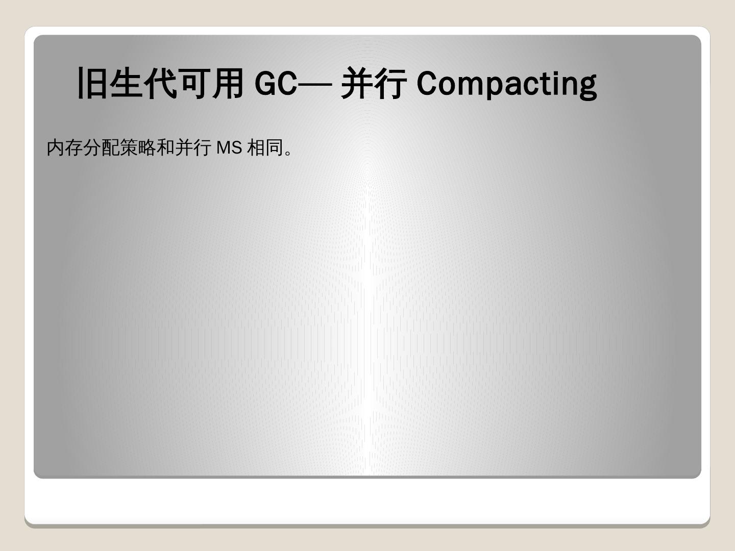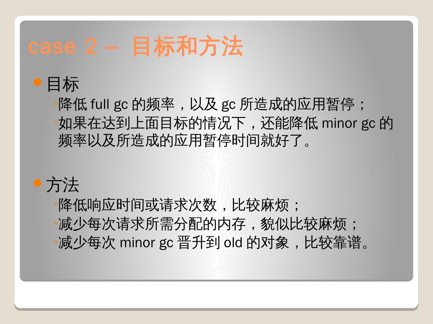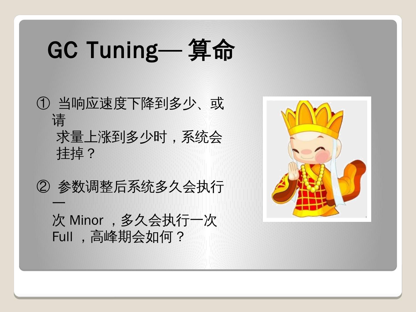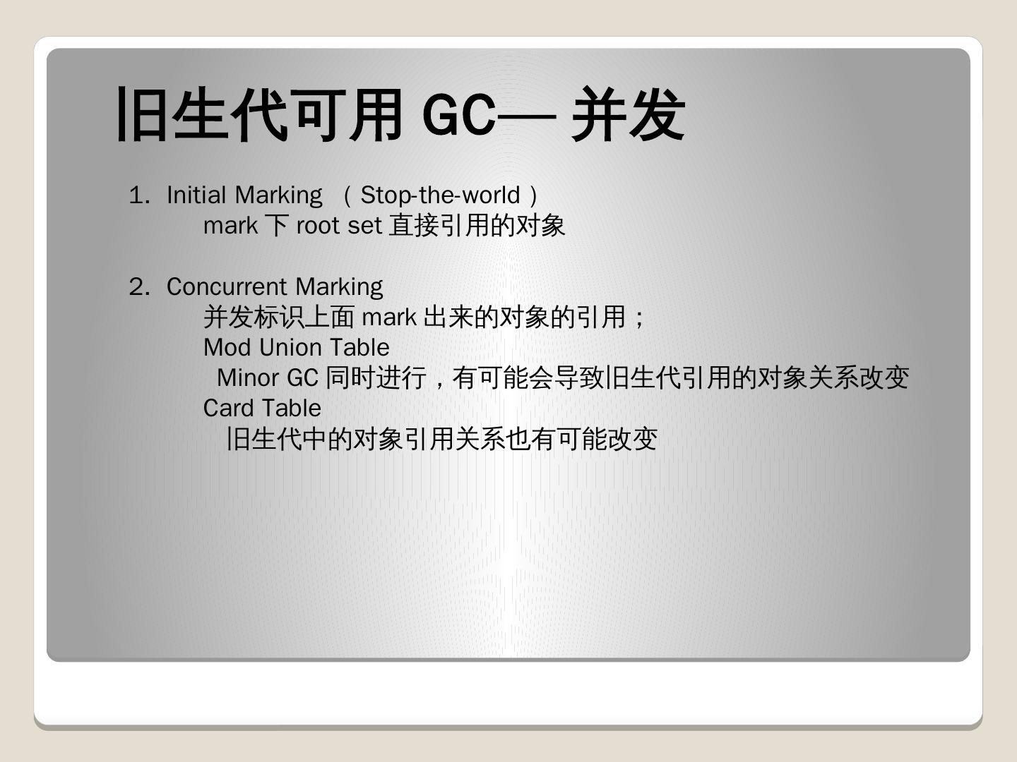 Java:自动内存管理. 为什么还需要 ... Sun Hotspot对JVM堆采用了分代的方式来管理,以提升GC的. 效率。 Eden. S0. S1 ..... 4 cpu,os: linux 2.6.18 32 bit; 启动参数.