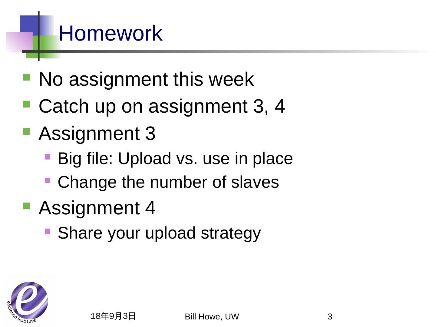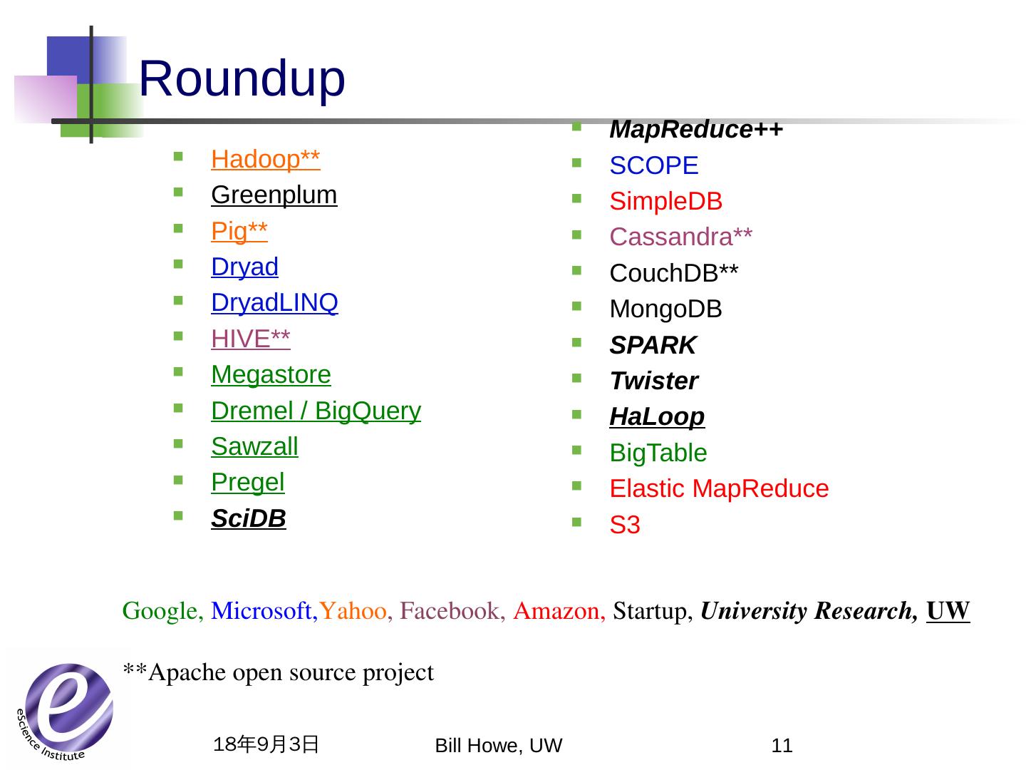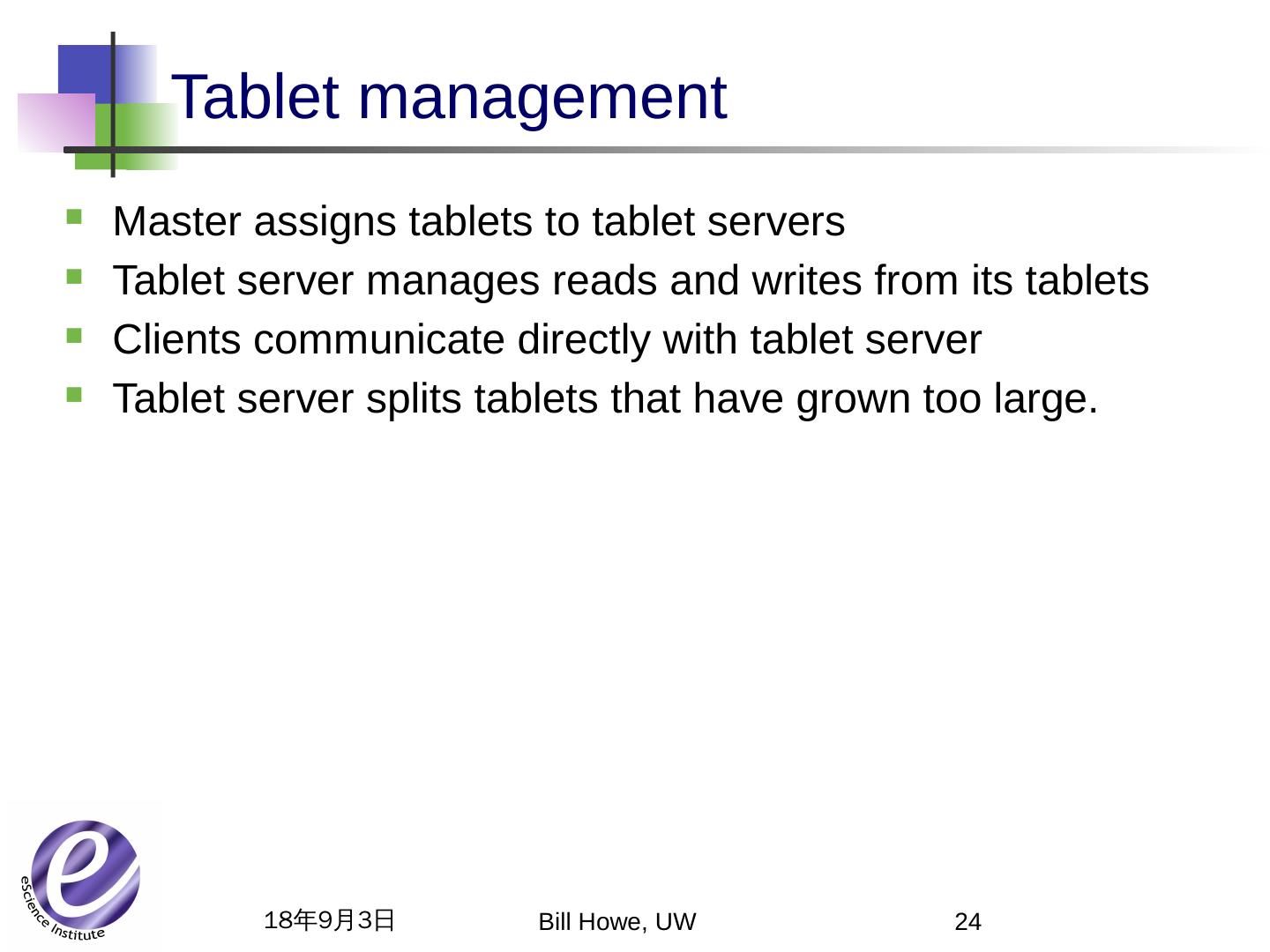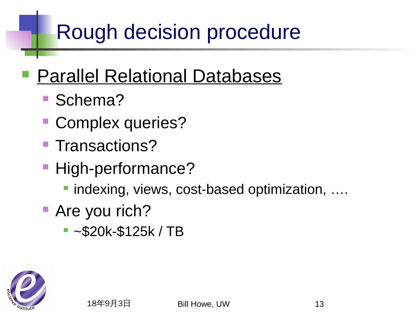 Roadmap. Homework 3, 4 discussion; Some review, NoSQL roundup; Example: Google BigTable / Apache Hbase; Example: CouchDB. 1/1/97. 2. Bill Howe, UW.